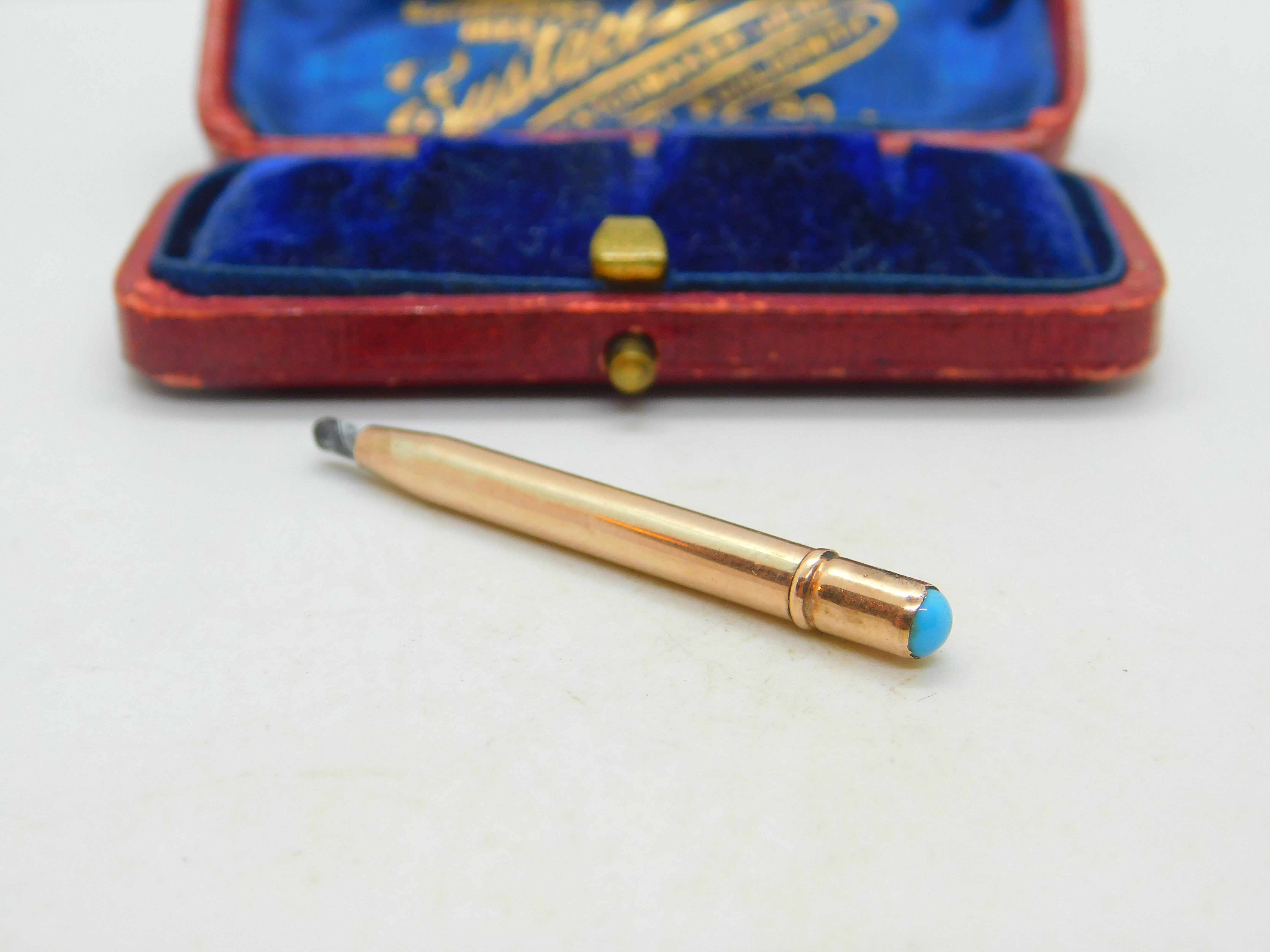 9ct Yellow Gold & Turquoise Topped Propelling Pencil Charm Pendant Antique