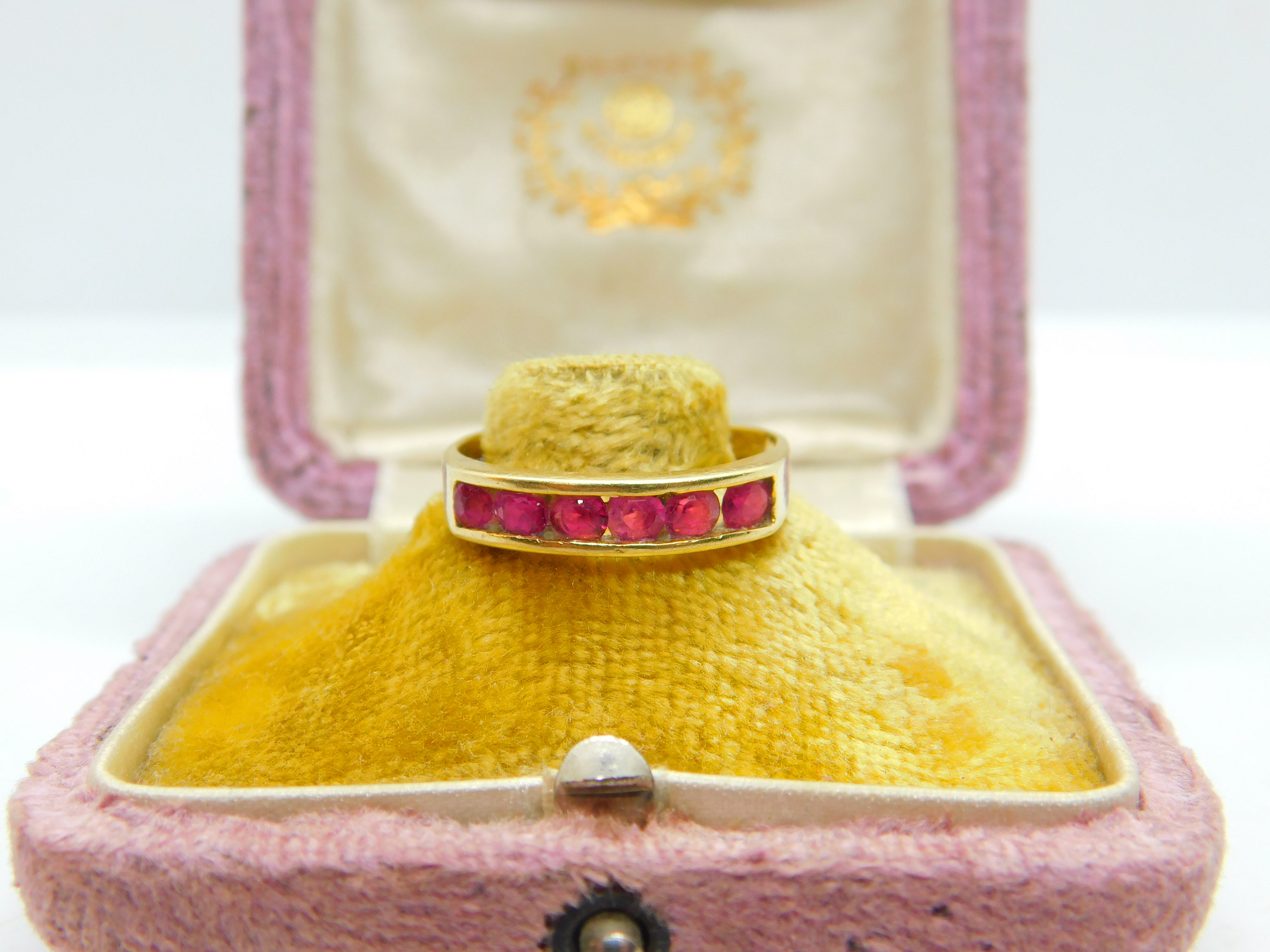 14ct Yellow Gold & Six-Stone Natural Ruby Dress Ring Vintage c1980 Size Q UK