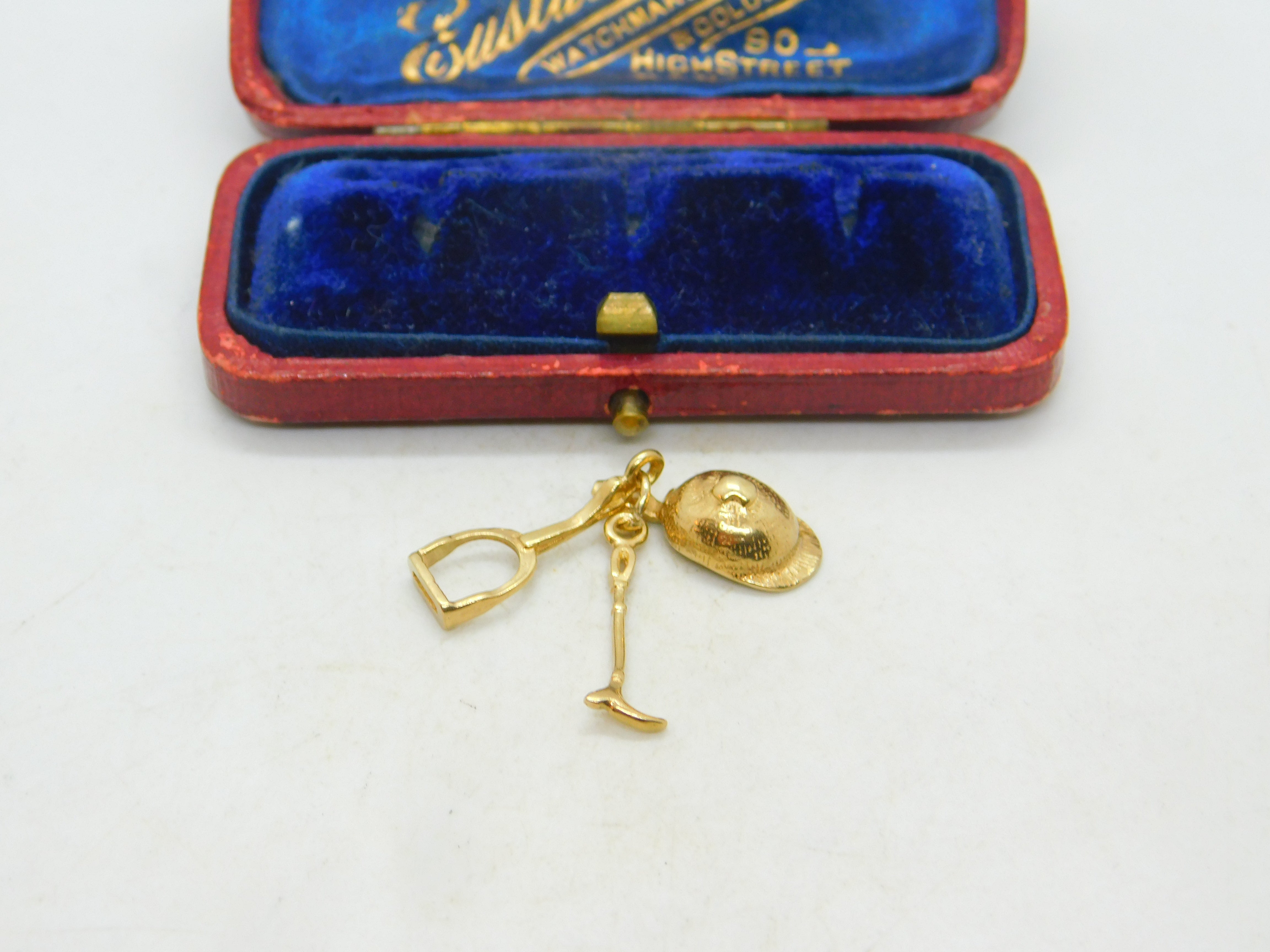 9ct Yellow Gold Crop, Stirrup, Hat Riding Equestrian Charm Vintage c1970