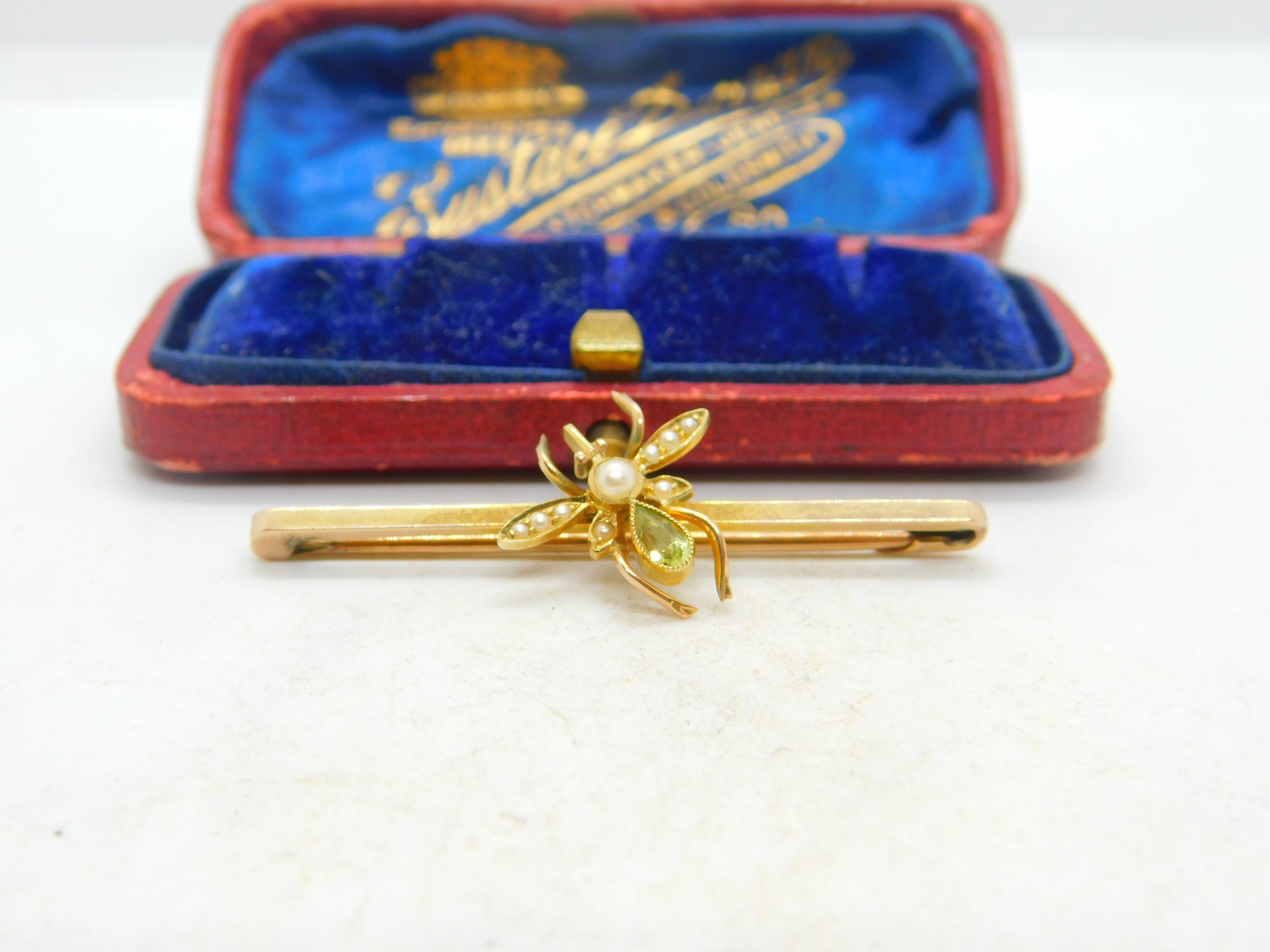 15ct Gold, Peridot & Pearl Suffragette Insect Brooch Antique c1910 Edwardian