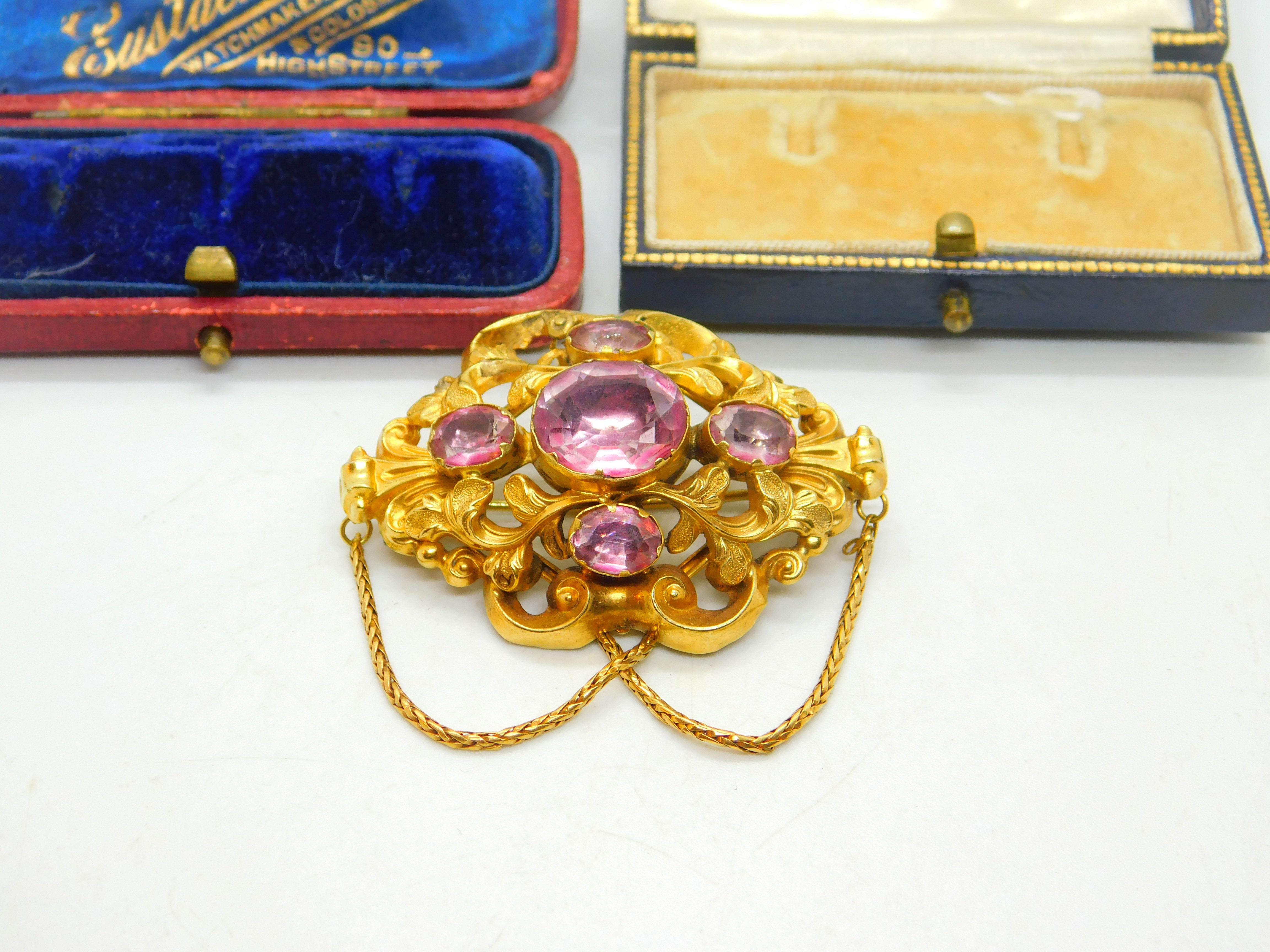 Victorian 18ct Yellow Gold & Foil Back Pink Paste Stylistic Brooch Antique c1850