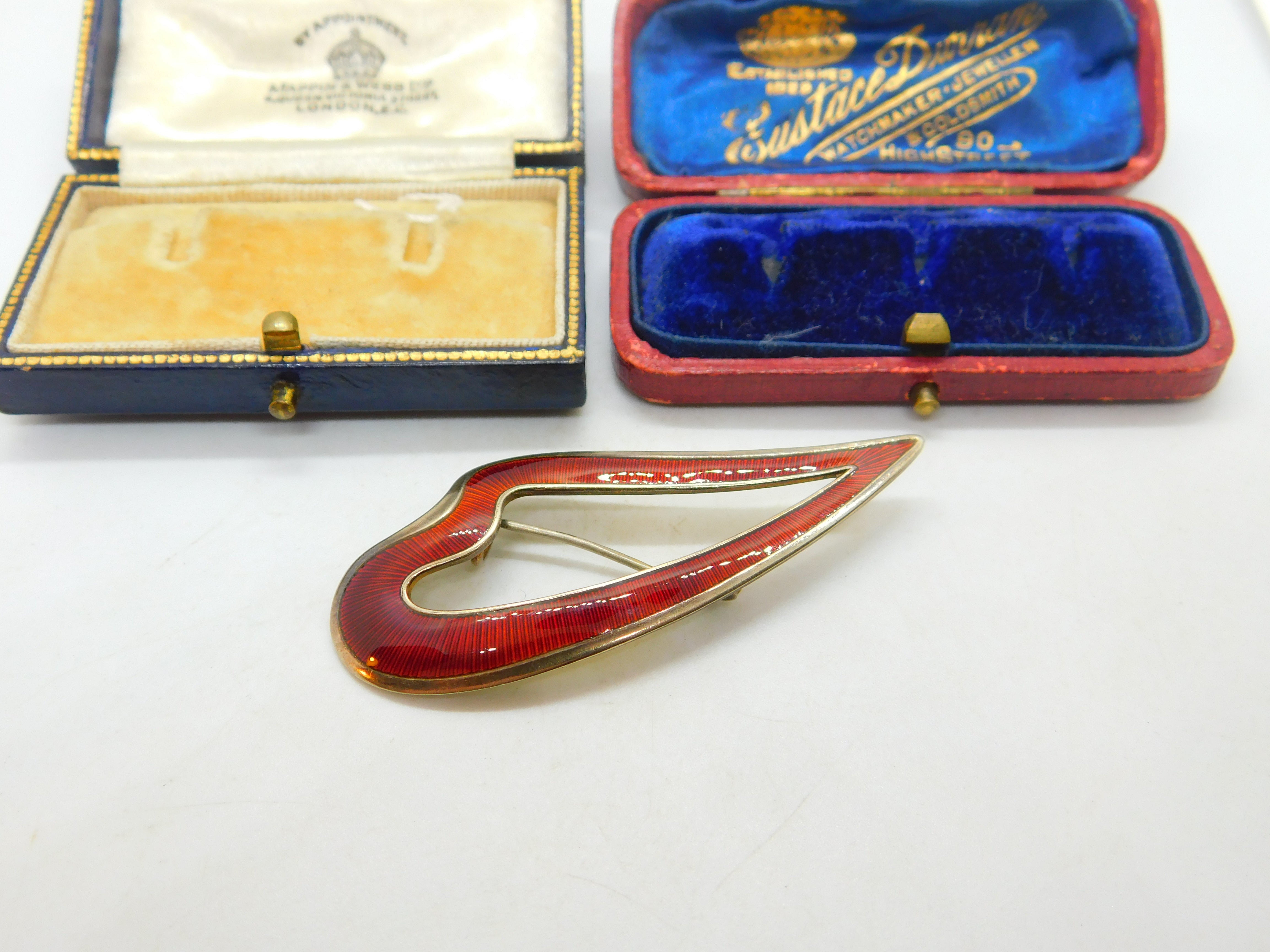 Aksel Holmsen Norway Sterling Silver Gilt & Red Enamel Heart Brooch Antique 1930