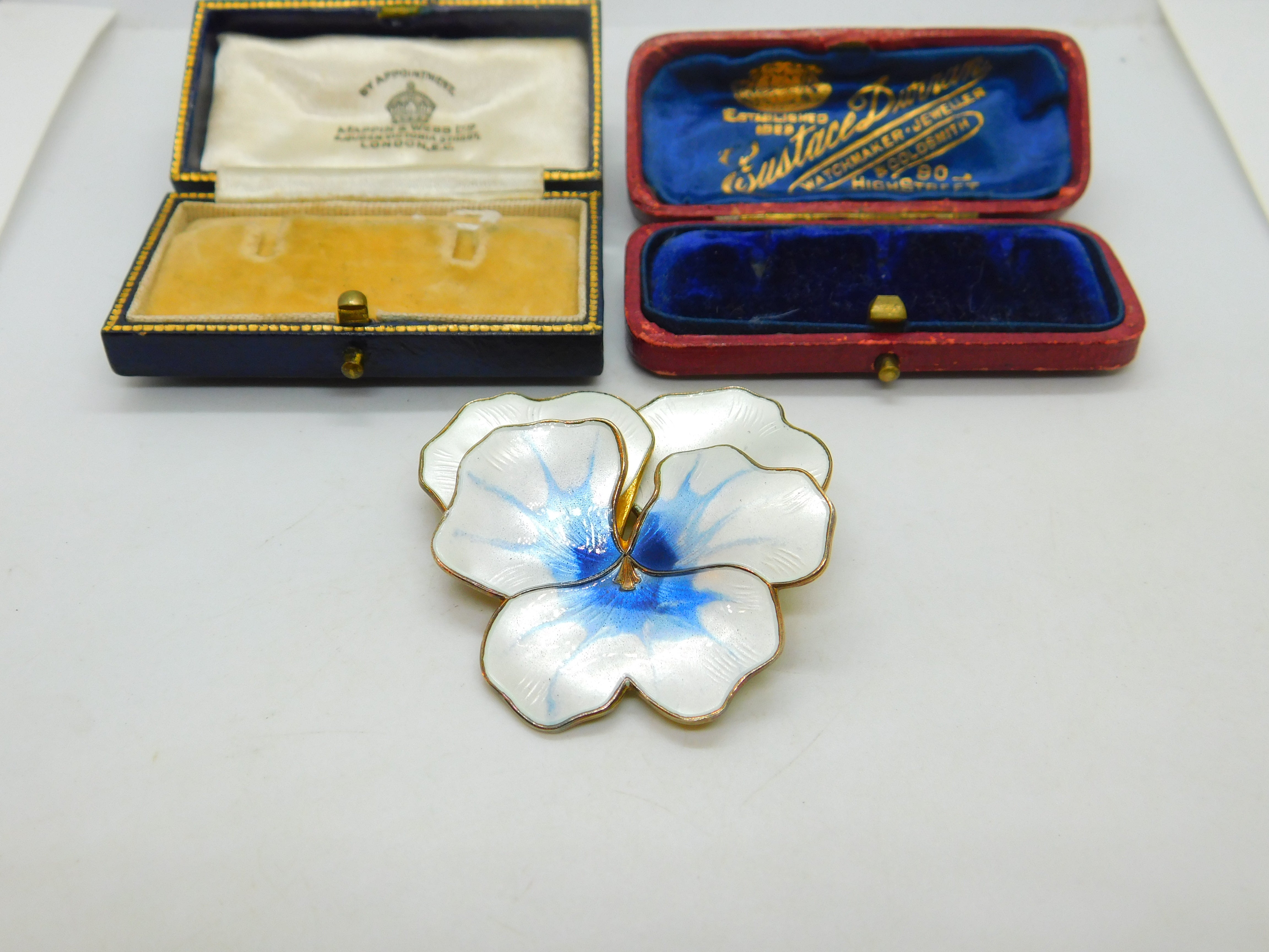 David Andersen Sterling Silver Blue-White Pansy Flower Brooch Antique c1930