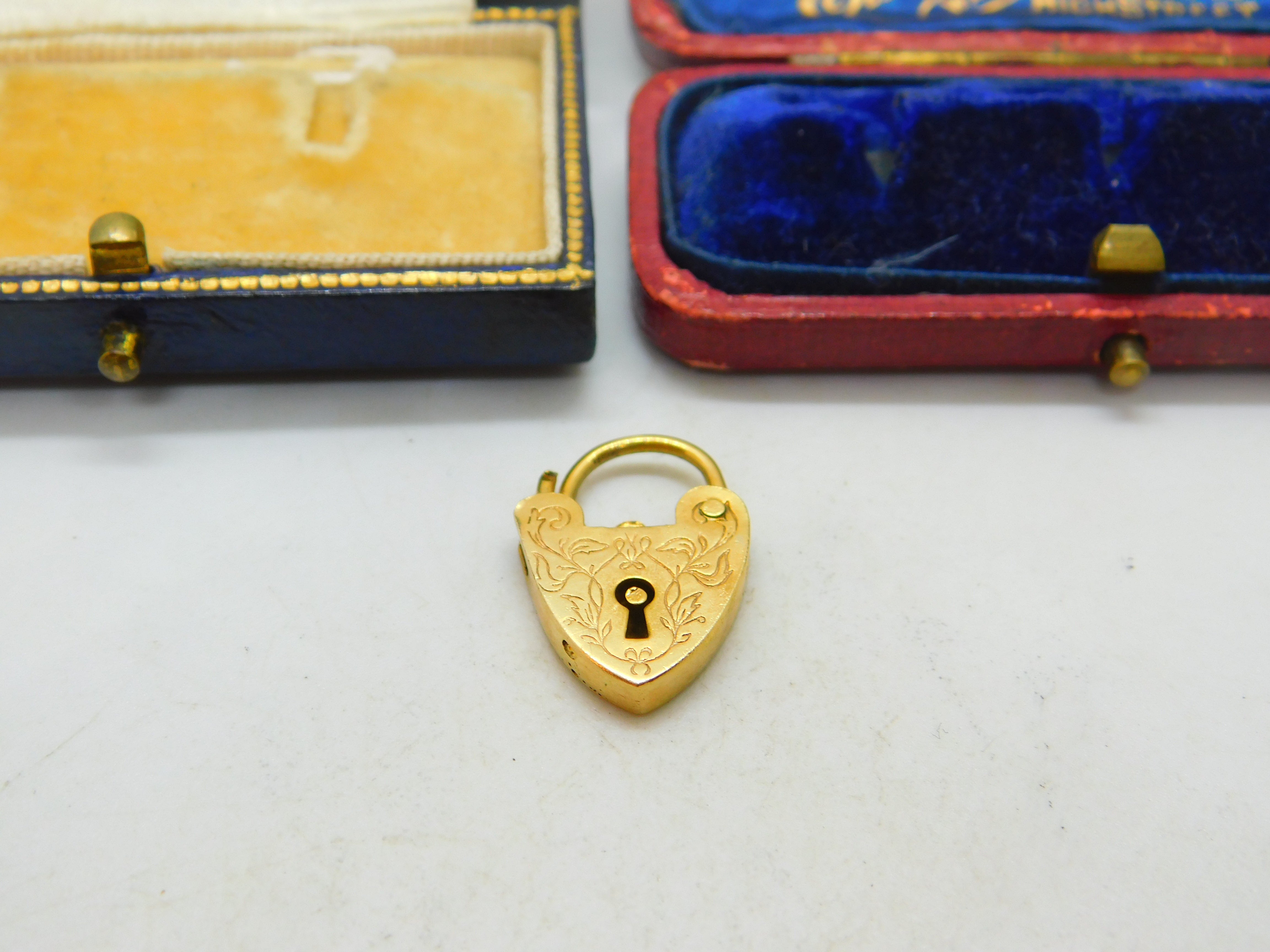 9ct Yellow Gold Floral Etched Heart Lock Padlock Charm Vintage 1970 London