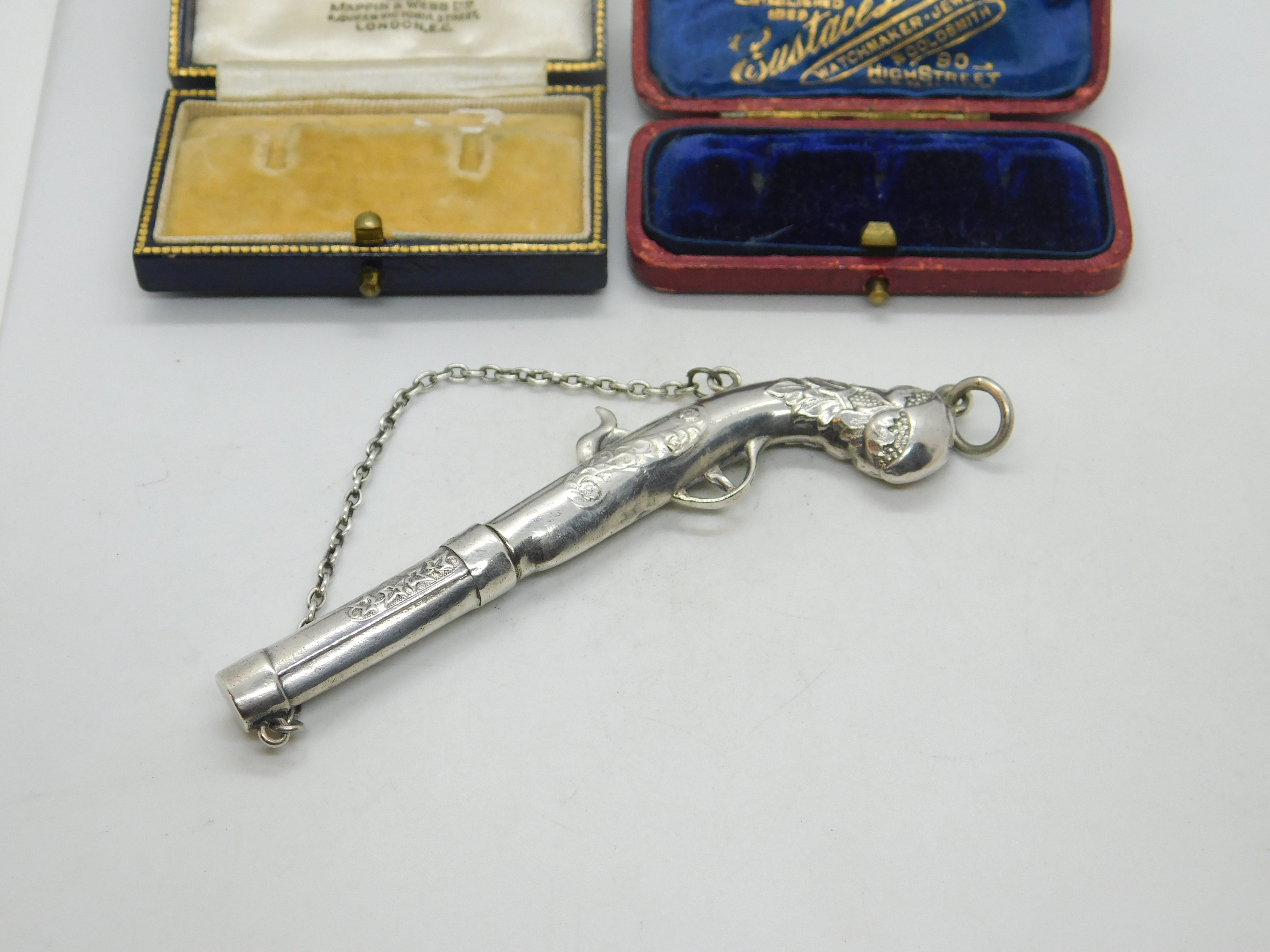 Victorian Sterling Silver Blunderbuss Gun Sewing Needle Case Antique c1850 French
