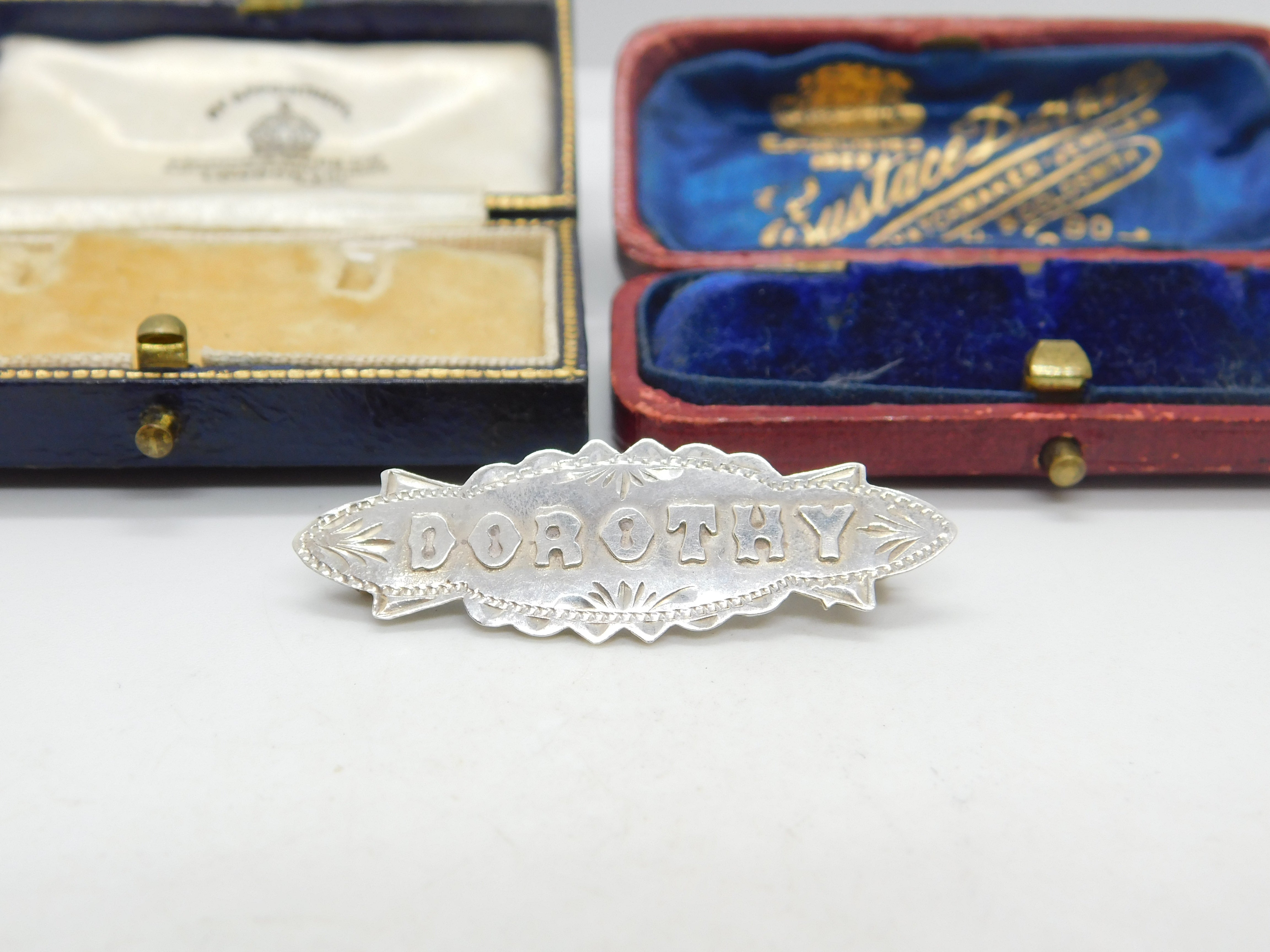 Sterling Silver Dorothy Name Christening Brooch Antique 1914 Birmingham
