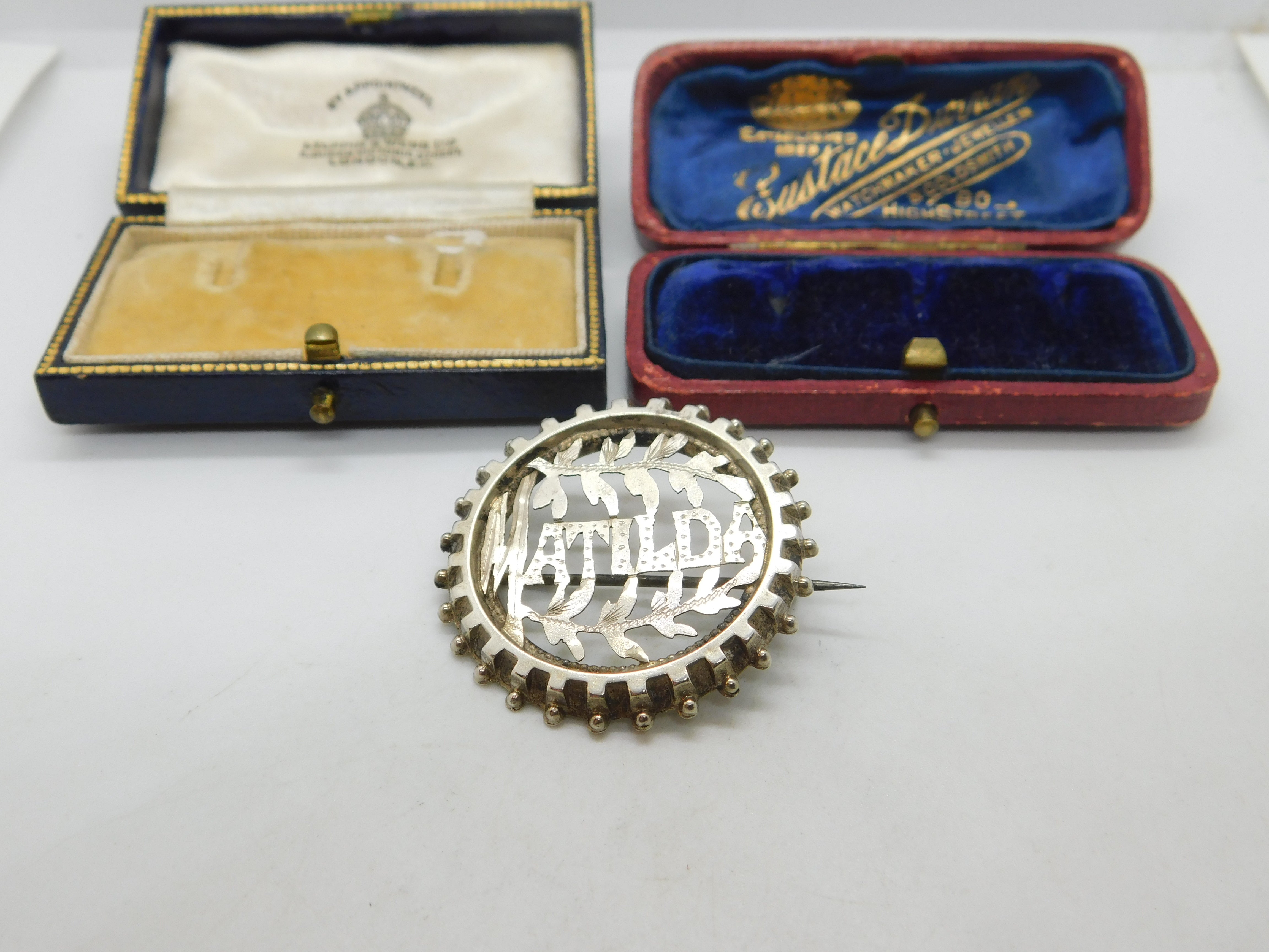 Victorian Sterling Silver Matilda Name Christening Brooch Antique c1880