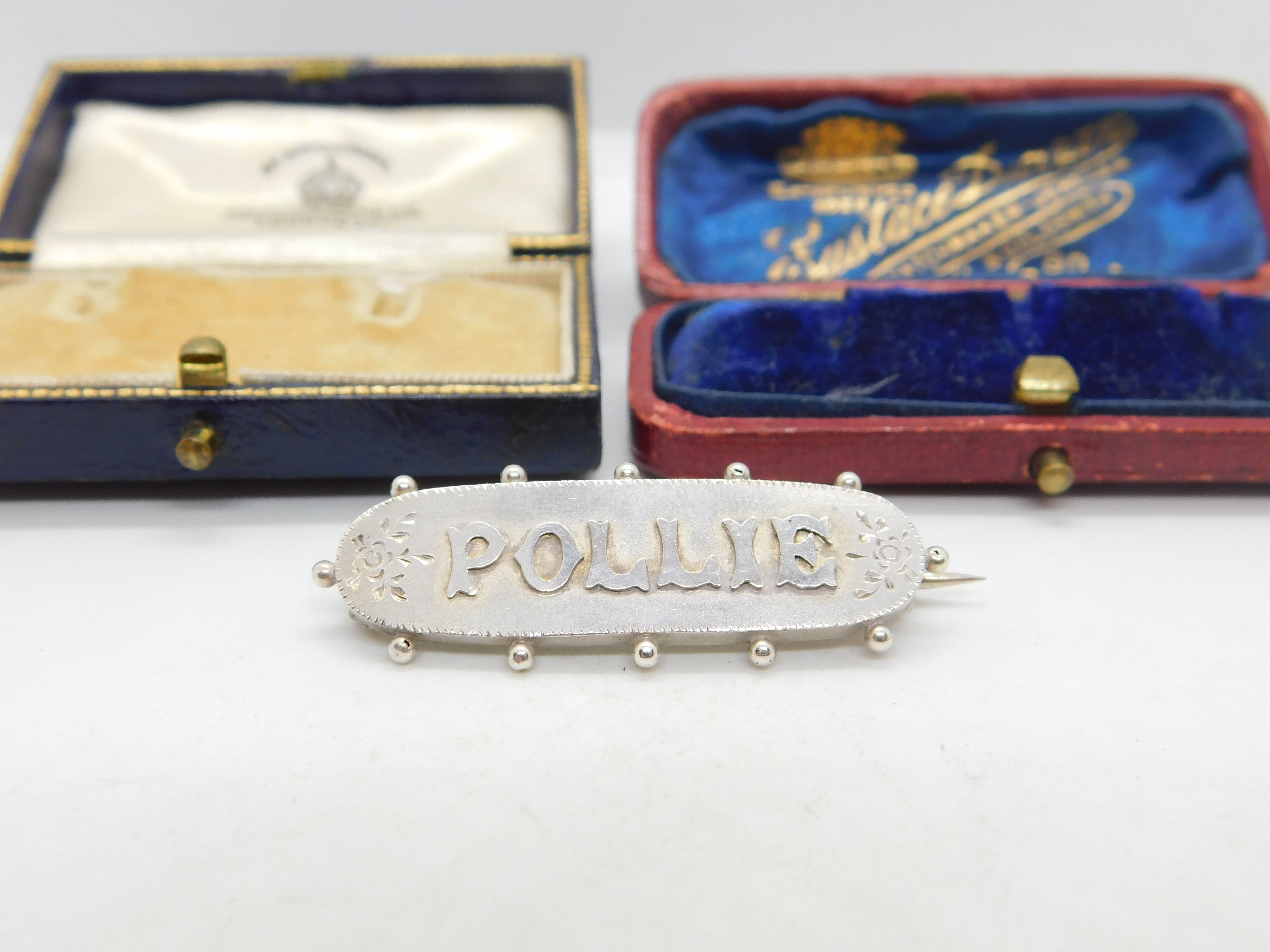 Victorian Sterling Silver Pollie Name Christening Brooch Antique 1890 Birmingham