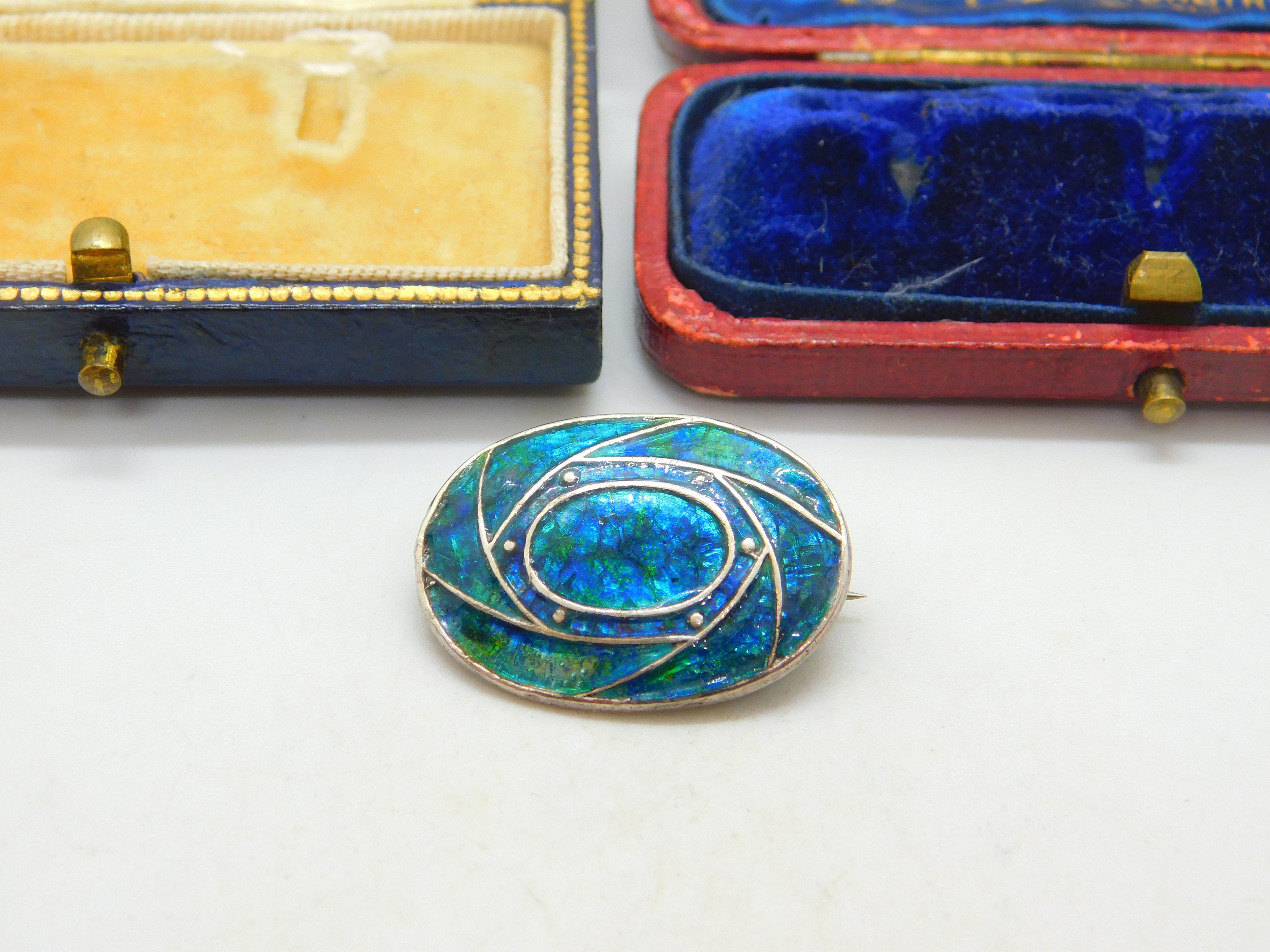 Art Nouveau Edwardian Sterling Silver Blue Enamel Brooch Antique 1909 Liberty & Co.