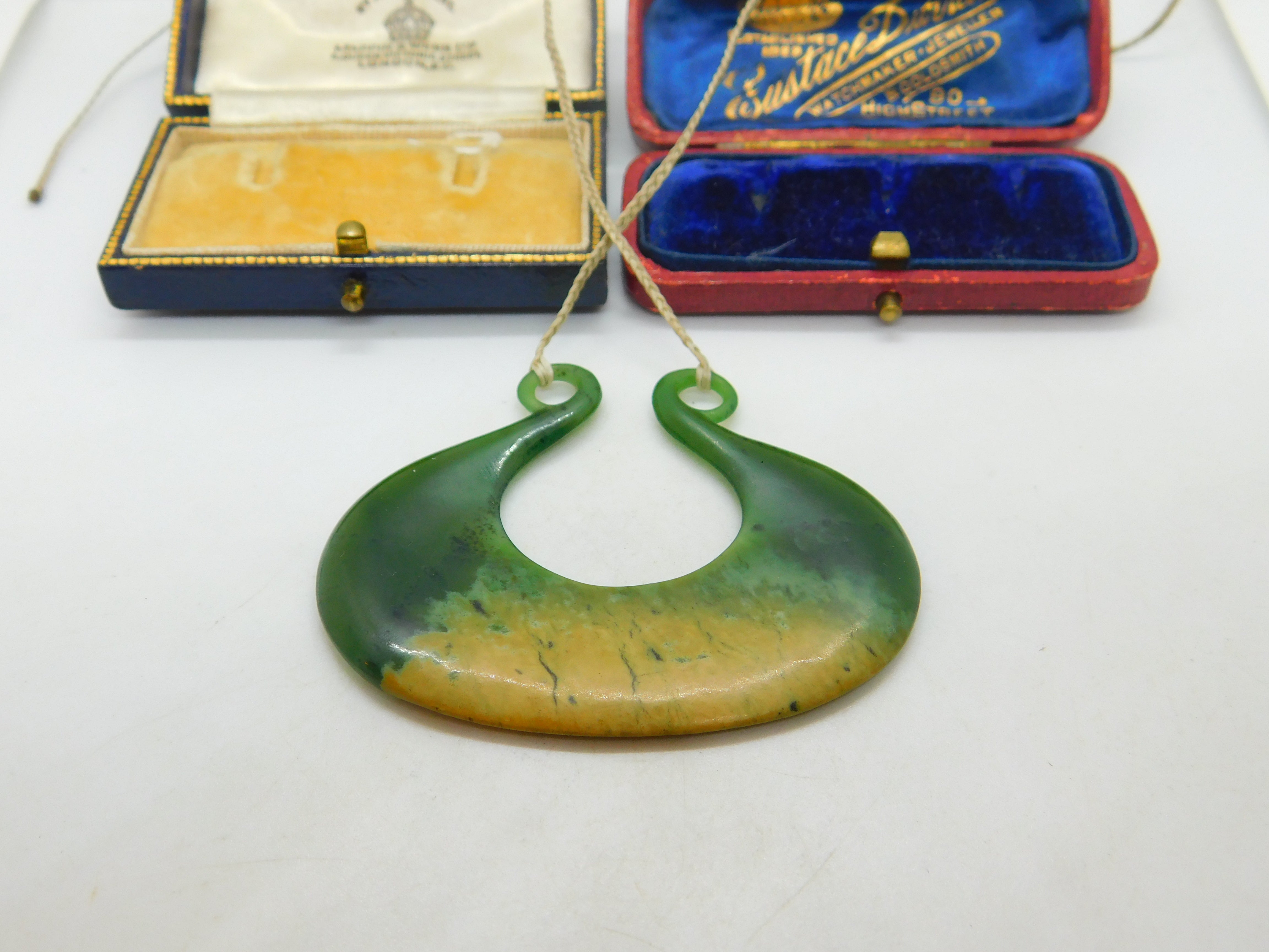 New Zealand Maori Nephrite Jade Carved Fish Hook Pendant Vintage c1970