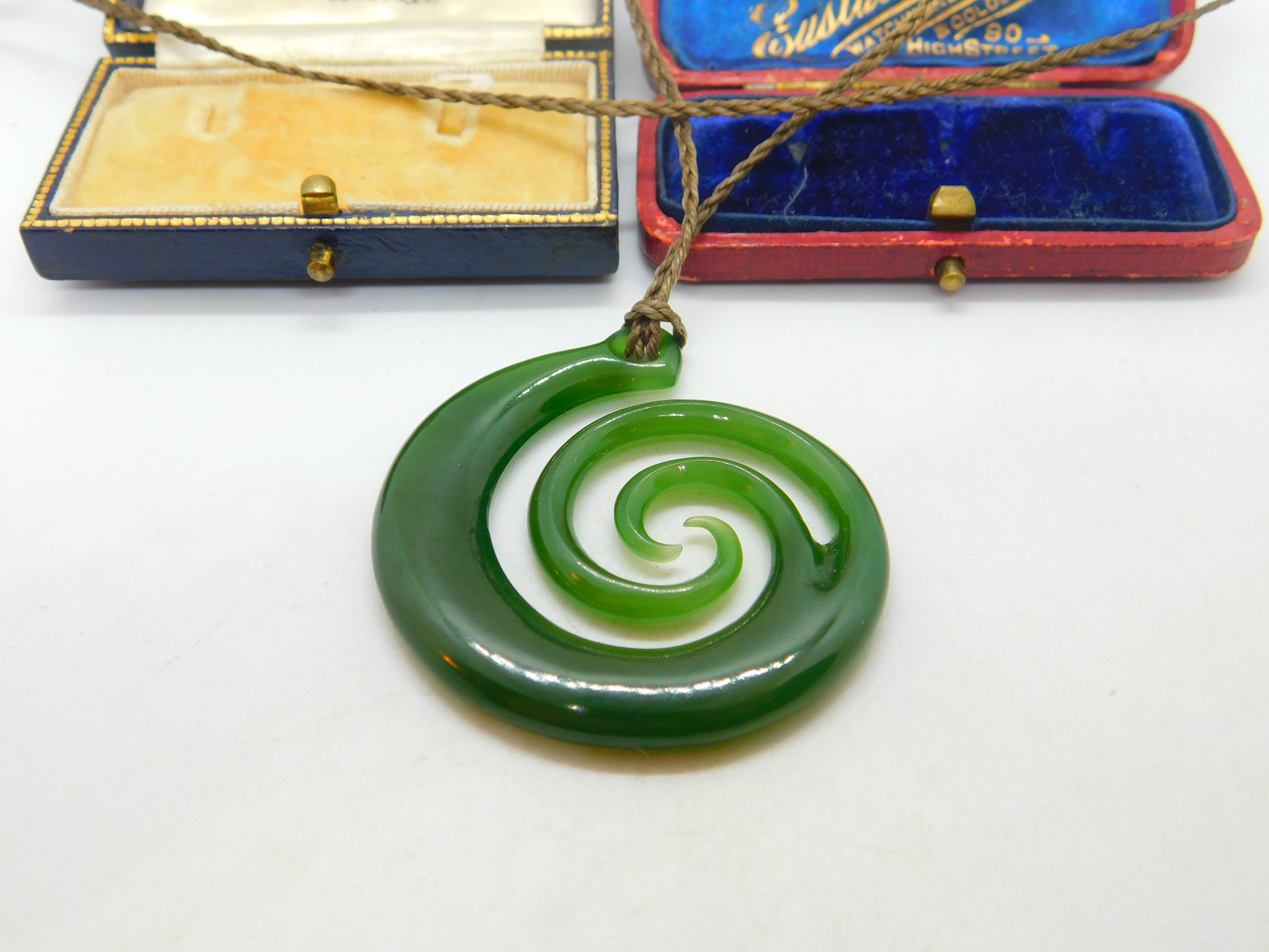 New Zealand Maori Carved Nephrite Jade 'Koru' Pendant Keepsake Vintage c1970