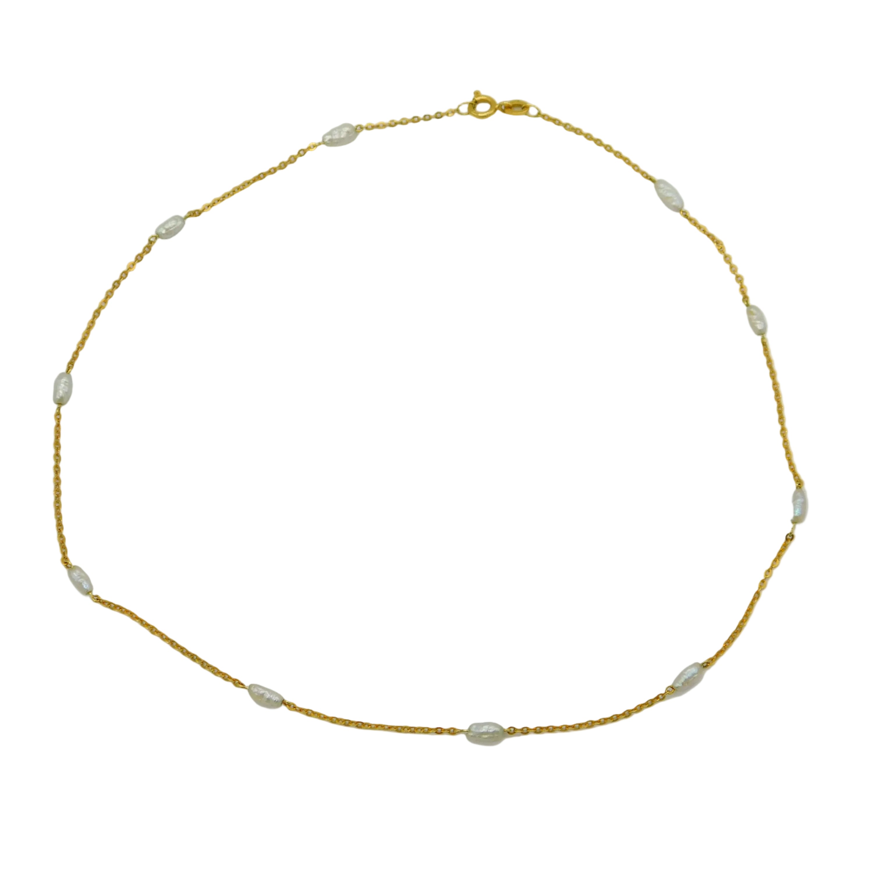 Italian 18ct Yellow Gold & Blistered Pearl Chain Necklace Vintage c1970 42cm