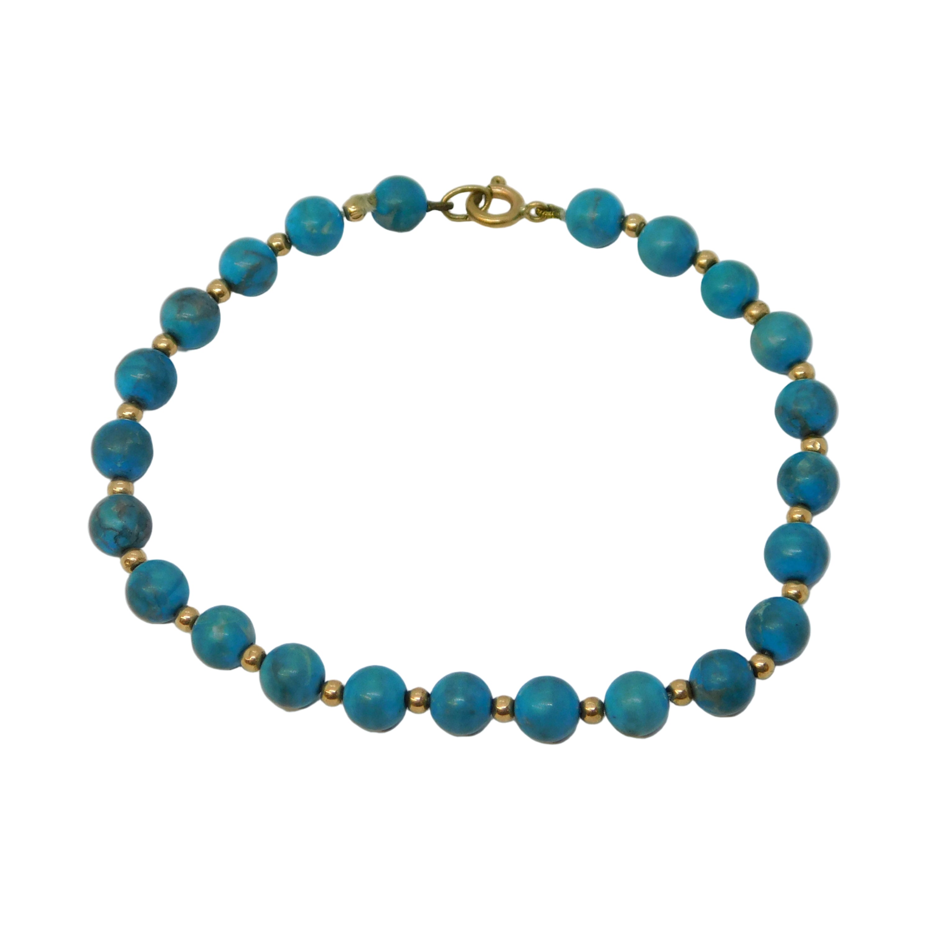 9ct Yellow Gold Beaded Natural Turquoise Bracelet Vintage c1970