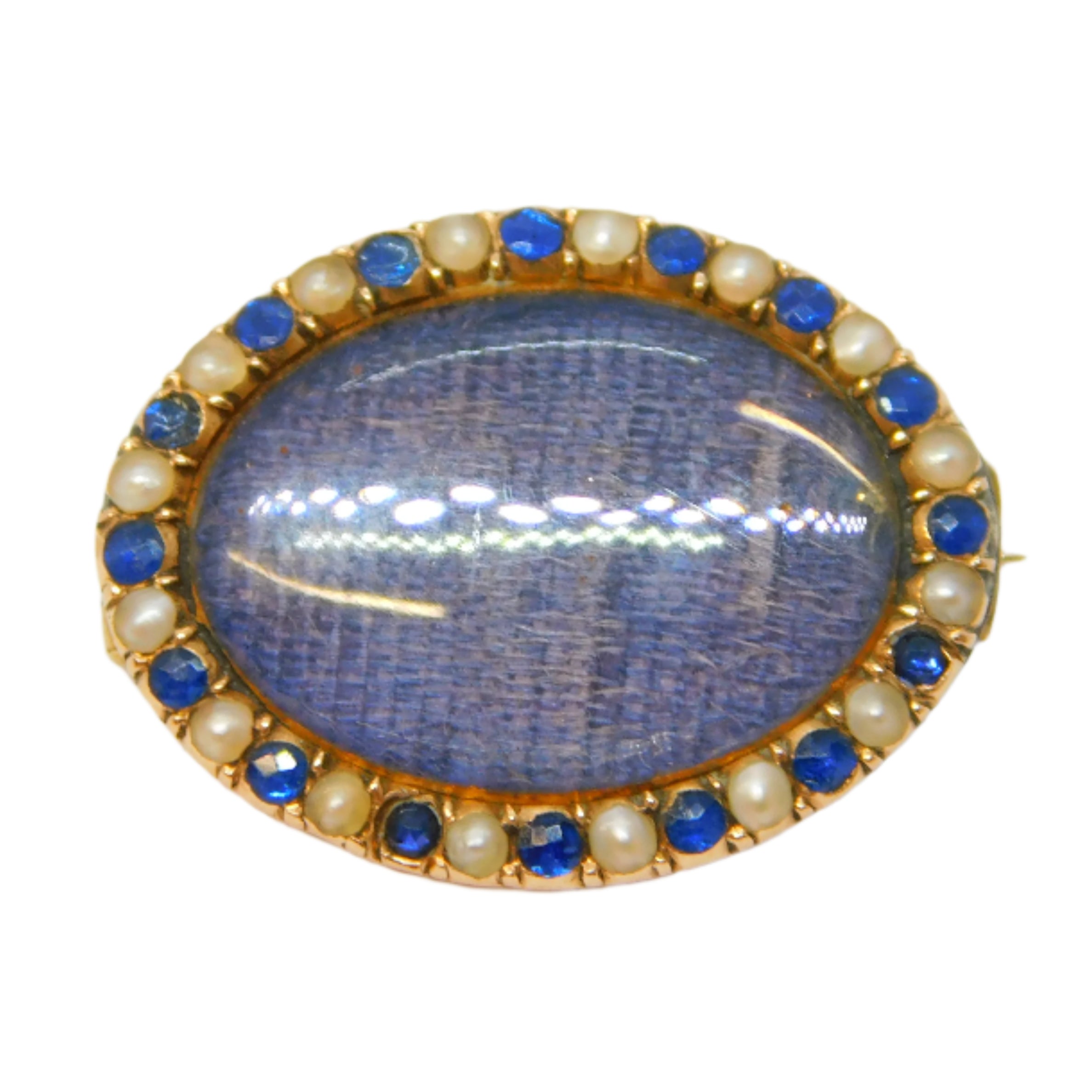 George III 9ct Gold, Sapphire & Seed Pearl Mourning Brooch Antique c1810