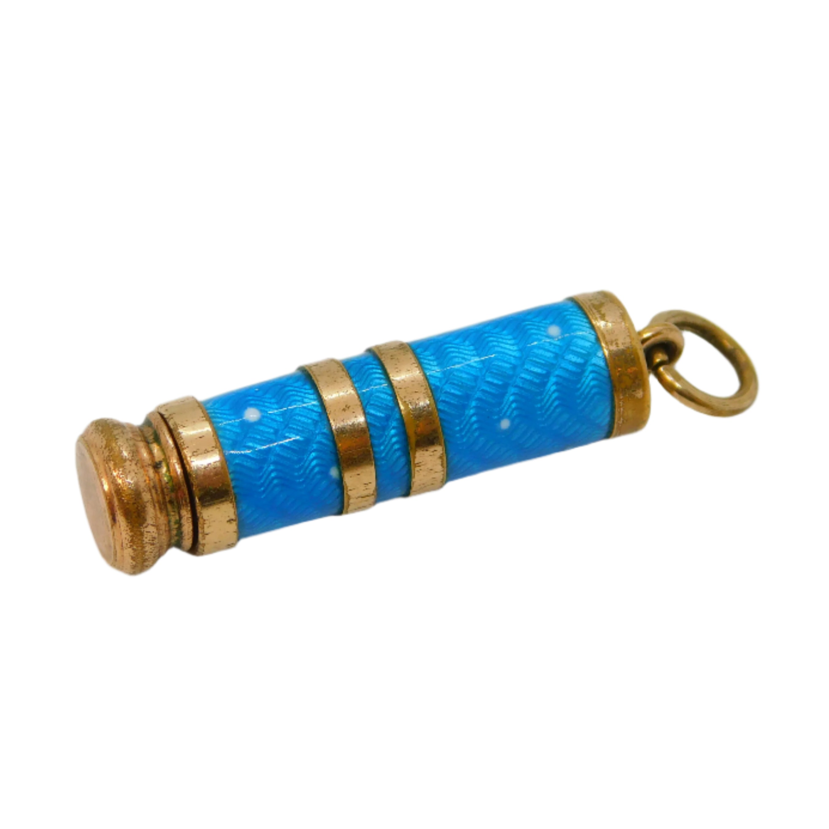 Edwardian Rolled Gold Blue Guilloche Enamel Propelling Pencil Fob Antique c1910