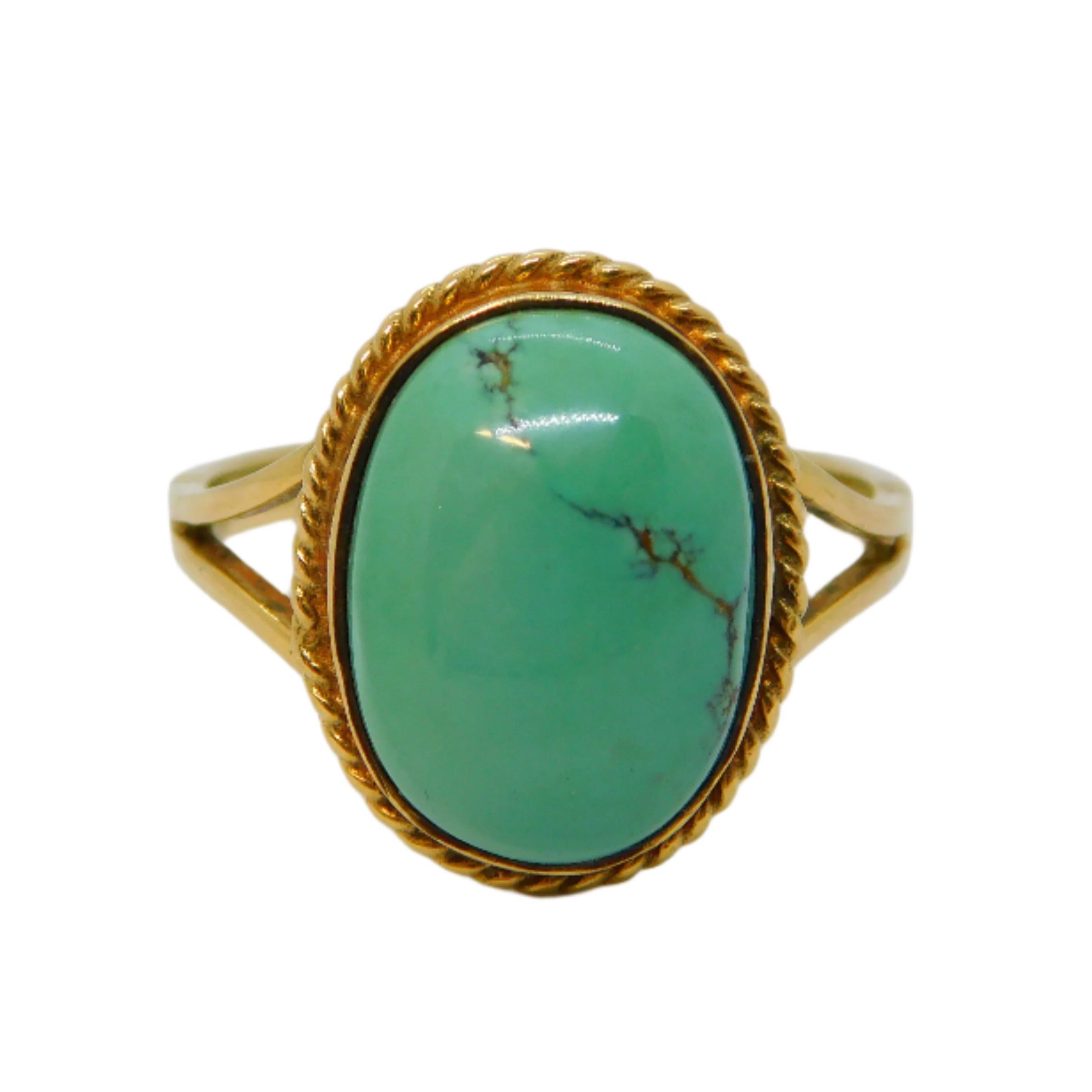 9ct Yellow Gold Cabochon Turquoise Dress Ring Vintage 1970 Sheffield