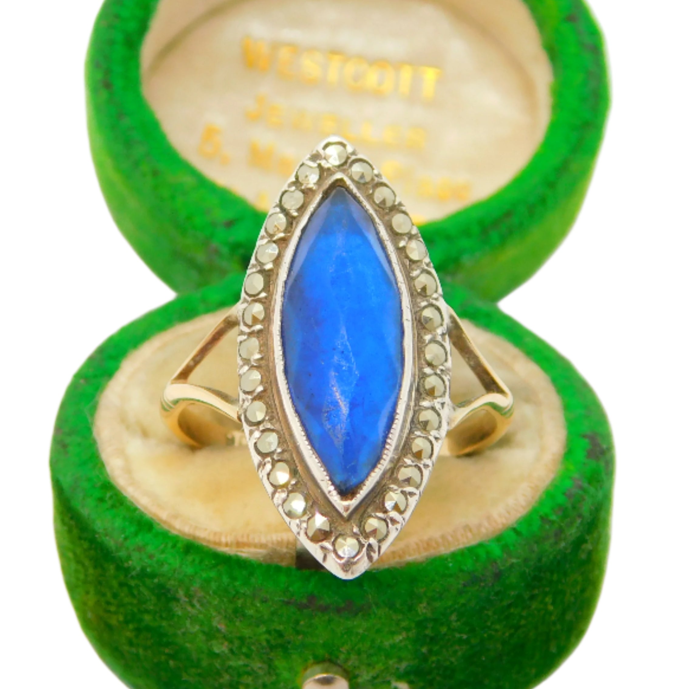 9ct Gold, Sterling Silver, Butterfly Wing & Marcasite Dress Ring Antique Deco