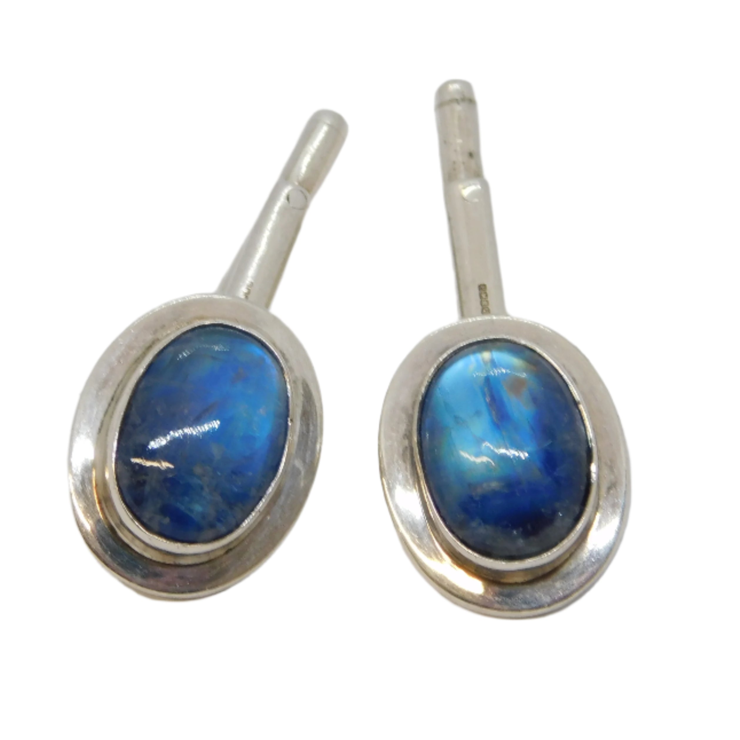 Scottish Sterling Silver Cabochon Labradorite Gents Cufflinks Vintage 2000 Edinburgh