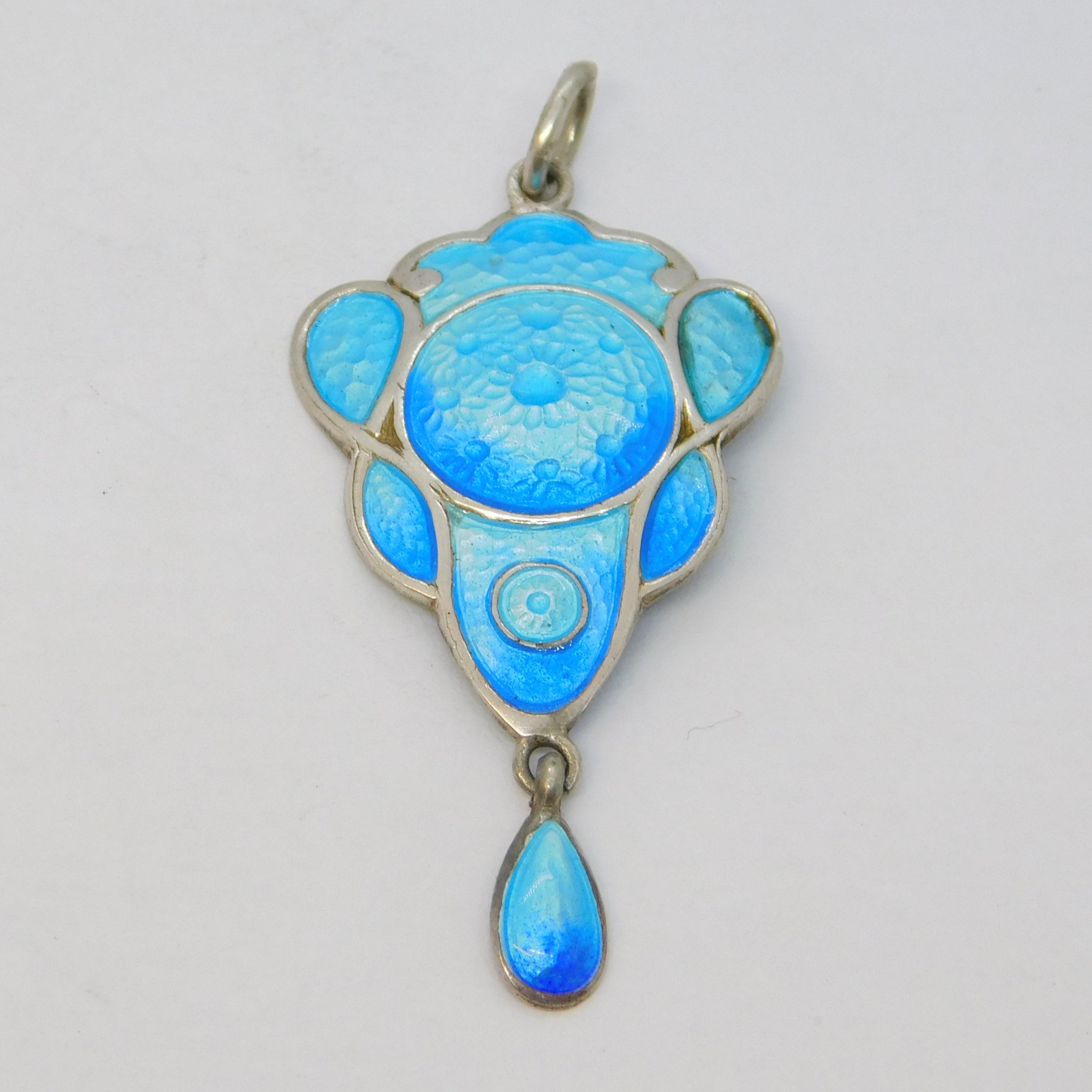 Art Nouveau Sterling Silver & Enamel Floral Drop Pendant Antique c1890