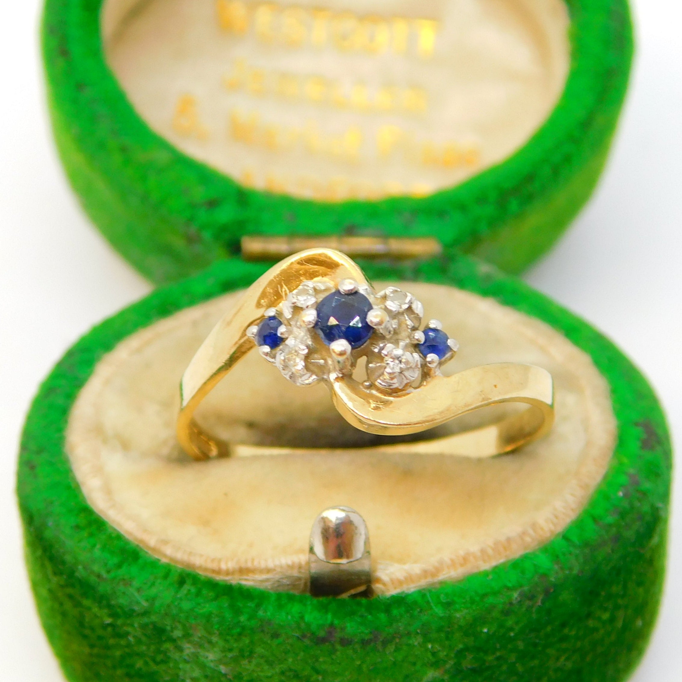 9ct Yellow Gold, Sapphire & Diamond Set Crossover Ring Vintage 1988 London