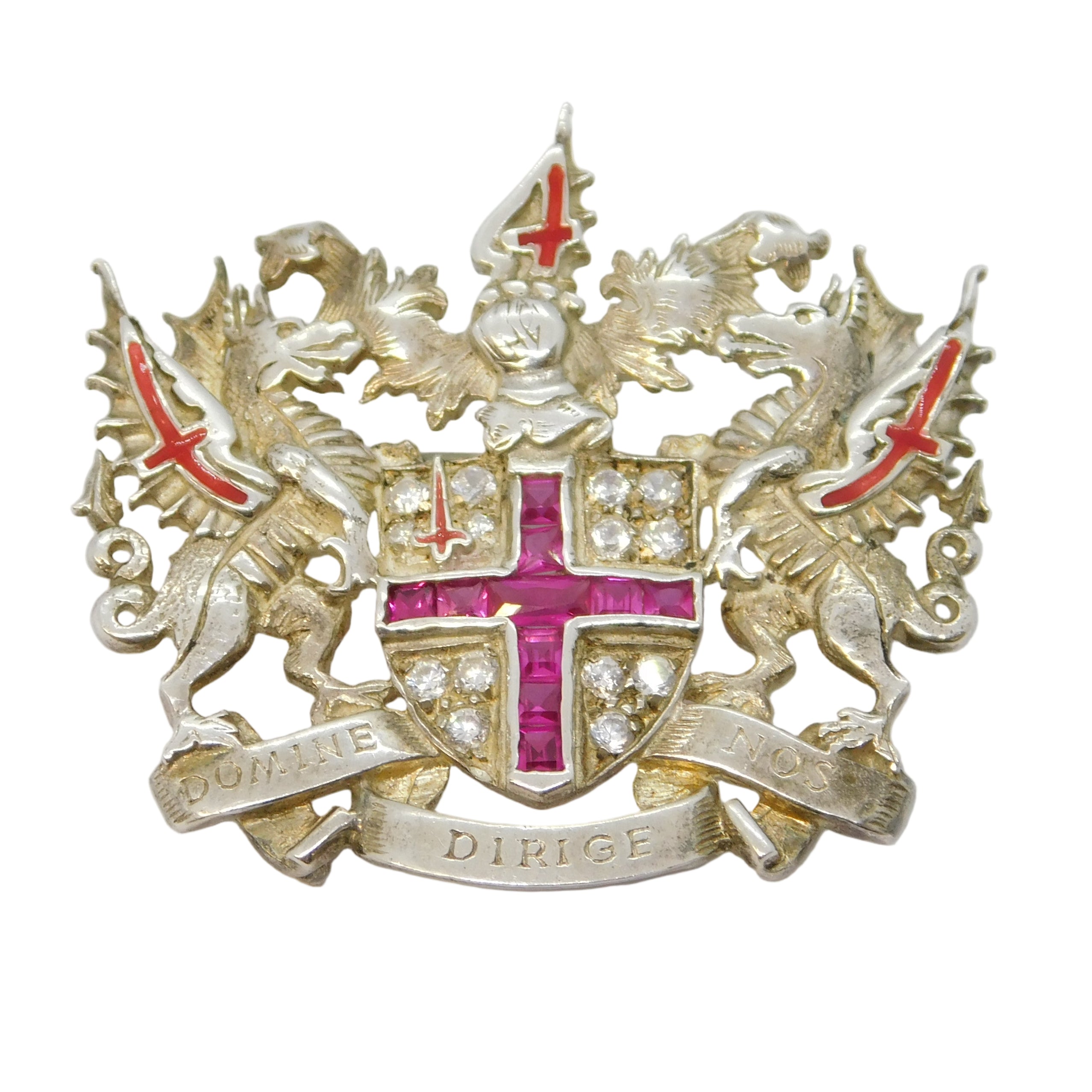 Sterling Silver, Ruby & Spinel City of London Mayor Brooch Vintage c1970