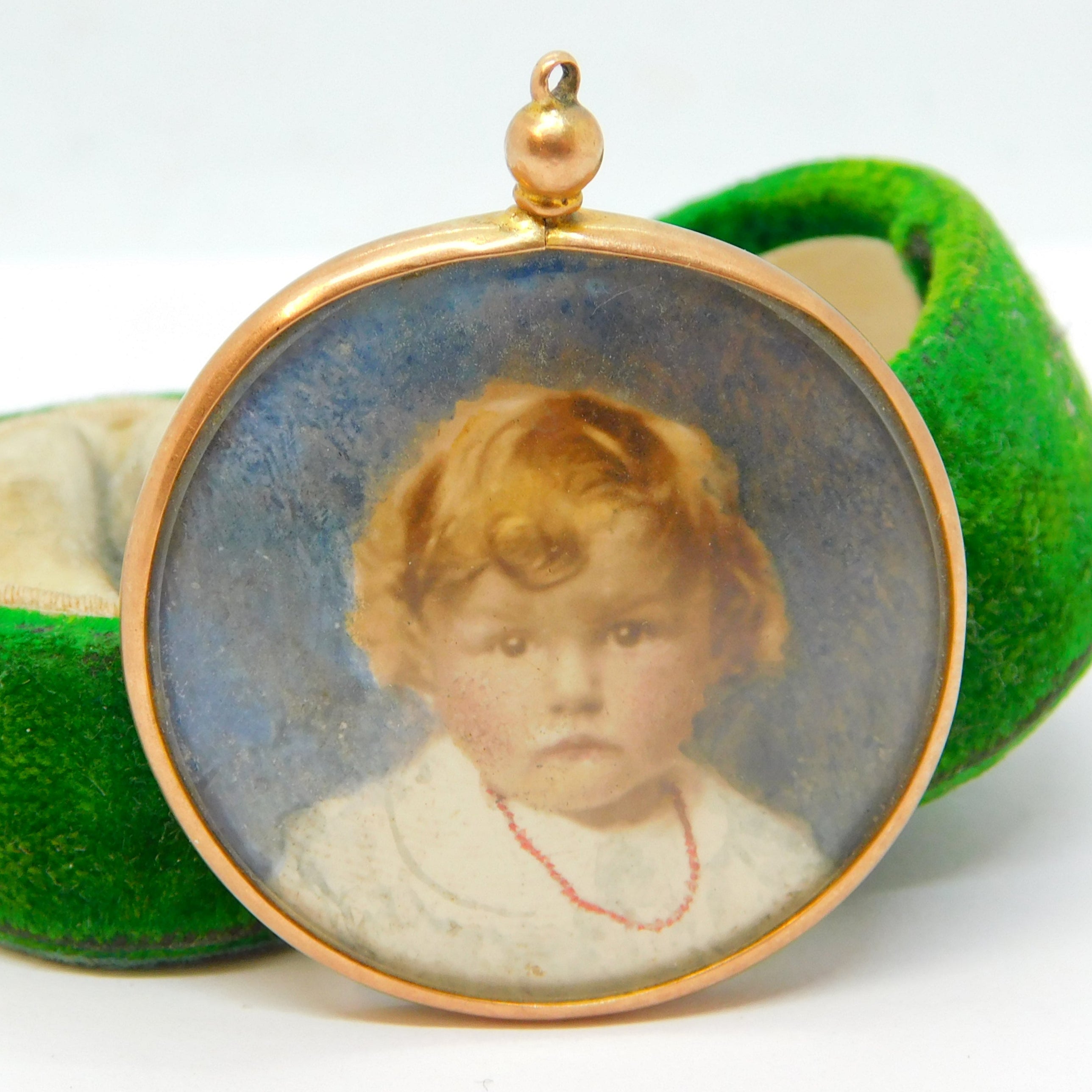 Edwardian 9ct Rose Gold Watercolour Set Double Portrait Locket Antique c1910