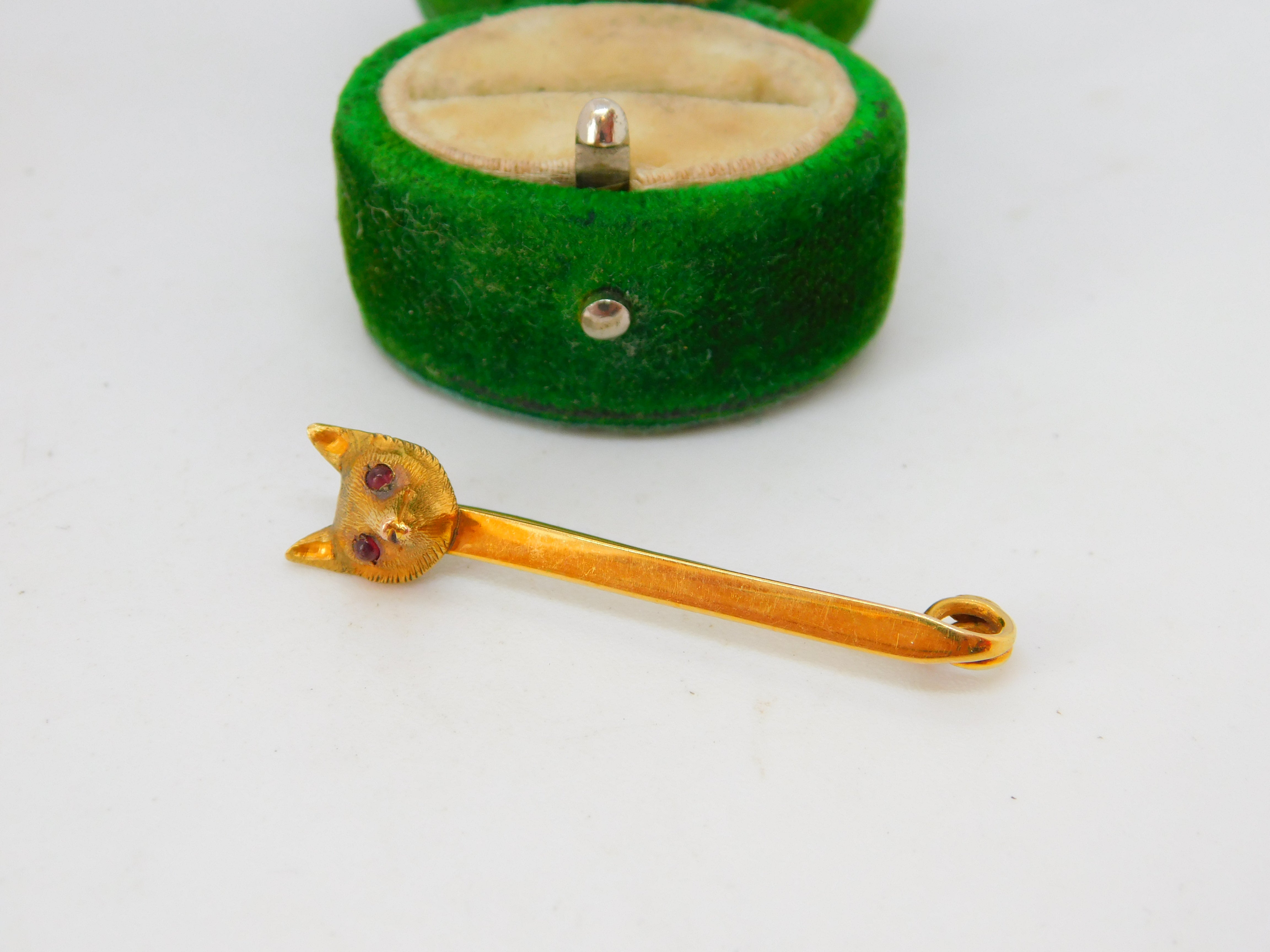 Victorian 9ct Yellow Gold Fox Mask Hunting Stock Pin Brooch Antique c1890