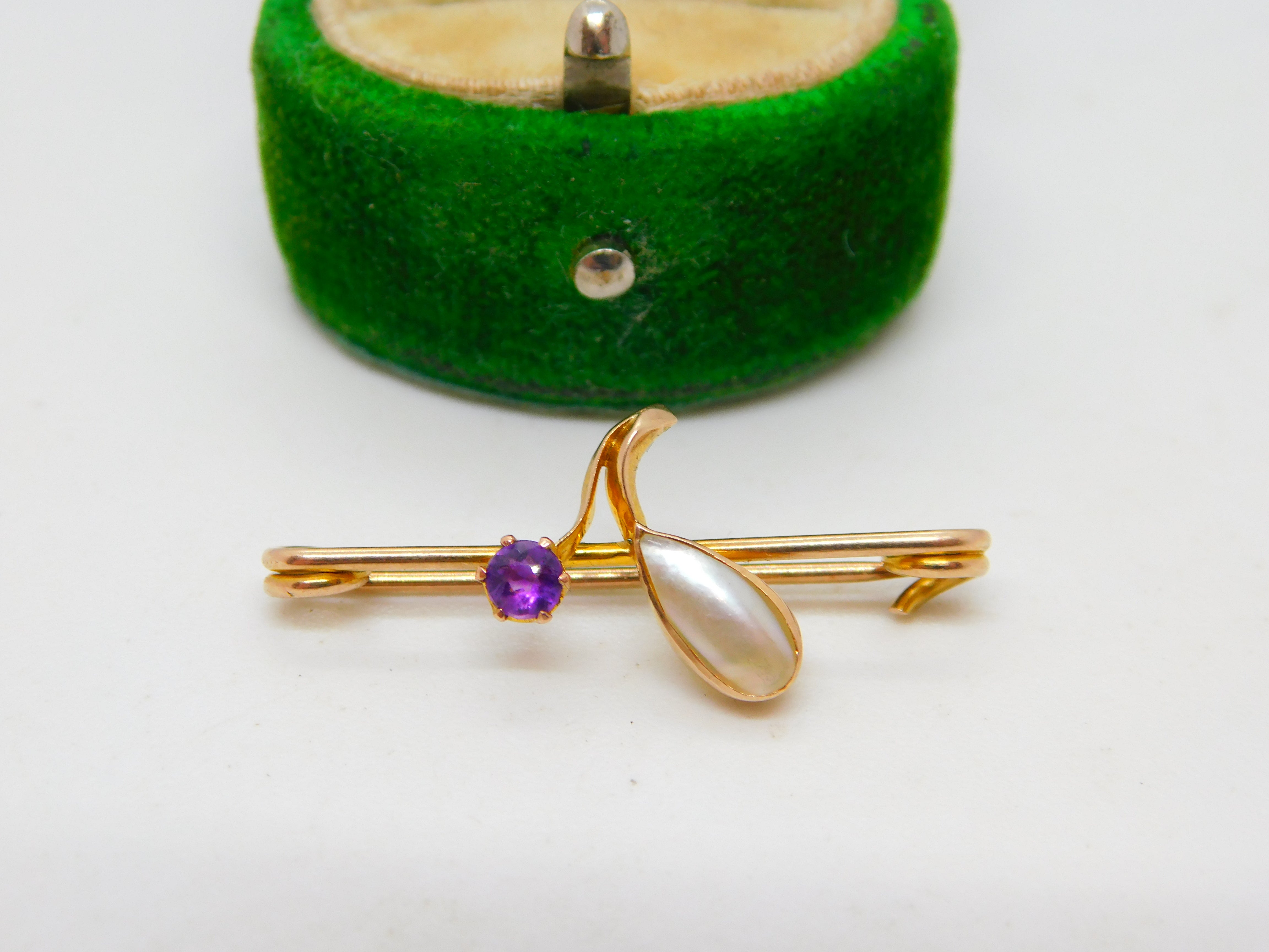 Edwardian 9ct Gold, Blistered Pearl & Amethyst Floral Brooch Antique c1910
