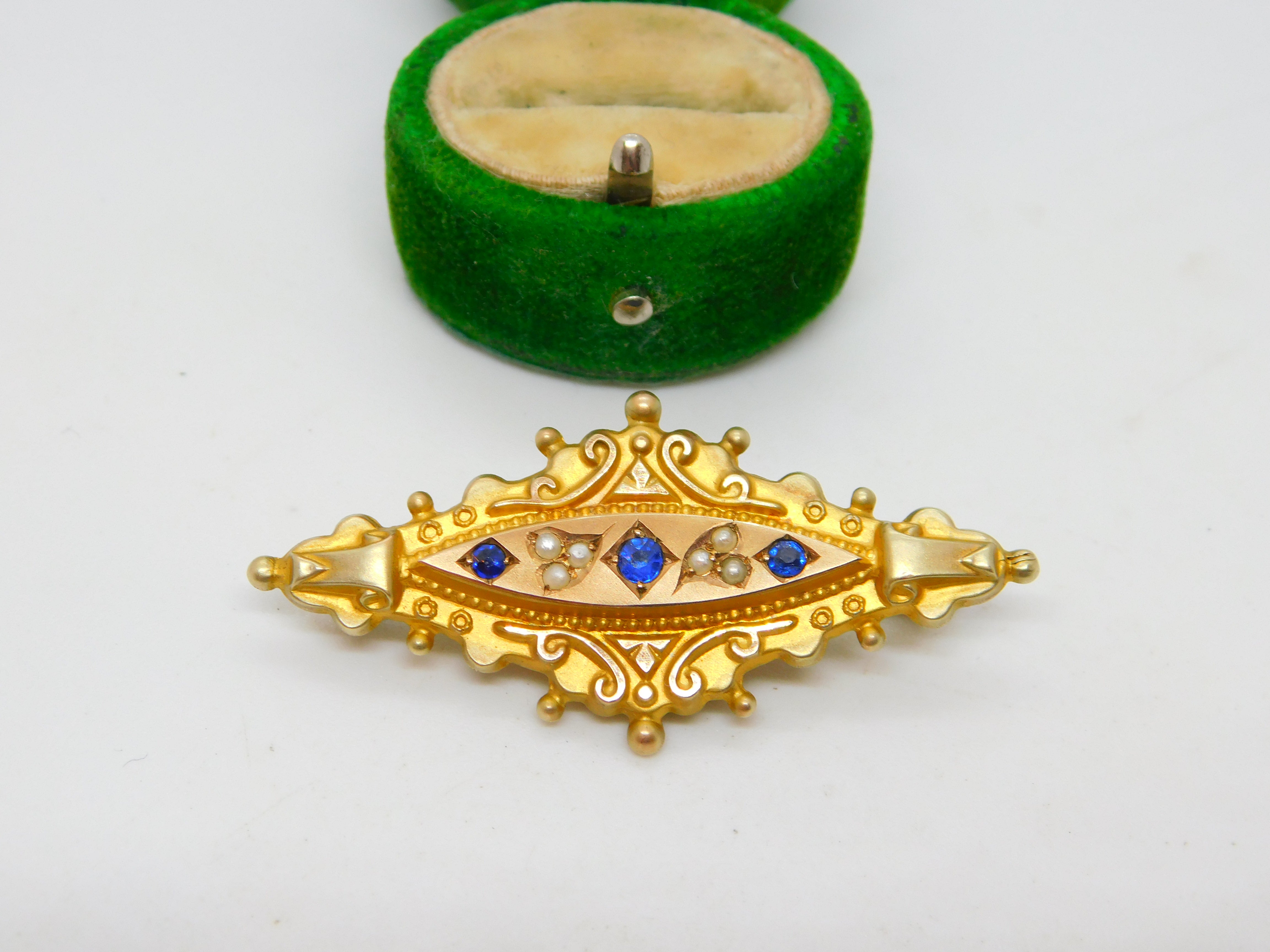 Edwardian 9ct Gold, Sapphire & Pearl Mourning Locket Brooch Antique c1910