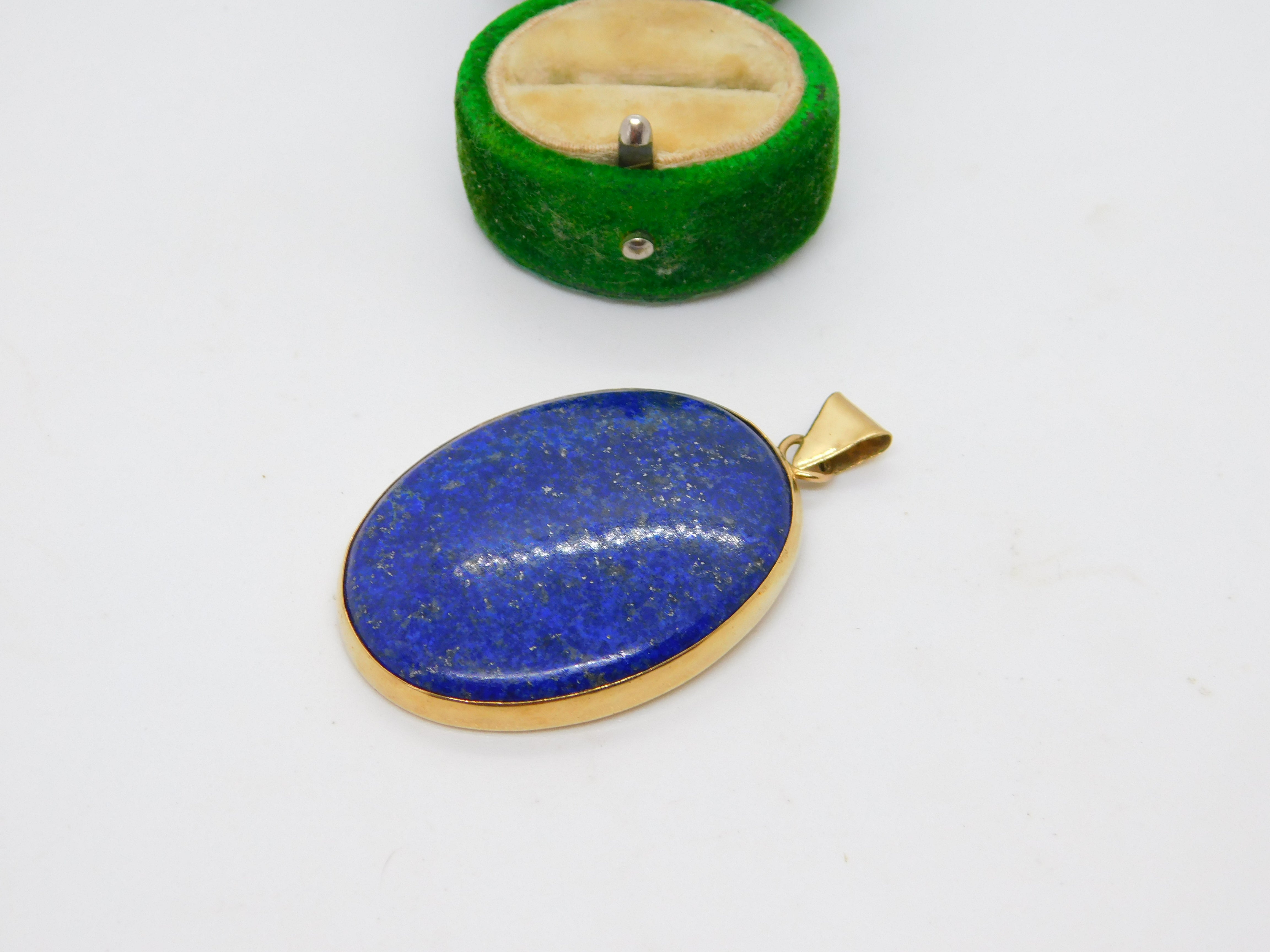 Large 9ct Yellow Gold Mounted Lapis Lazuli Drop Pendant Vintage 1976 London