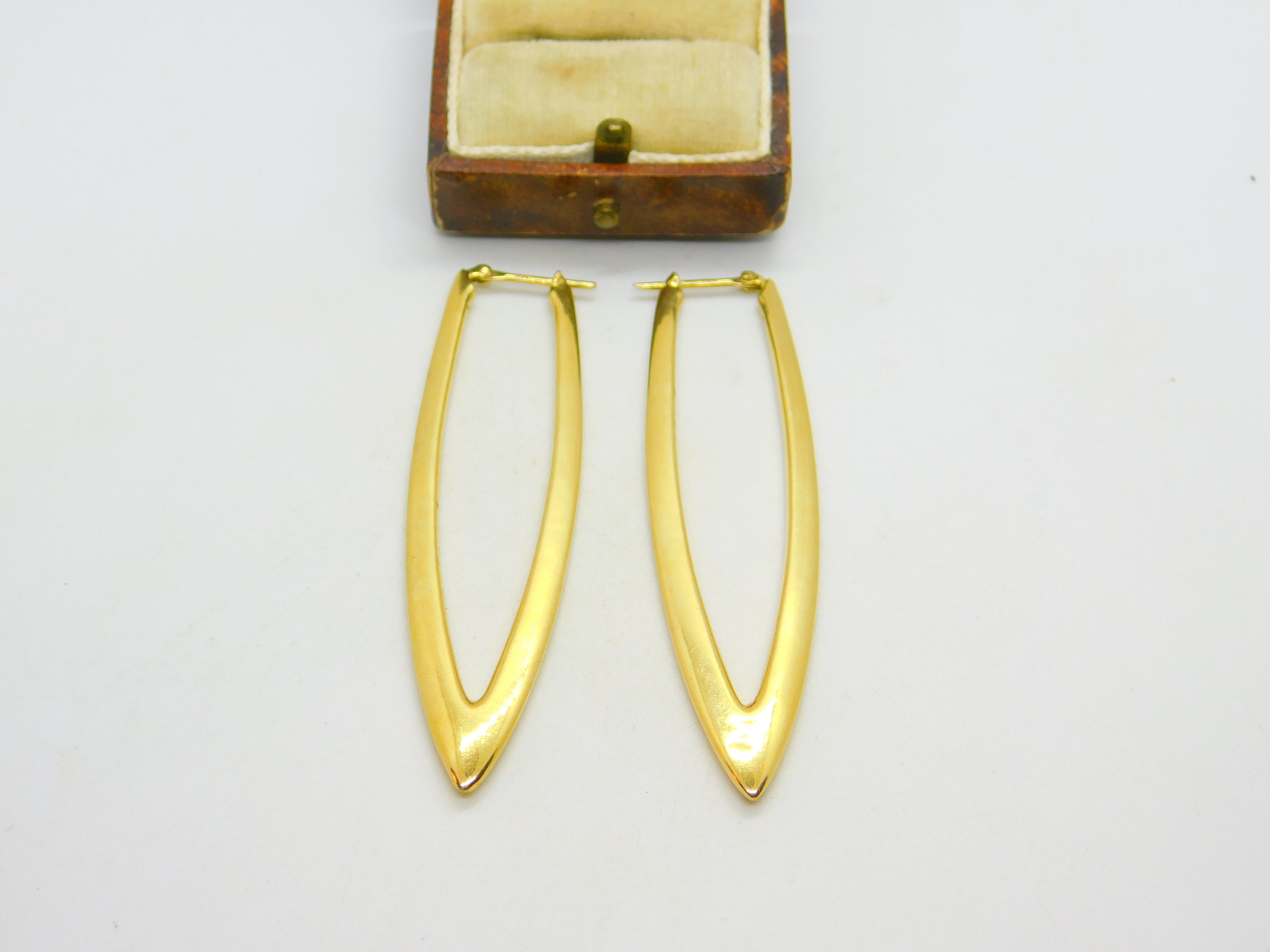 9ct Yellow Gold Oval Form Sleeper Hoop Earrings Vintage c1980