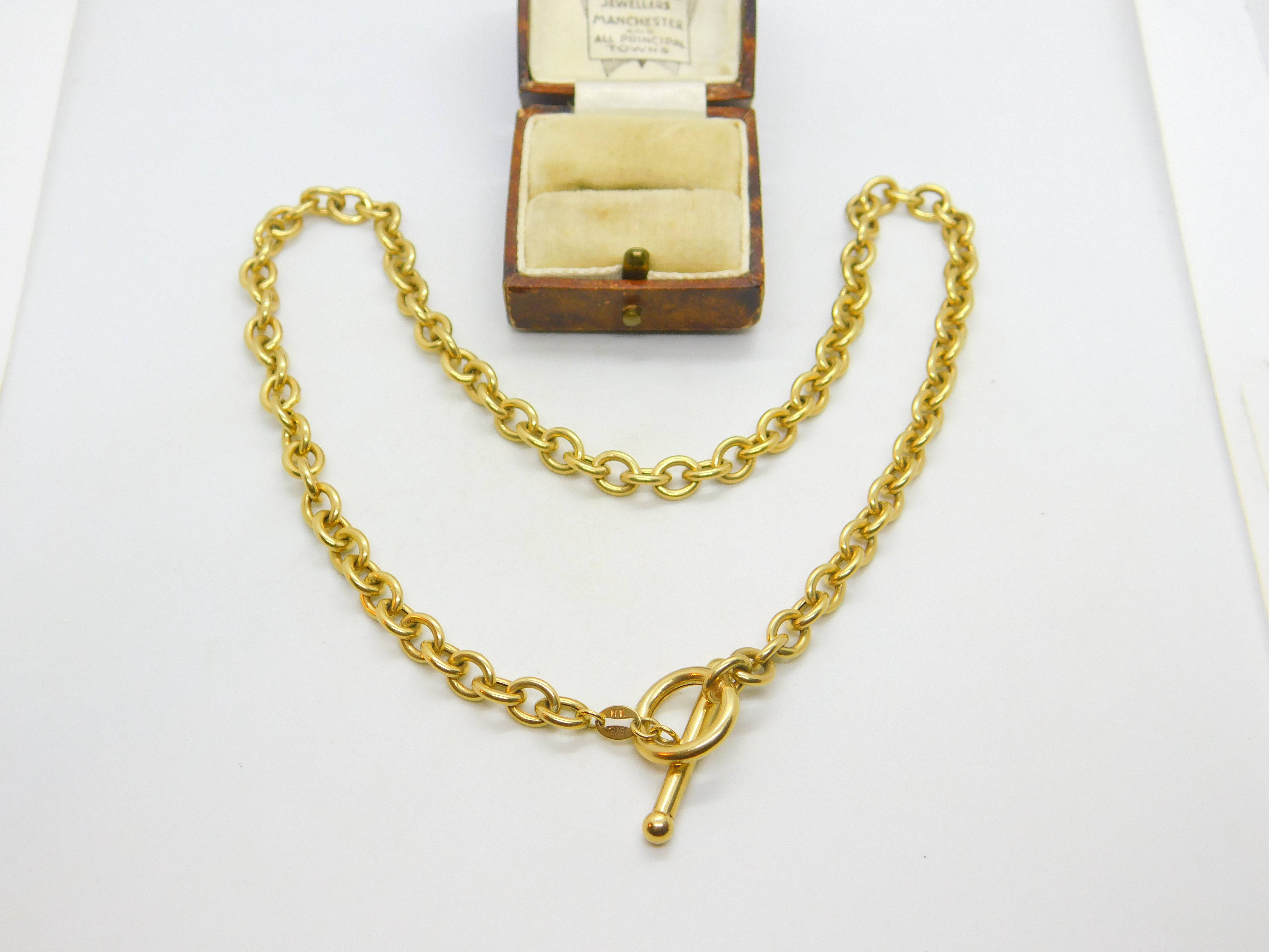 Italian 9ct Yellow Gold Cable Link Chain Necklace T-Bar Clasp Vintage c1980 42cm