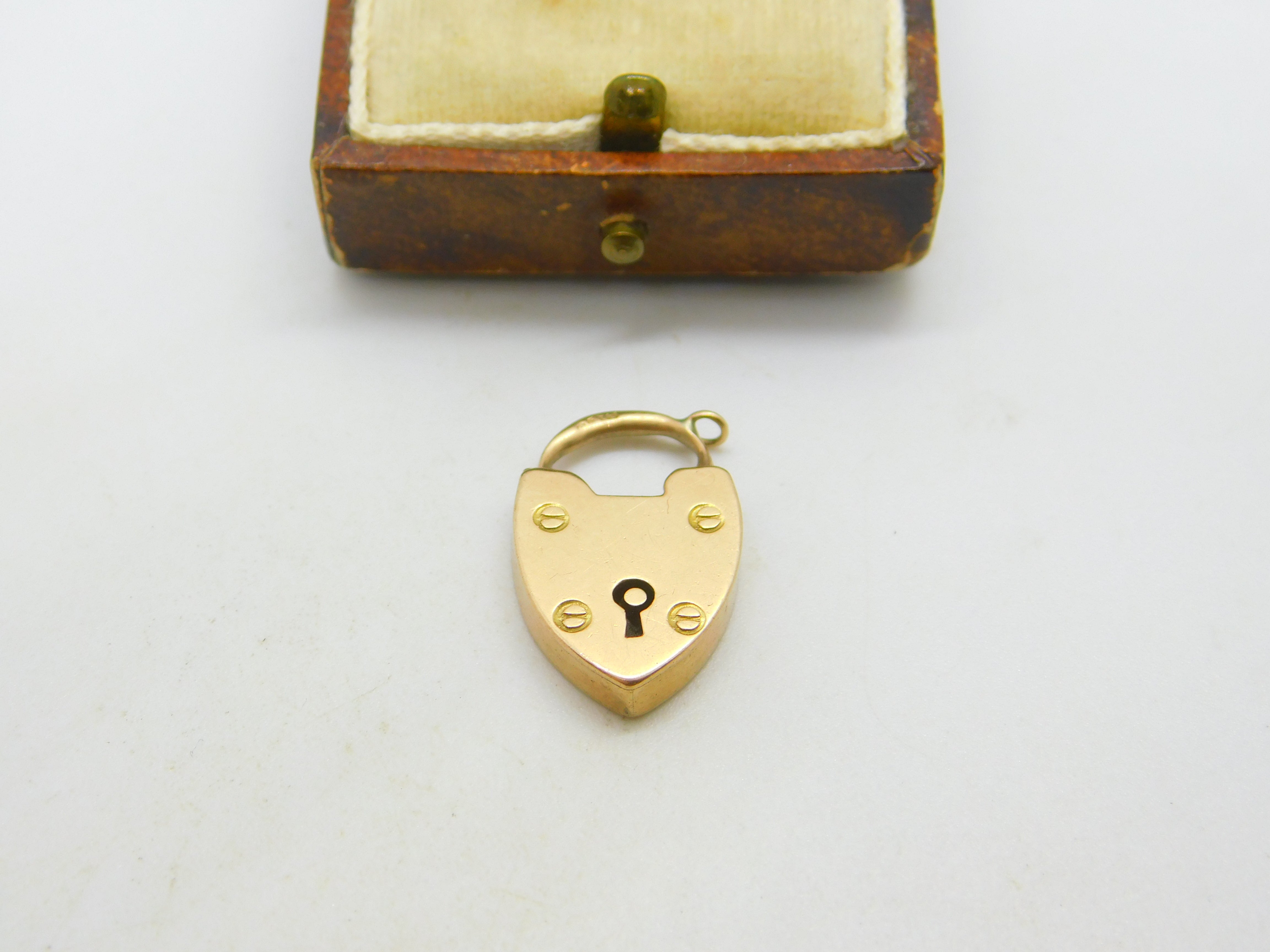 Edwardian 9ct Rose Gold Heart Lock Charm Clasp Antique 1908 Birmingham