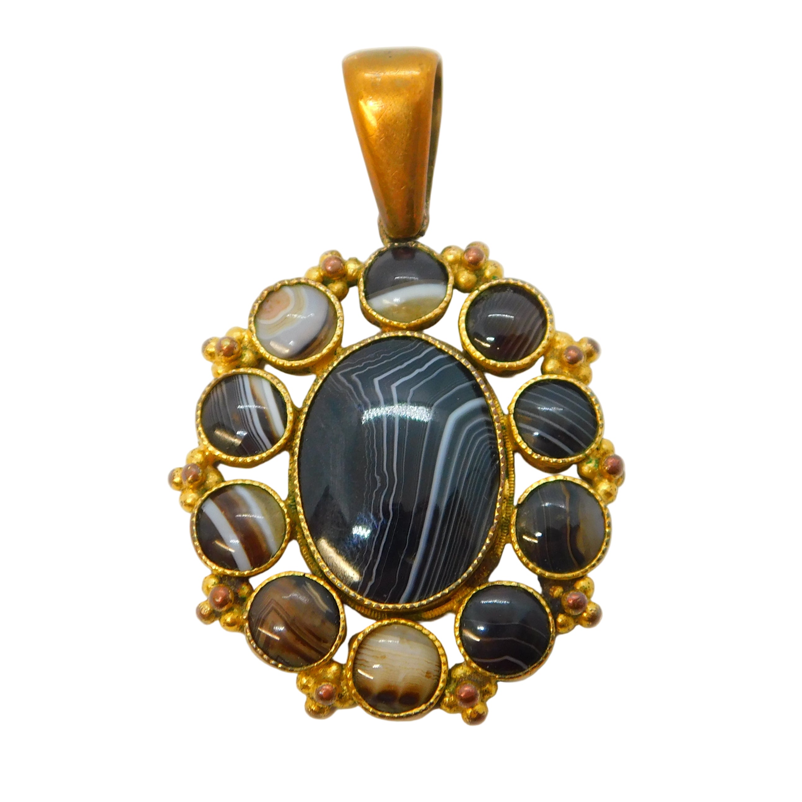 Georgian Pinchbeck & Banded Agate Set Drop Pendant Antique c1790