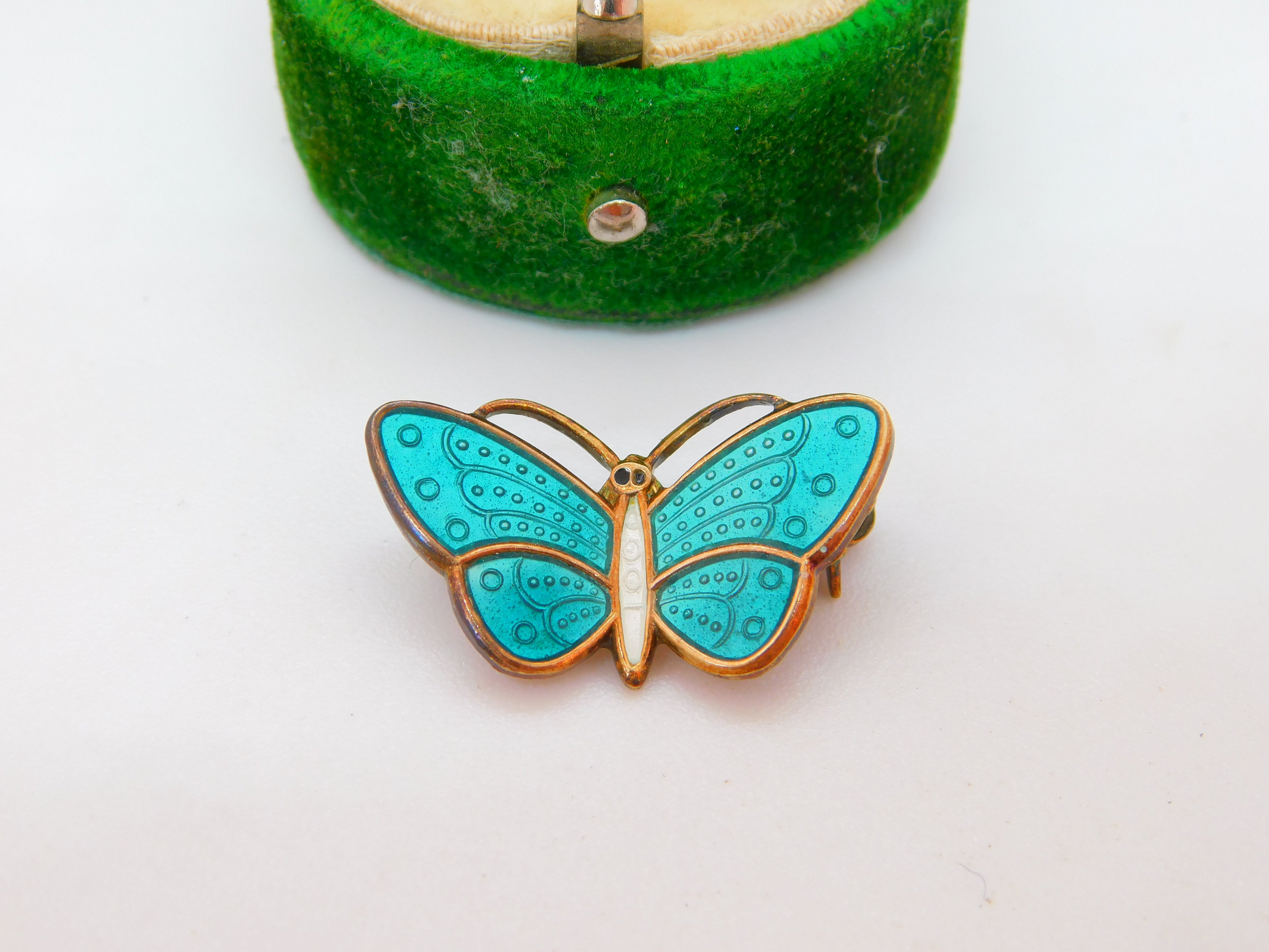 Aksel Holmsen Norway Sterling Silver Guilloche Enamel Butterfly Brooch Antique