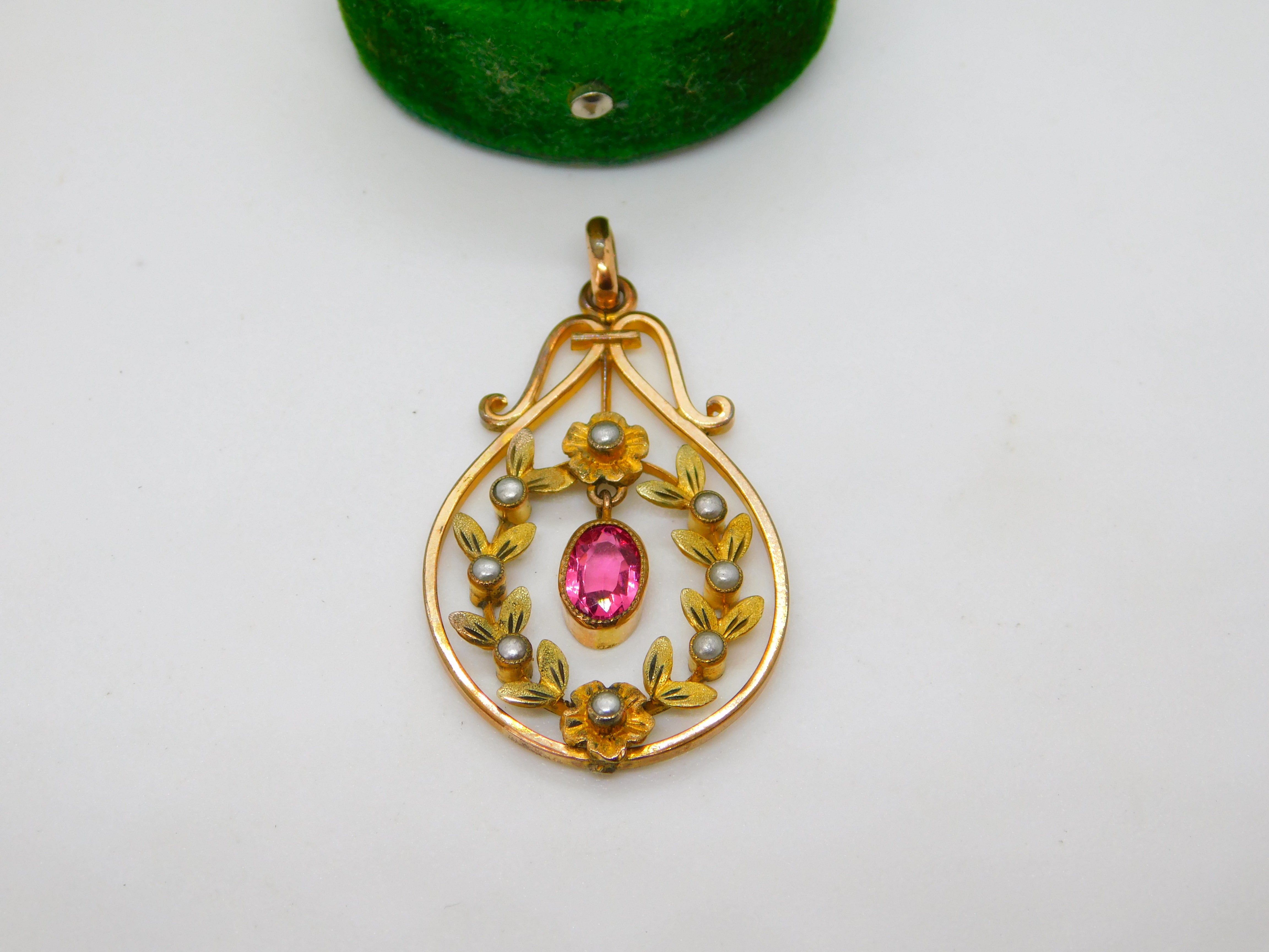 Edwardian Rolled Gold Seed Pearl & Paste Lavalier Drop Pendant Antique c1910