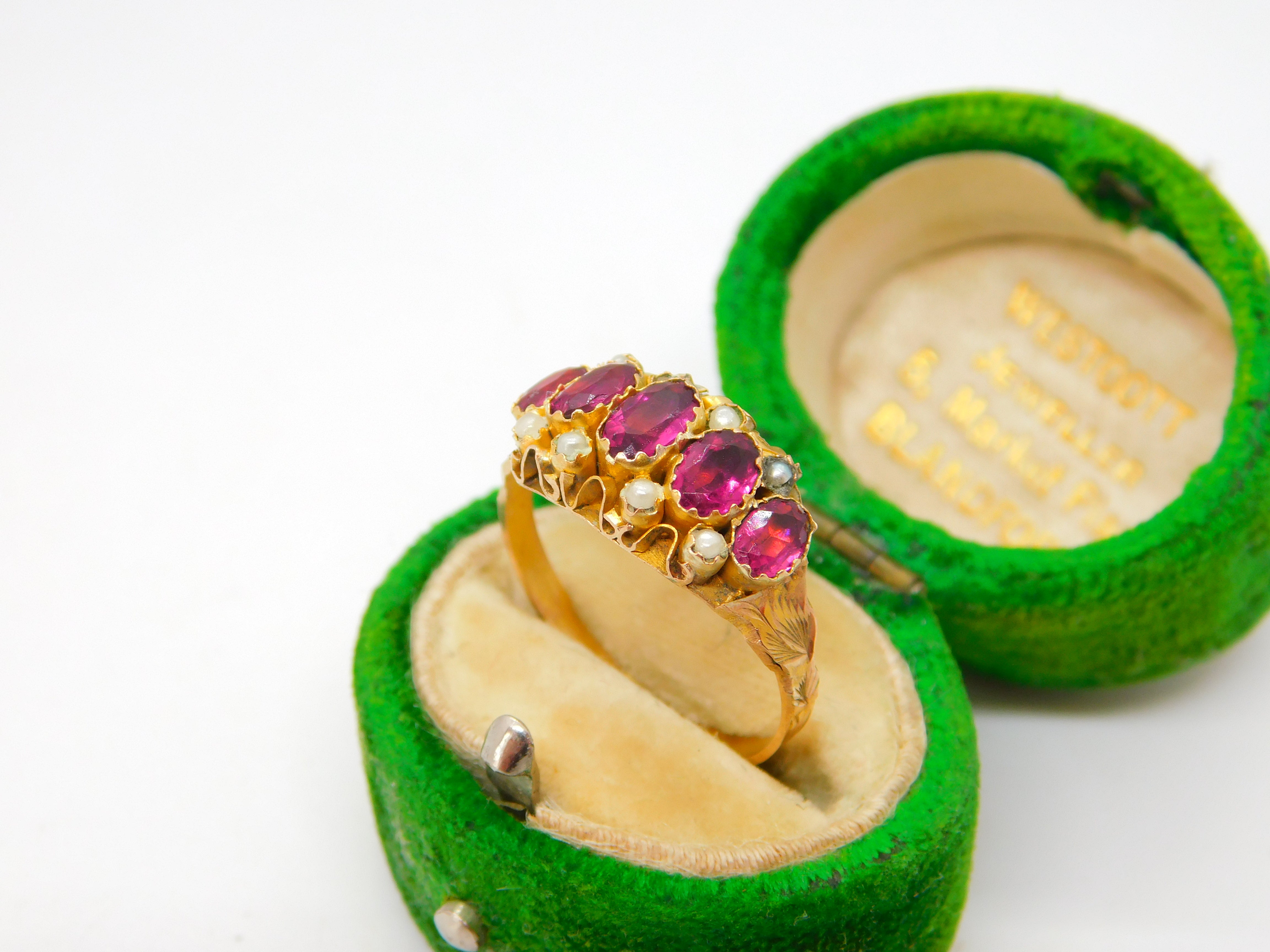 Georgian 18ct Yellow Gold, Garnet & Seed Pearl Dress Ring Antique c1830 Regency