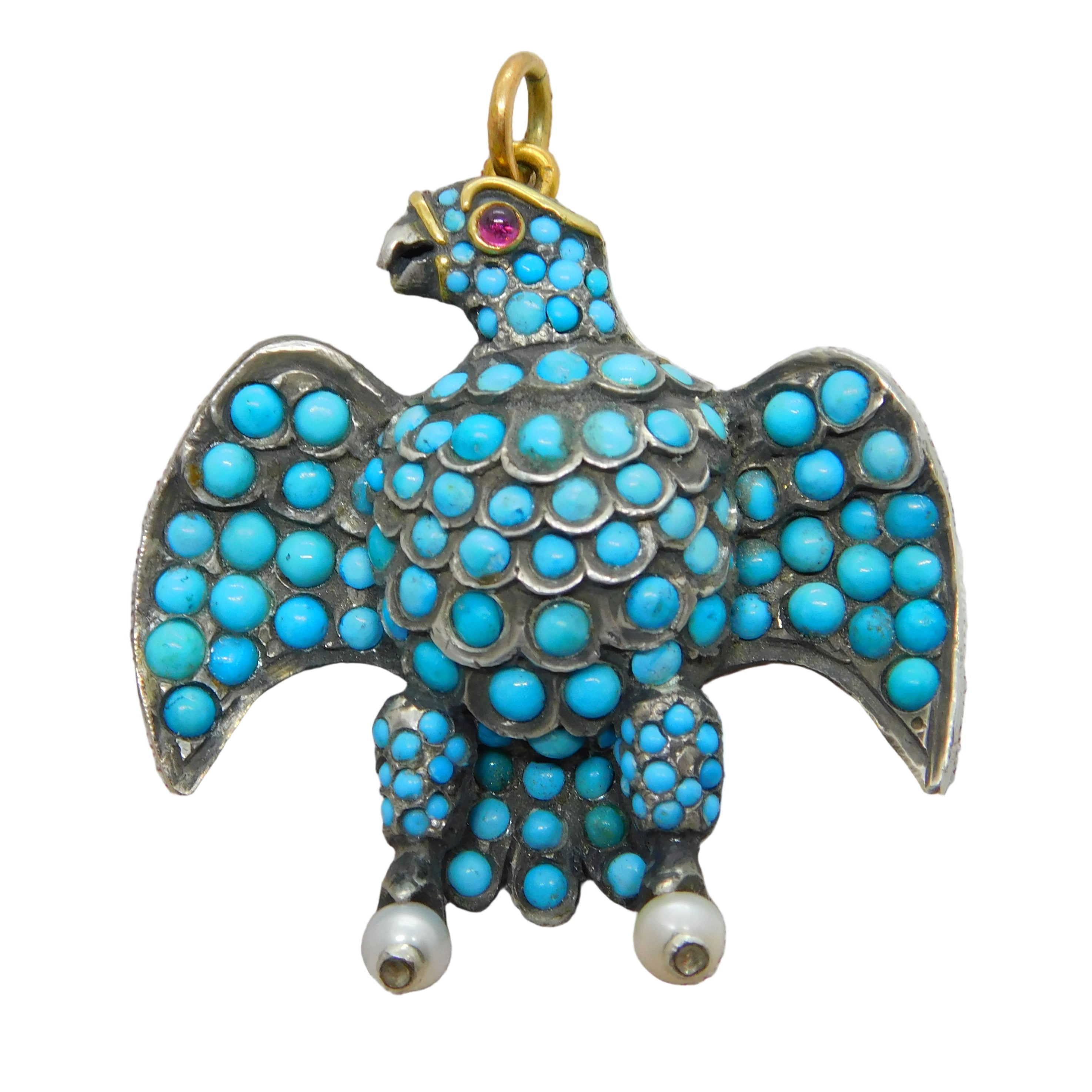 Georgian 18ct Gold & Silver Pave Set Turquoise Eagle Mourning Pendant Antique c1830