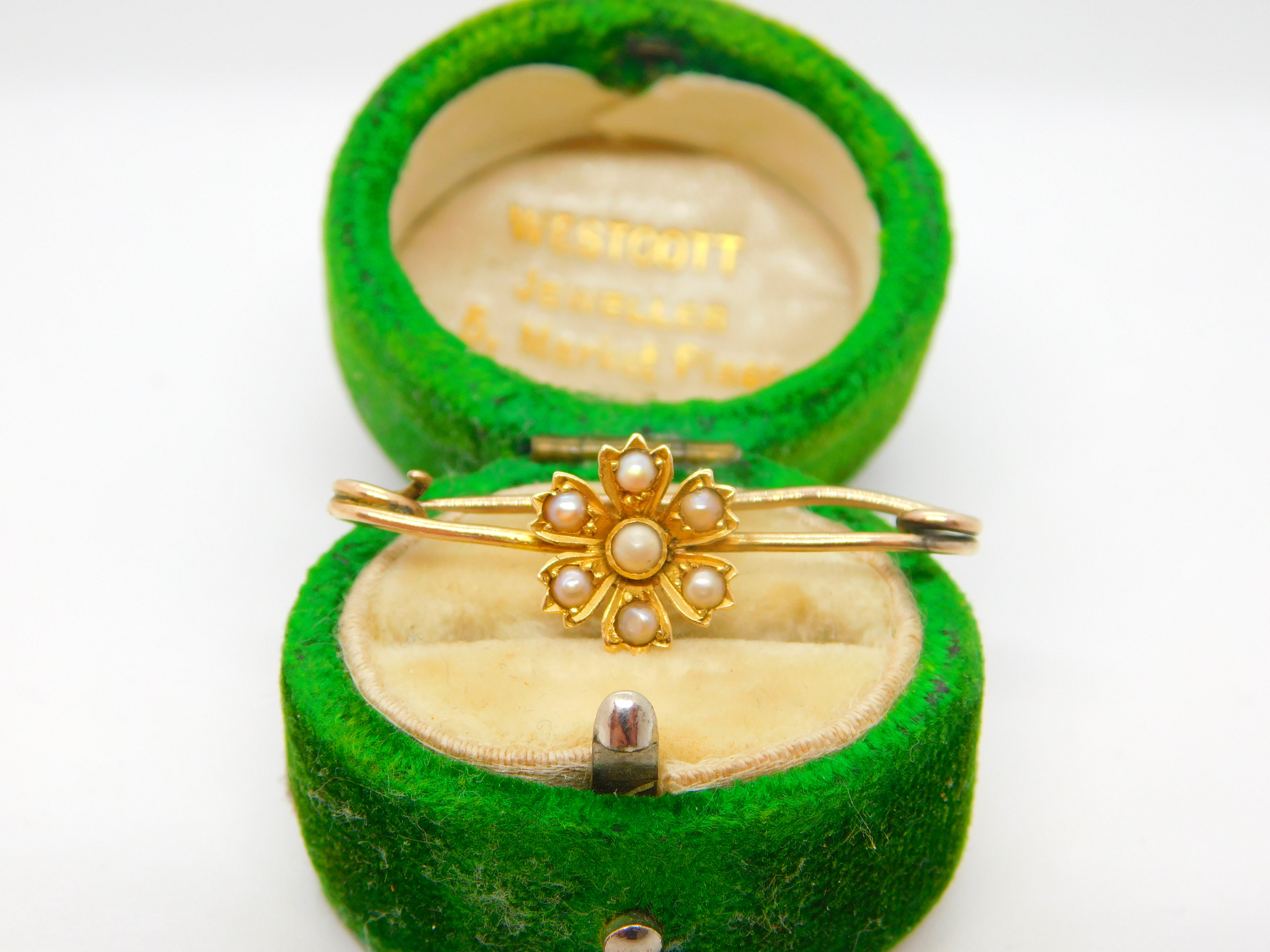 Edwardian 15ct Yellow Gold Seed Pearl Daisy Flower Brooch Antique c1910