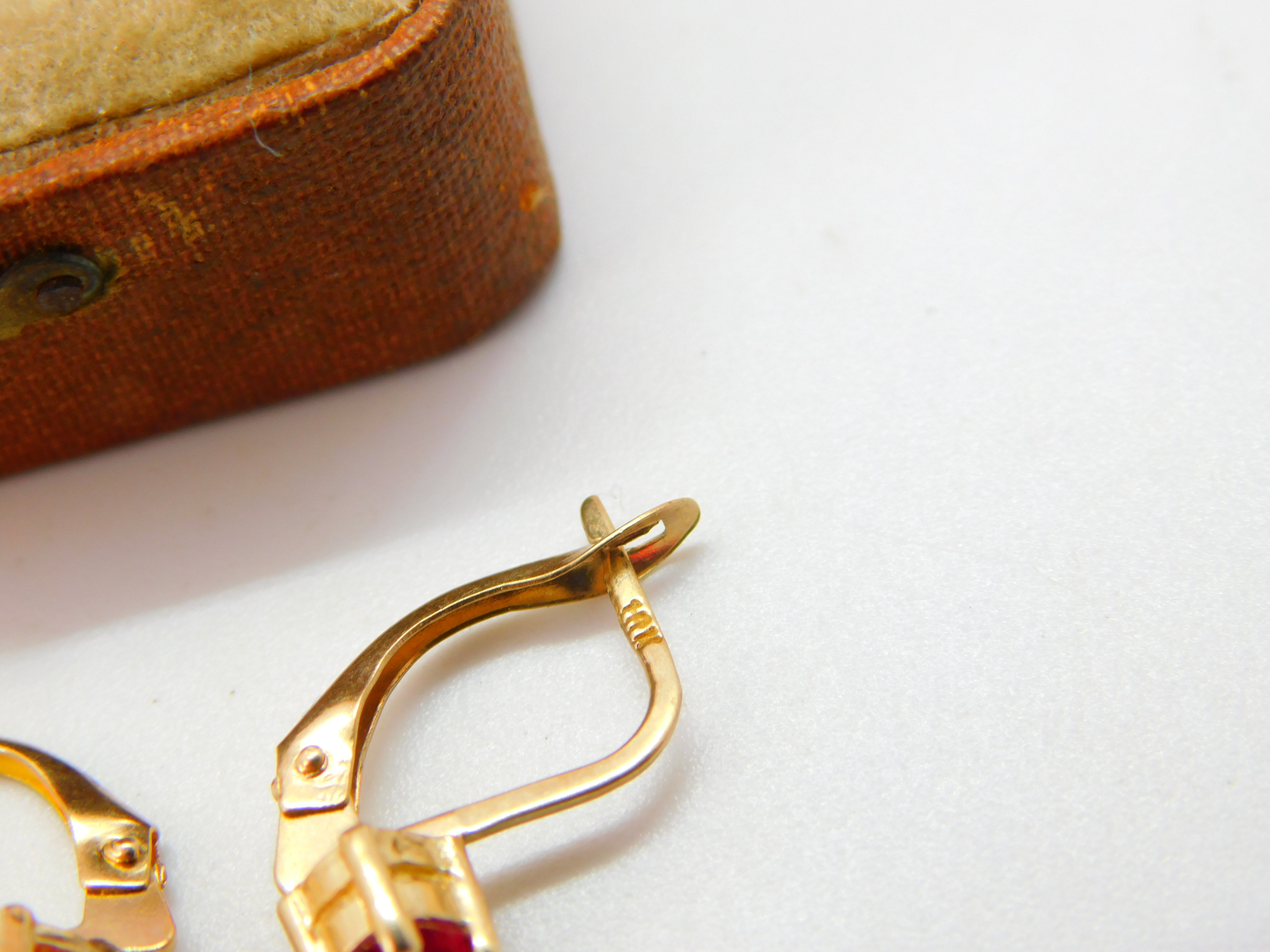 10ct Yellow Gold Ruby Paste Set Clip Earrings Vintage c1990