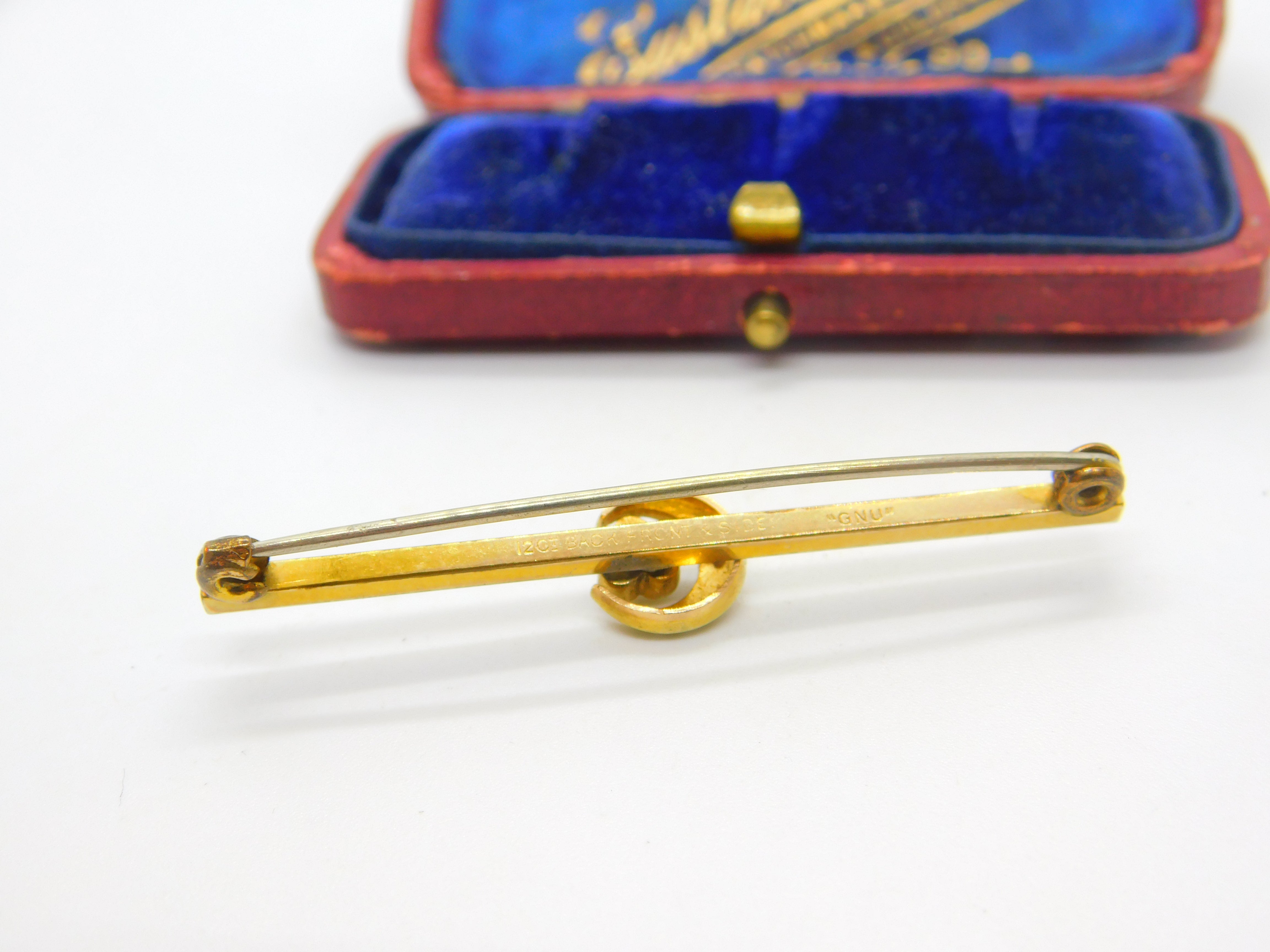 Details: A fantastic and wonderfully designed antique art deco 12ct yellow gold cased sweetheart brooch set with seed pearls in lovely crescent and shamrock design marked 12ct gold back, front and sides to the reverse. This is a wonderful item that would make a perfect gift or addition to any collection. The BOX pictured is for PRESENTATION ONLY and is NOT included in the listings but used to frame the pictures unless specifically stated otherwise.