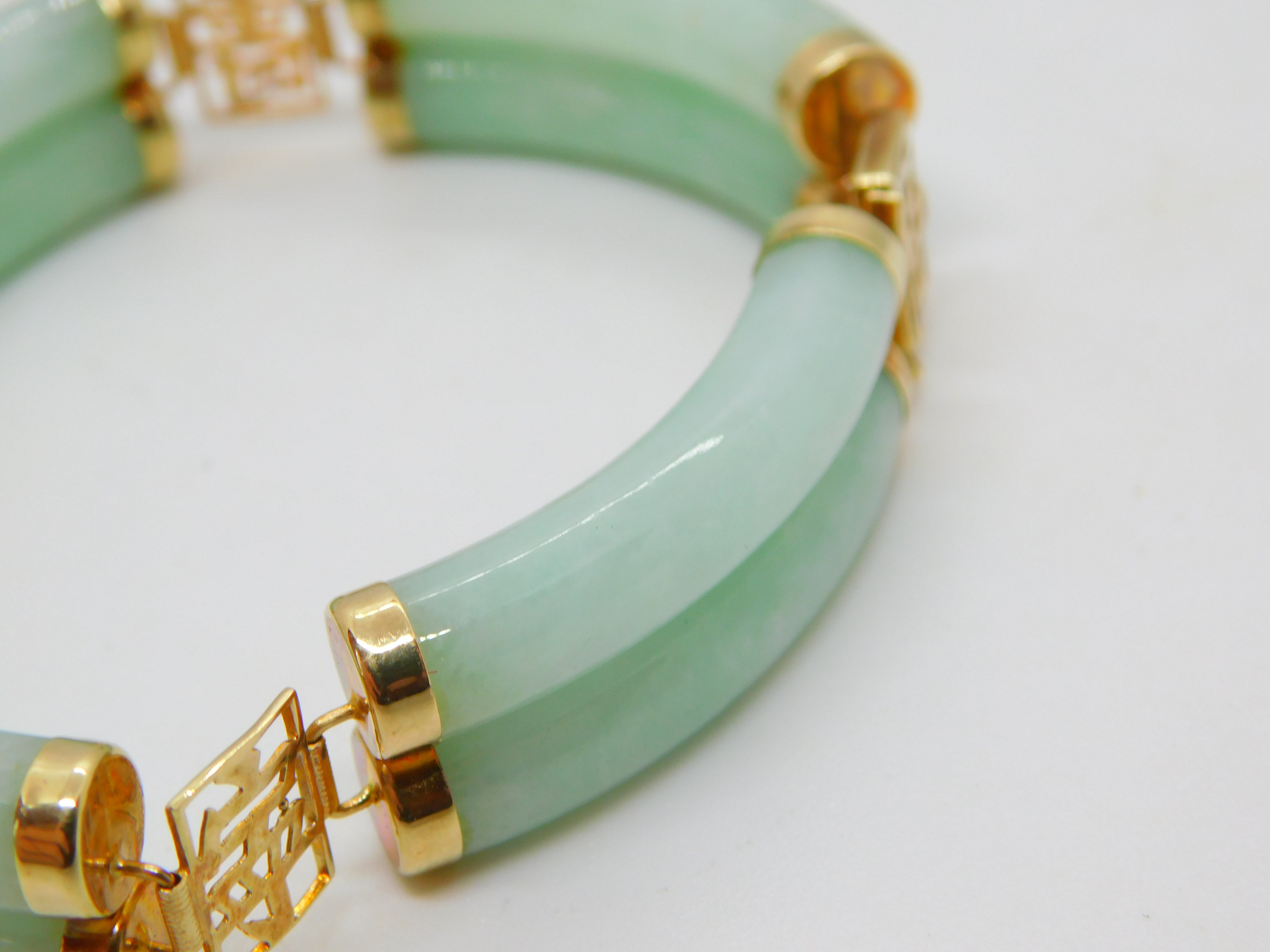 14ct Gold & Apple Green Jade Character Panel Bracelet Vintage 2001 Birmingham