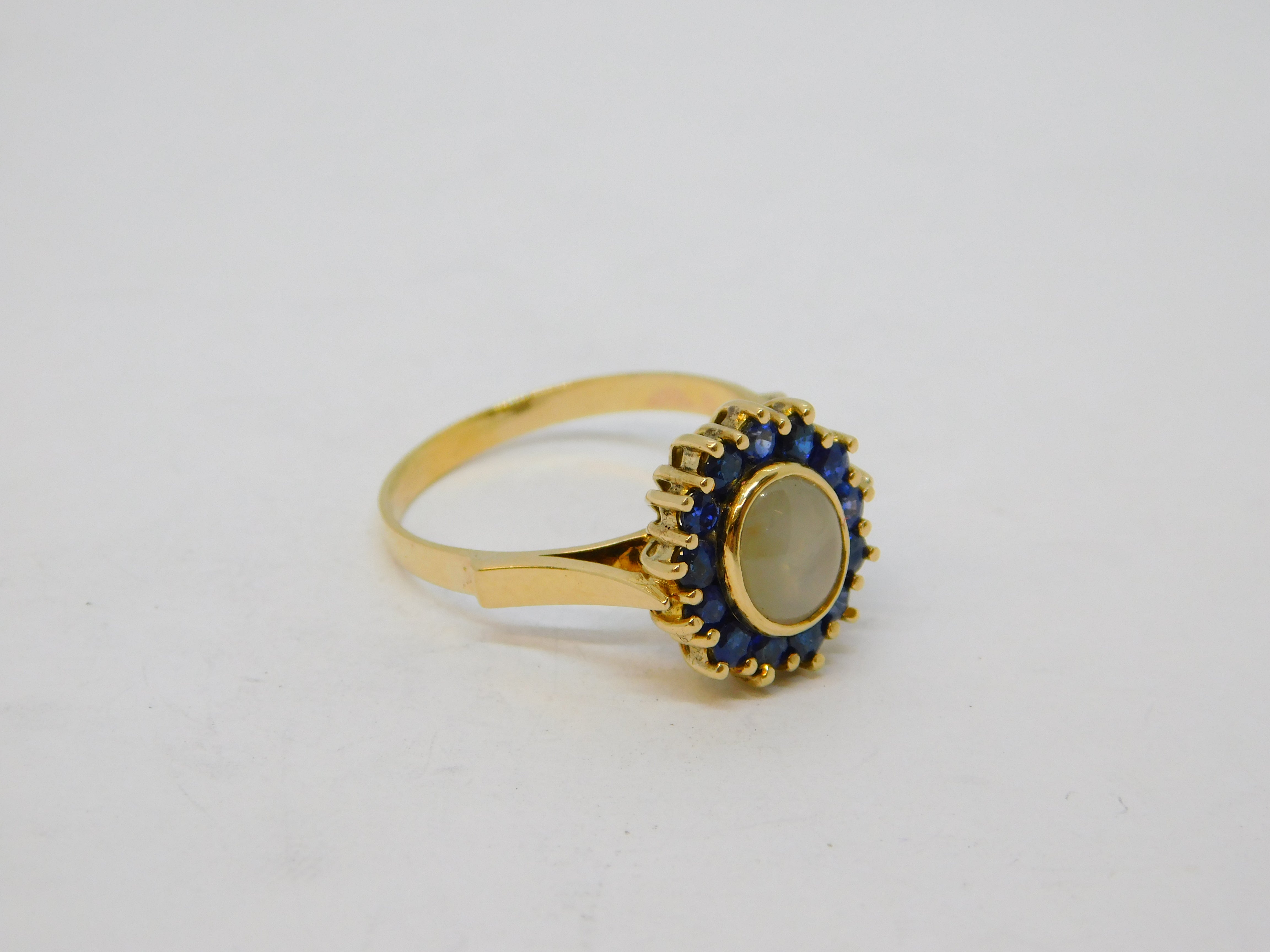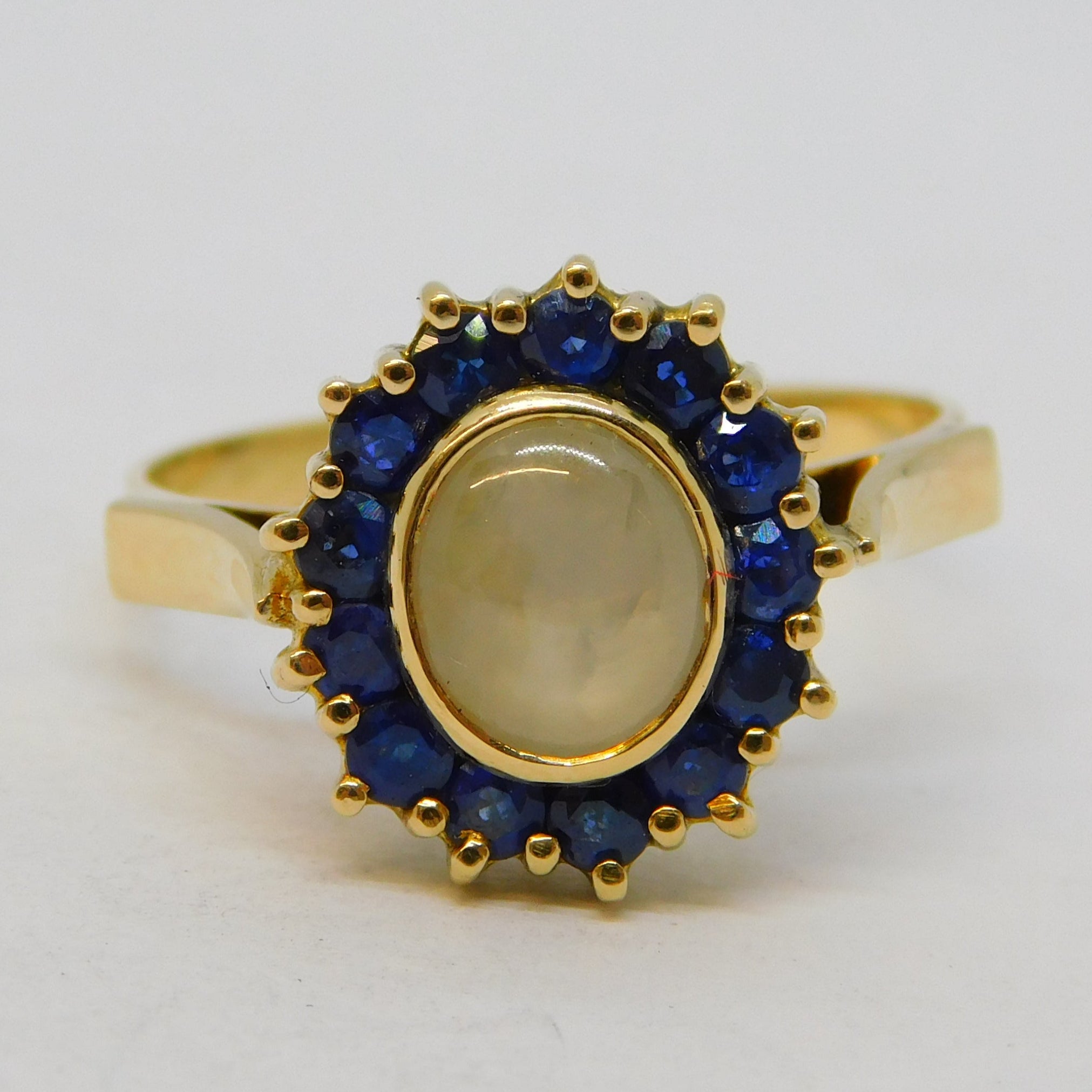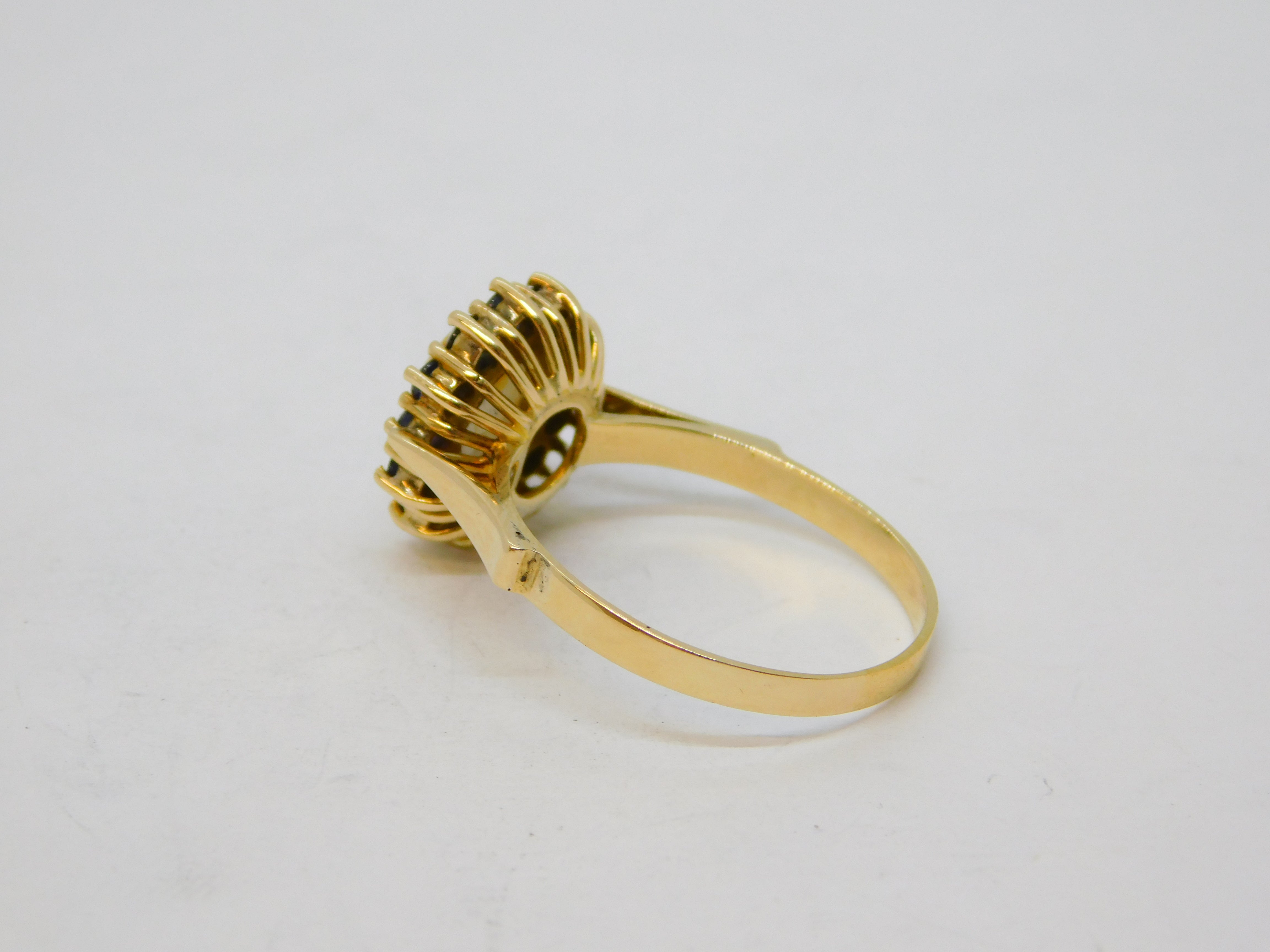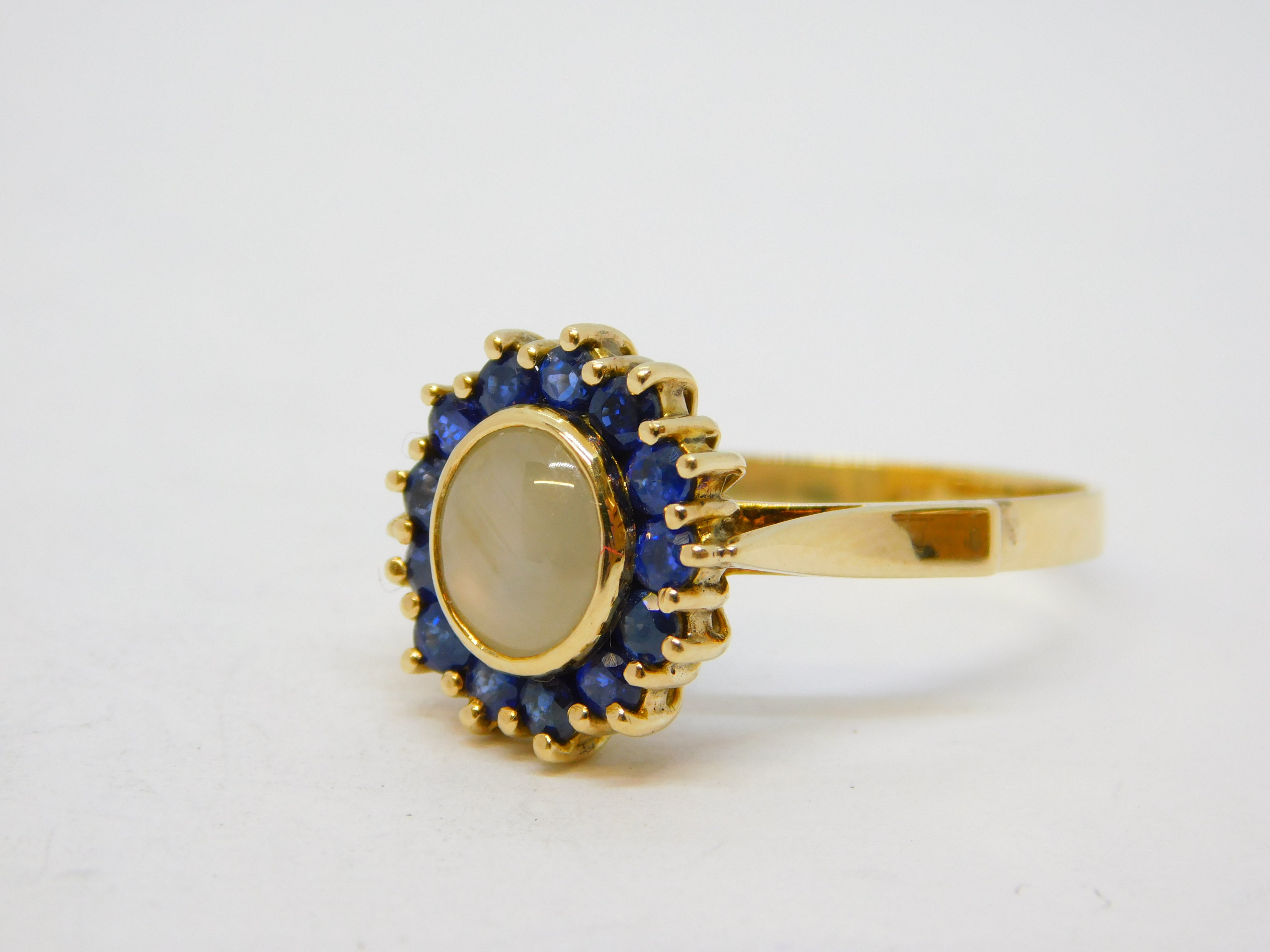 14ct Gold, White Star Sapphire & Blue Sapphire Cluster Ring Vintage c1960