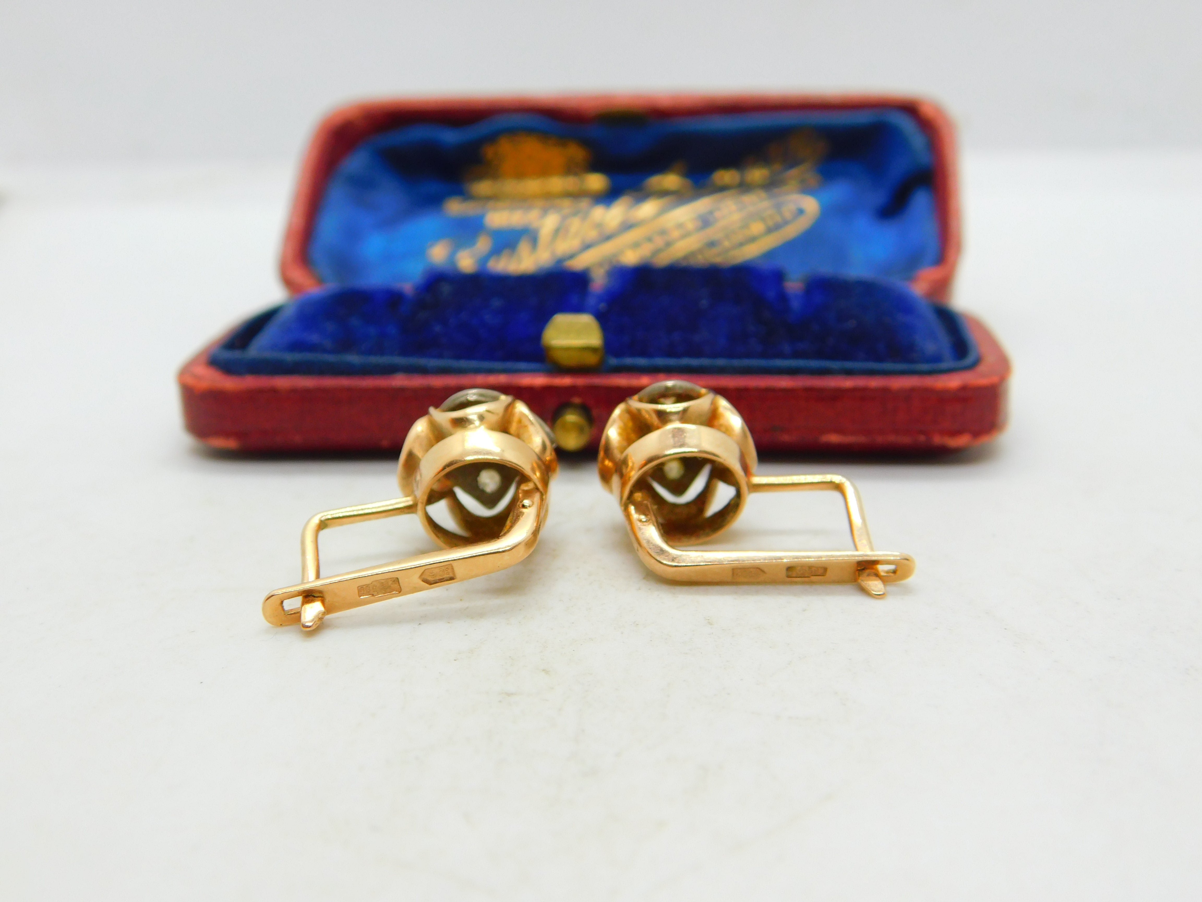 14ct Rose Gold Diamond Paste Drop Pendant Earrings Vintage Art Deco c1920