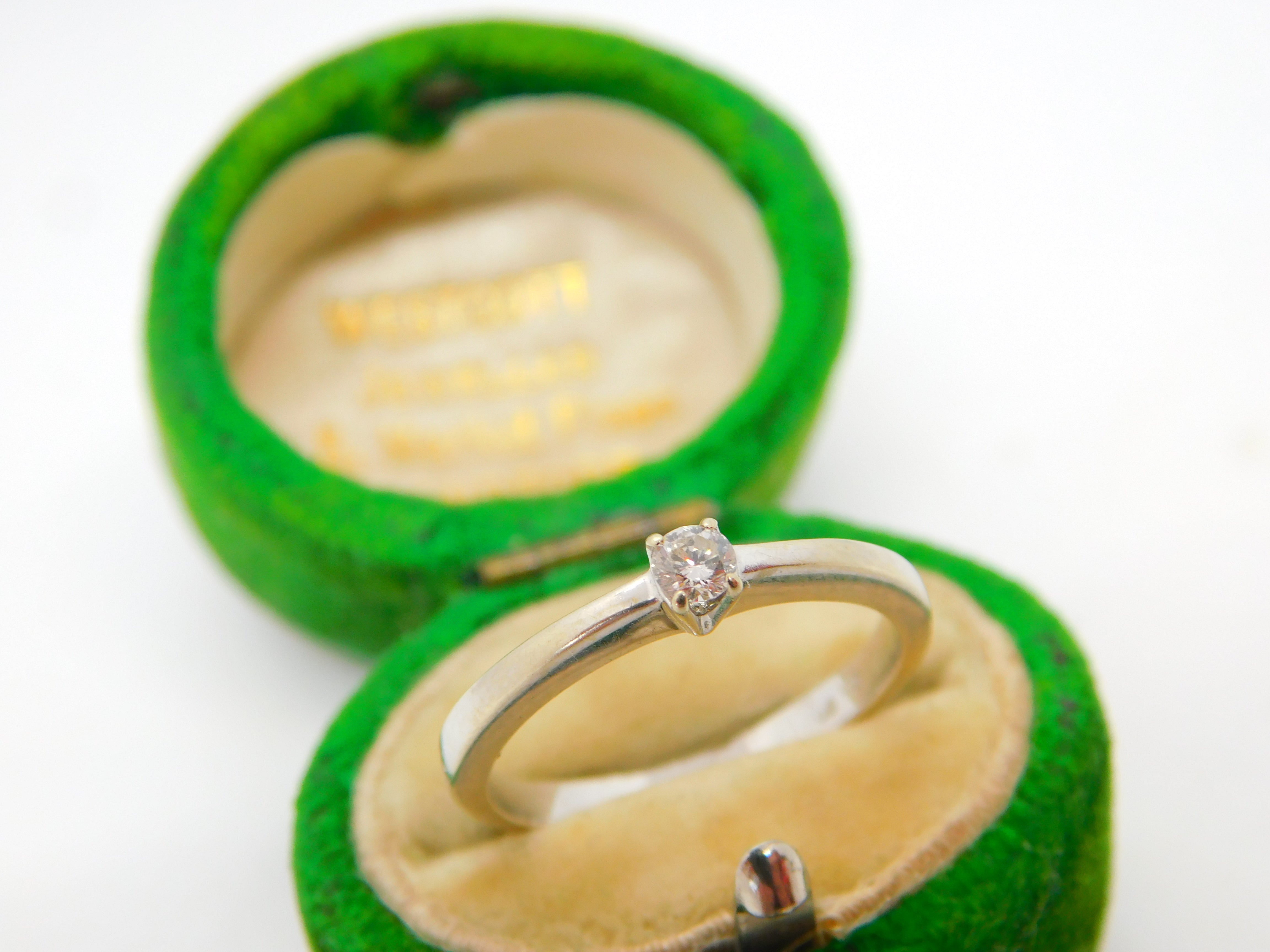 14ct White Gold Cushion Cut 0.1ct Diamond Solitaire Ring Vintage c1970