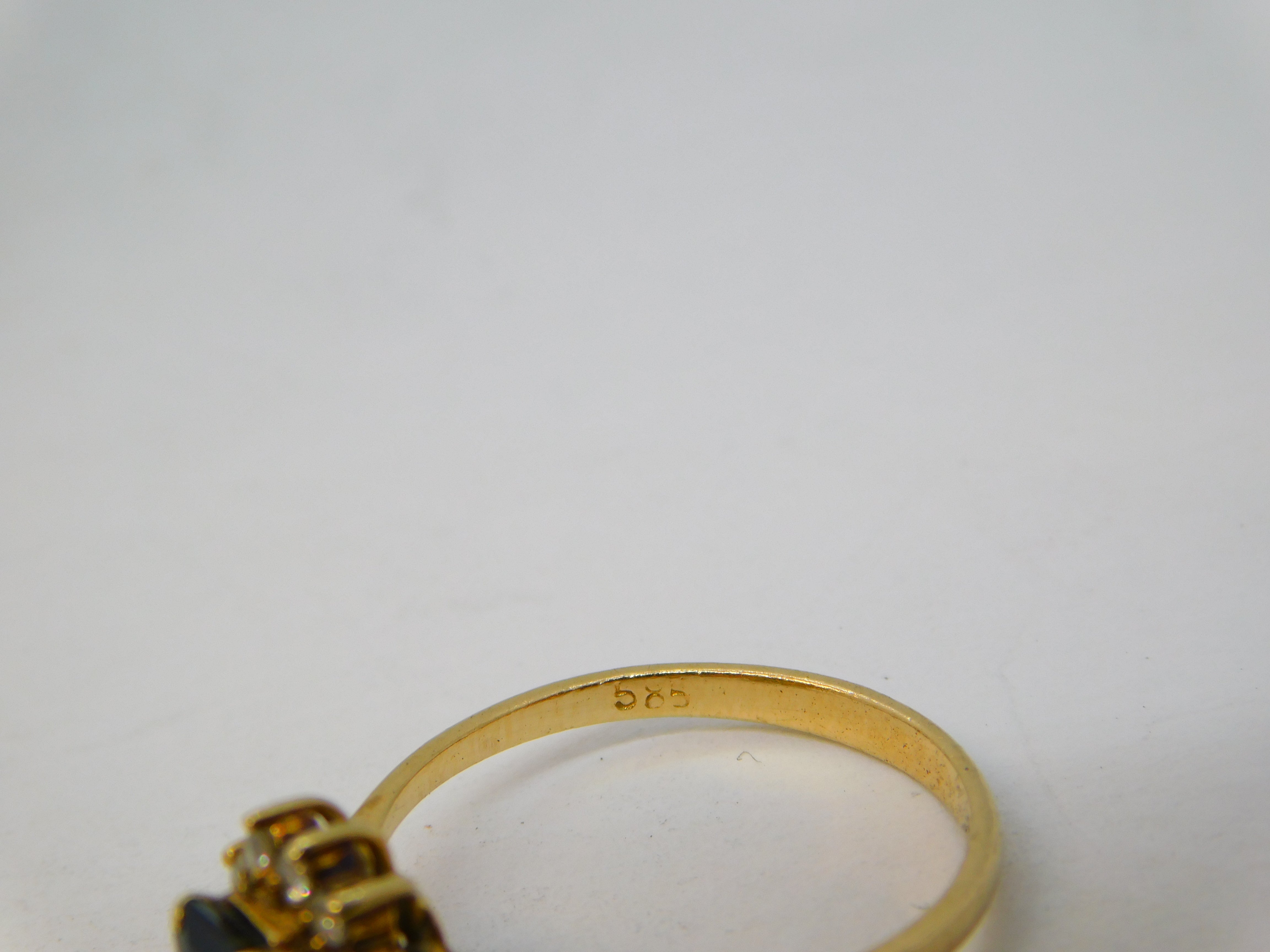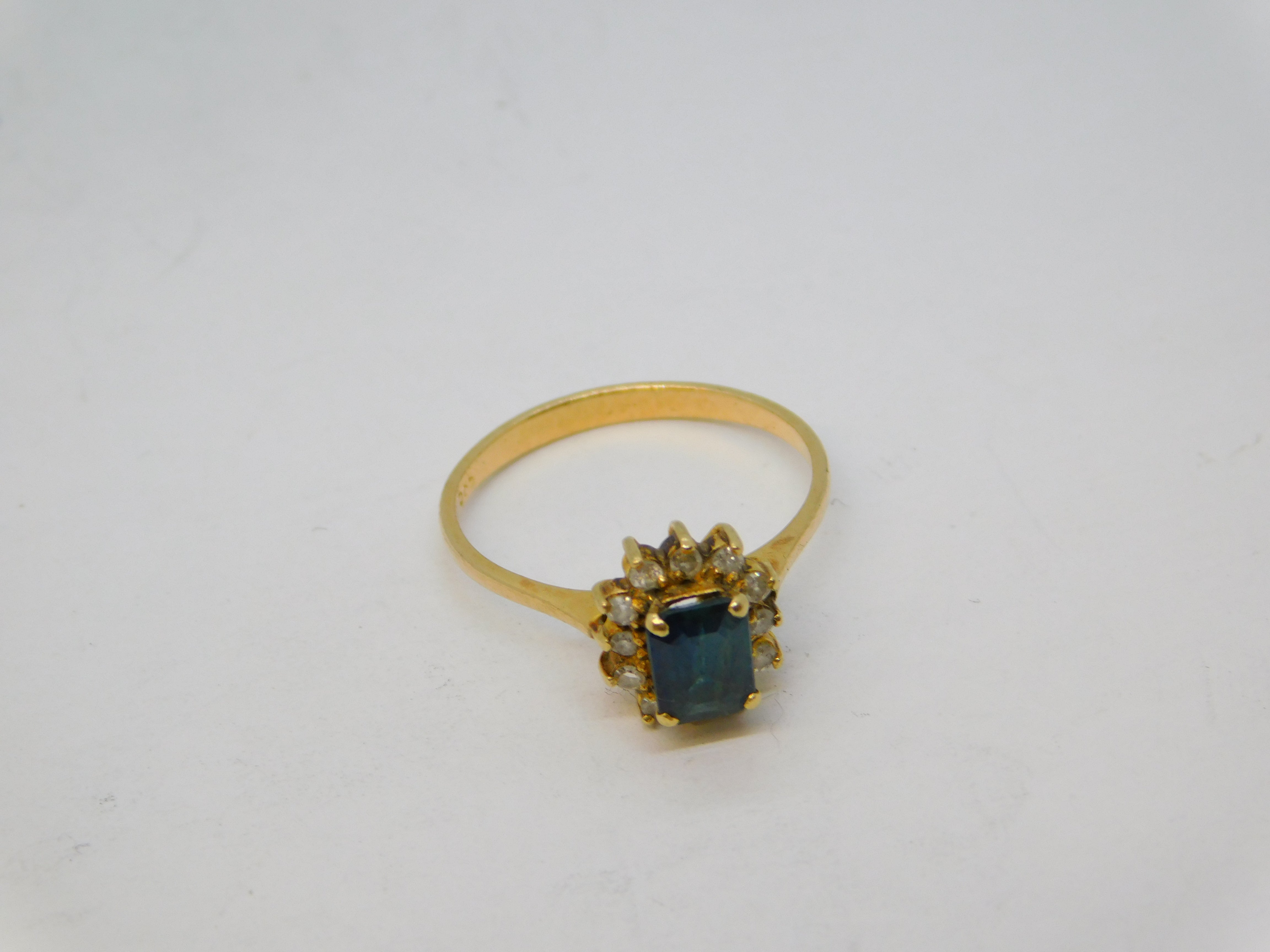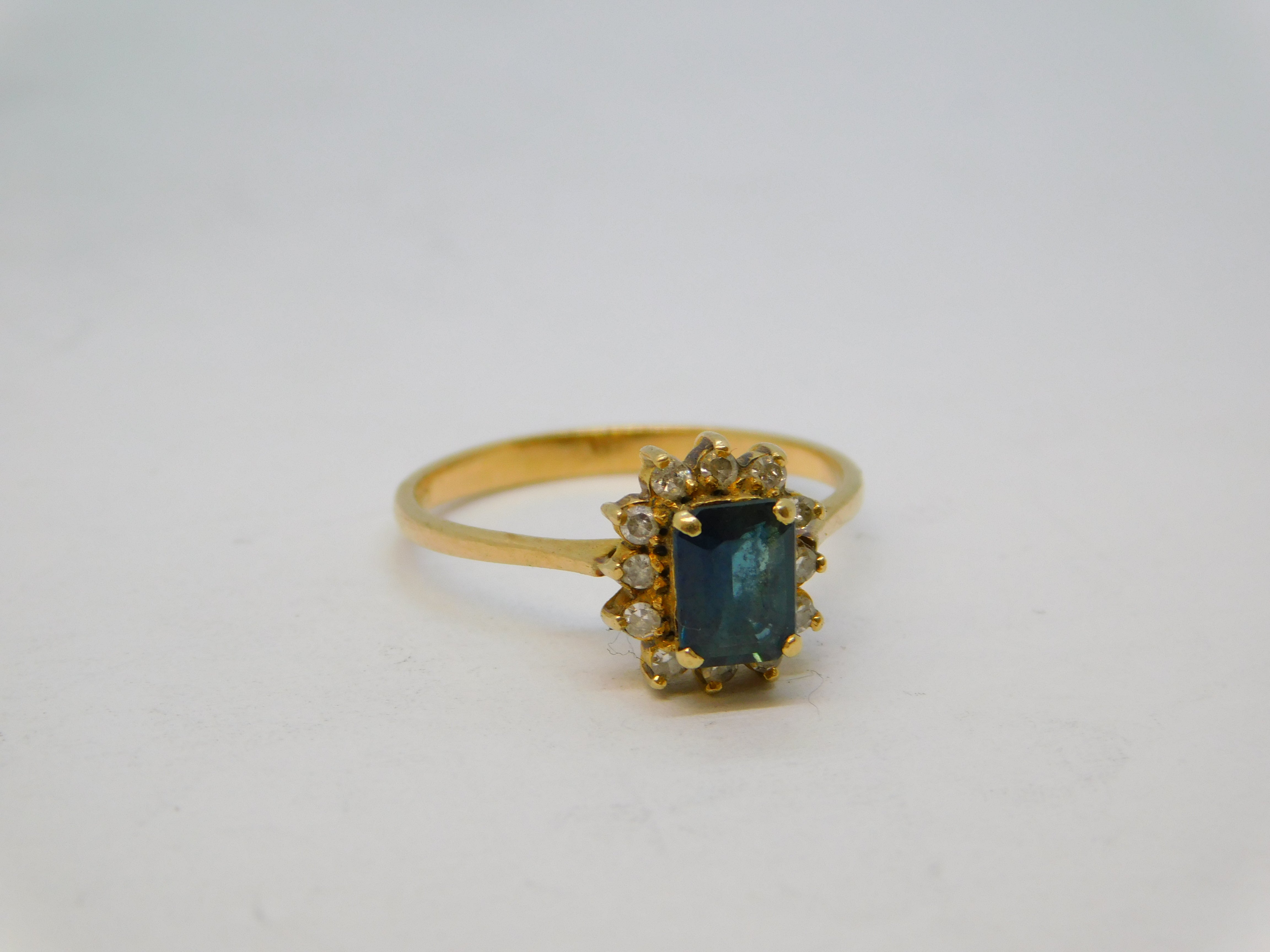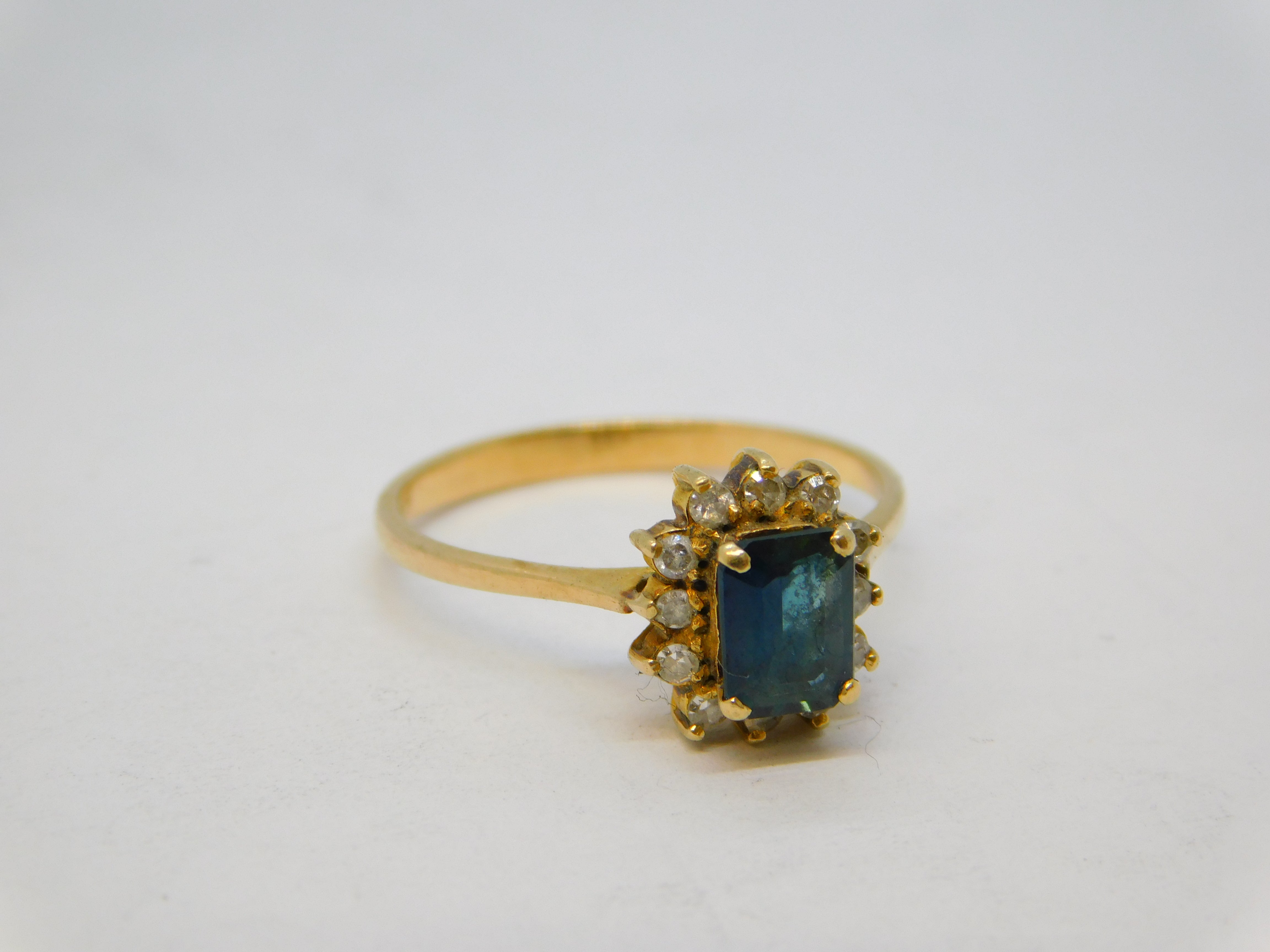 14ct Yellow Gold, 0.5ct Emerald Cut Sapphire & Diamond Engagement Ring Vintage c1970