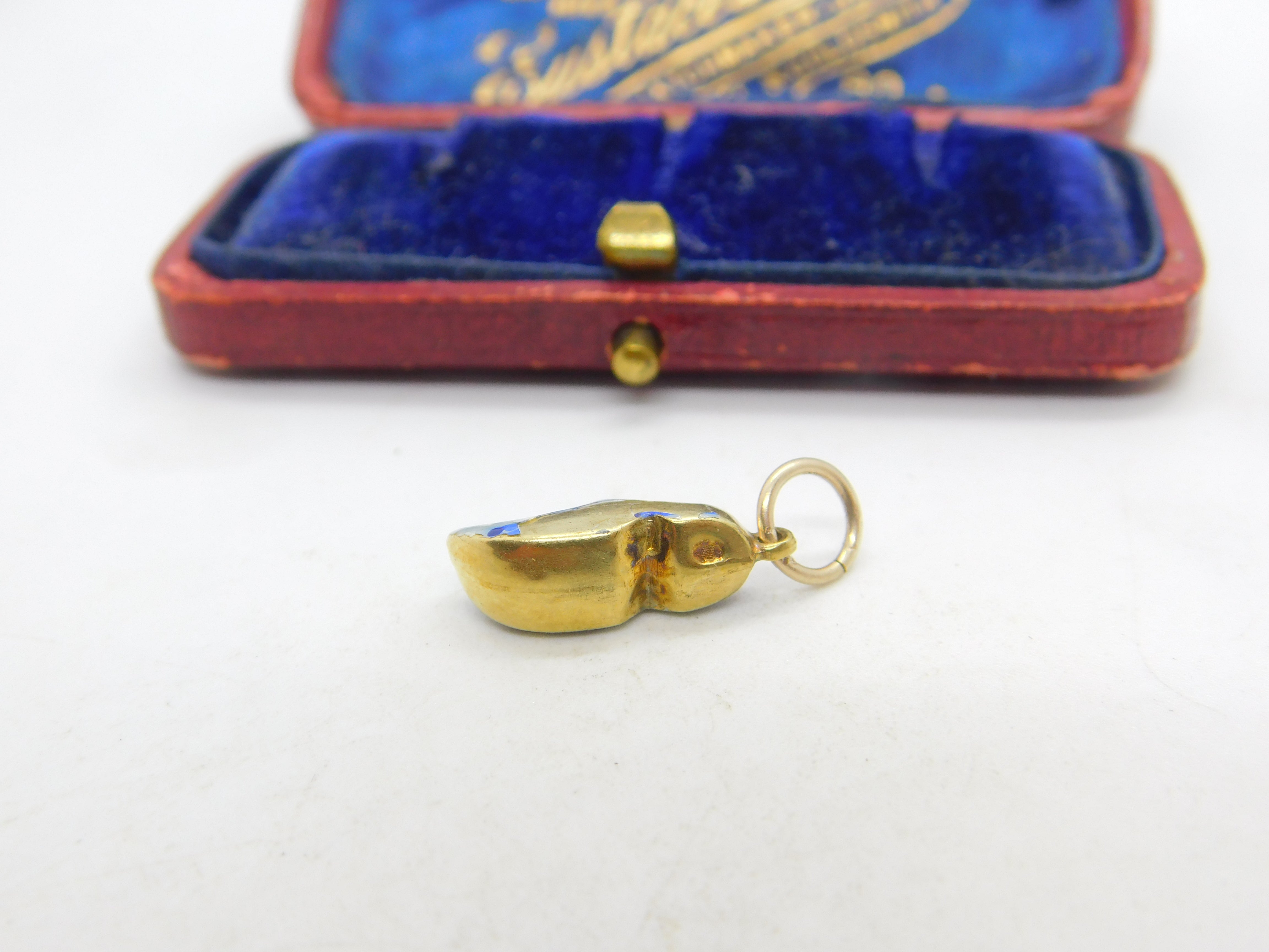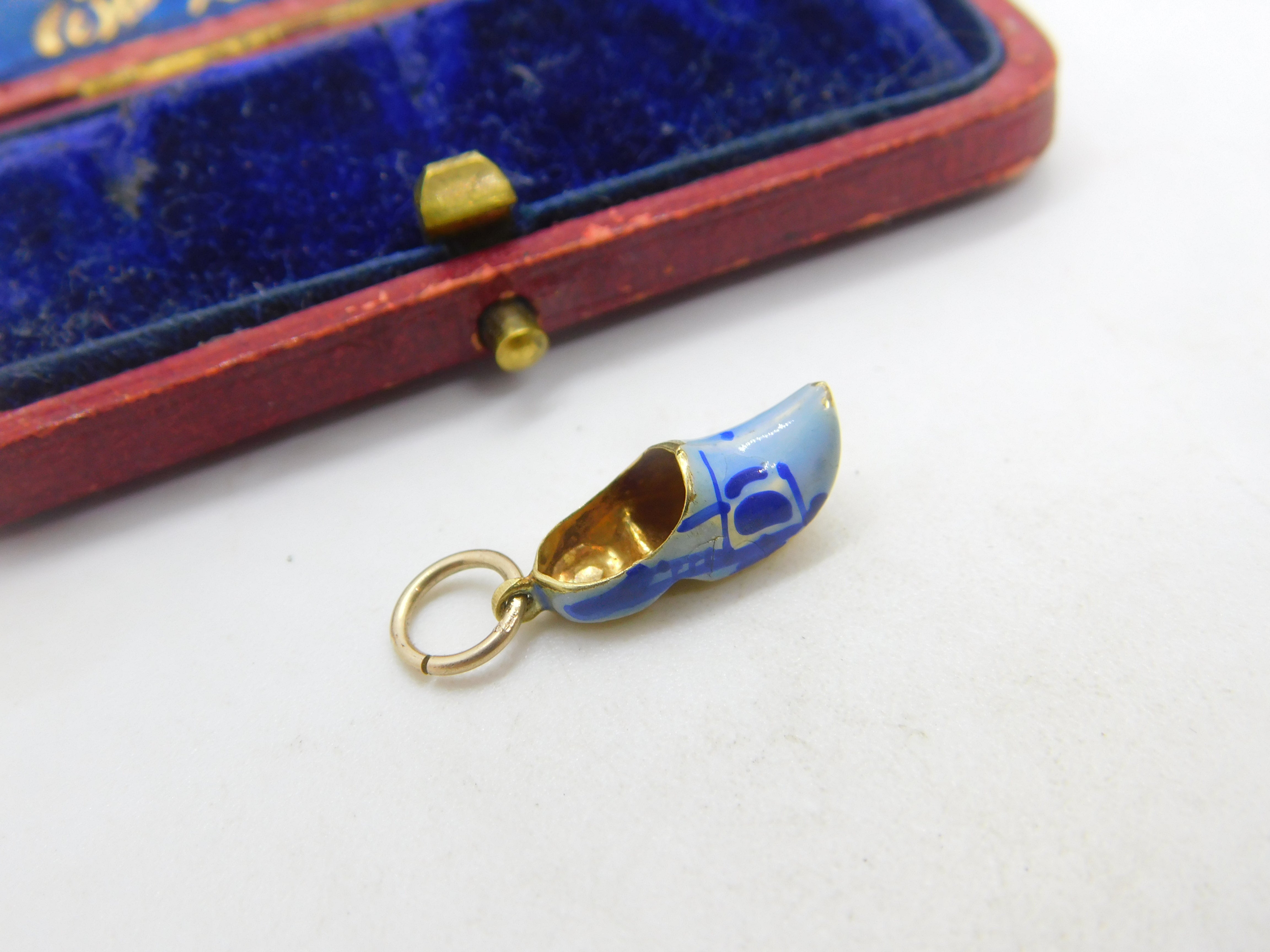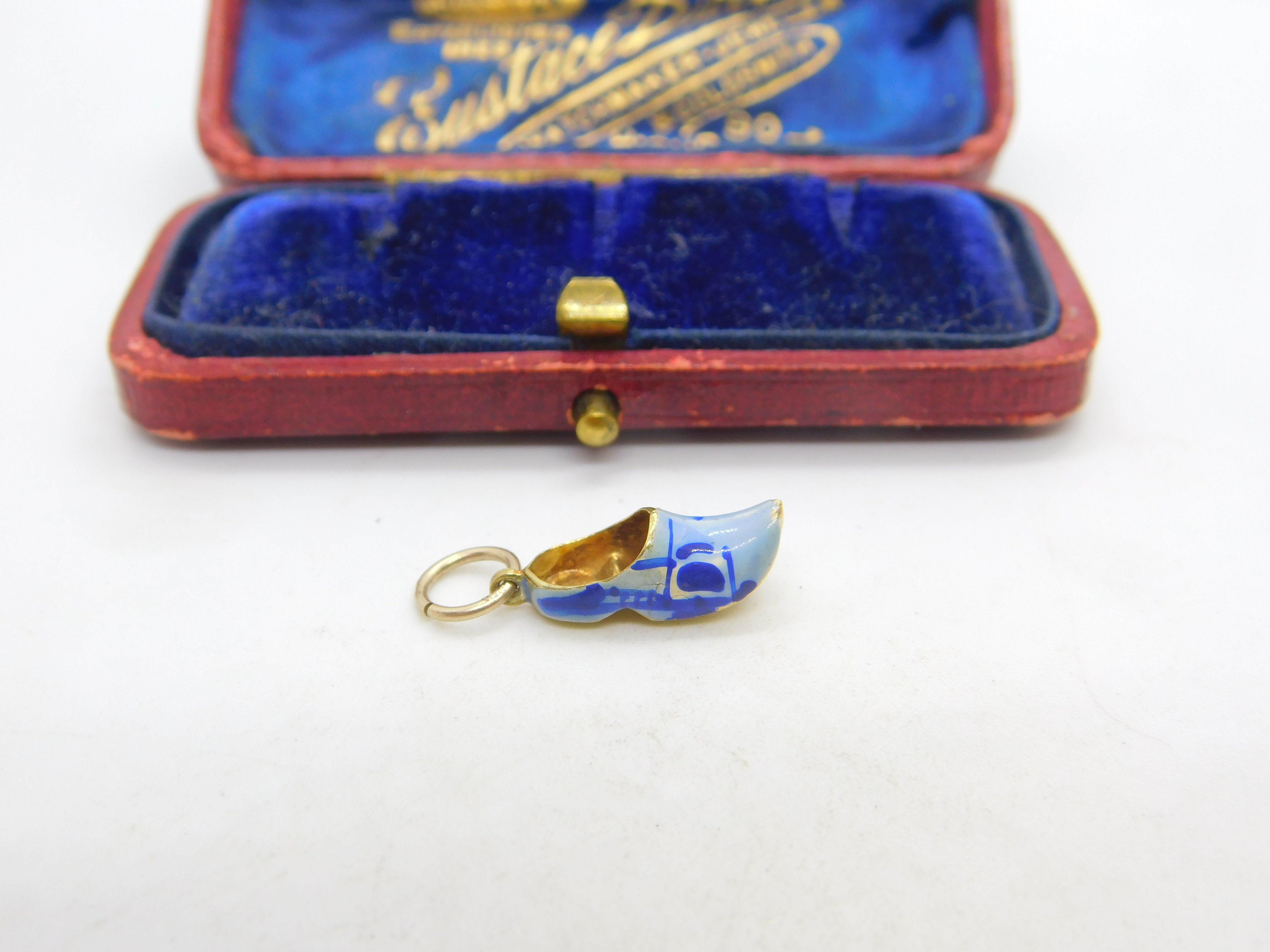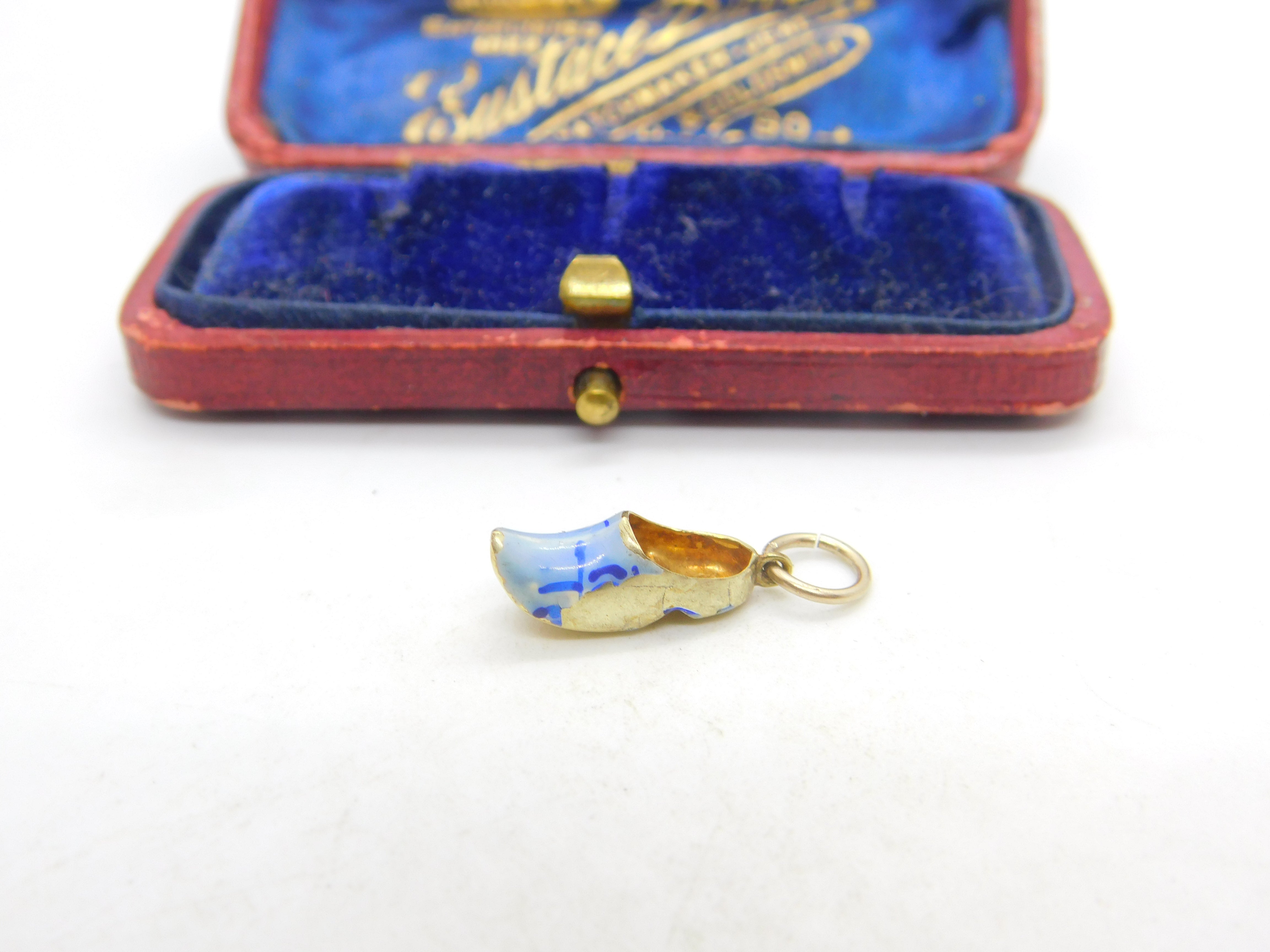 14ct Yellow Gold & Blue Enamel Dutch Clog Charm Antique c1940 Art Deco AF