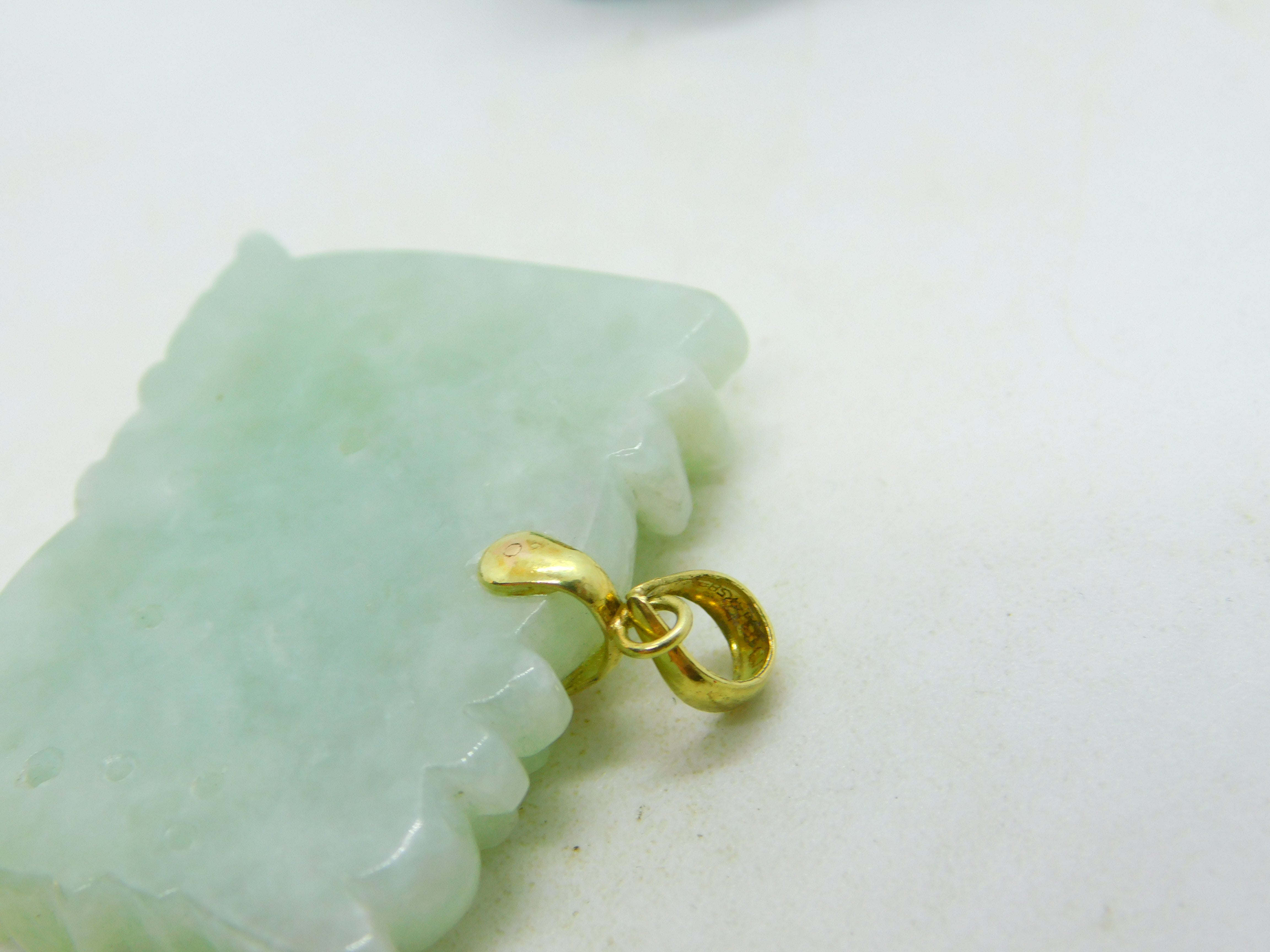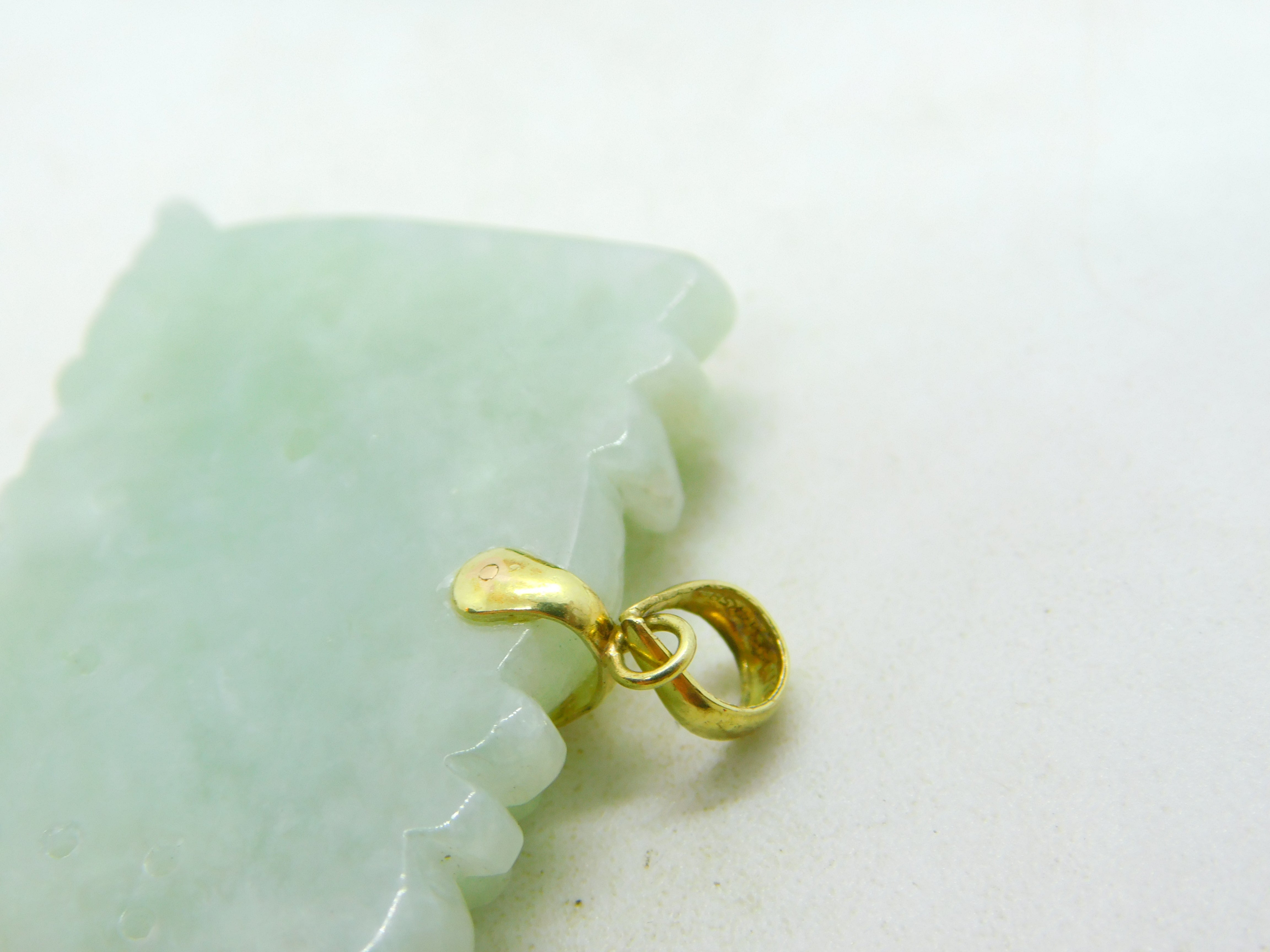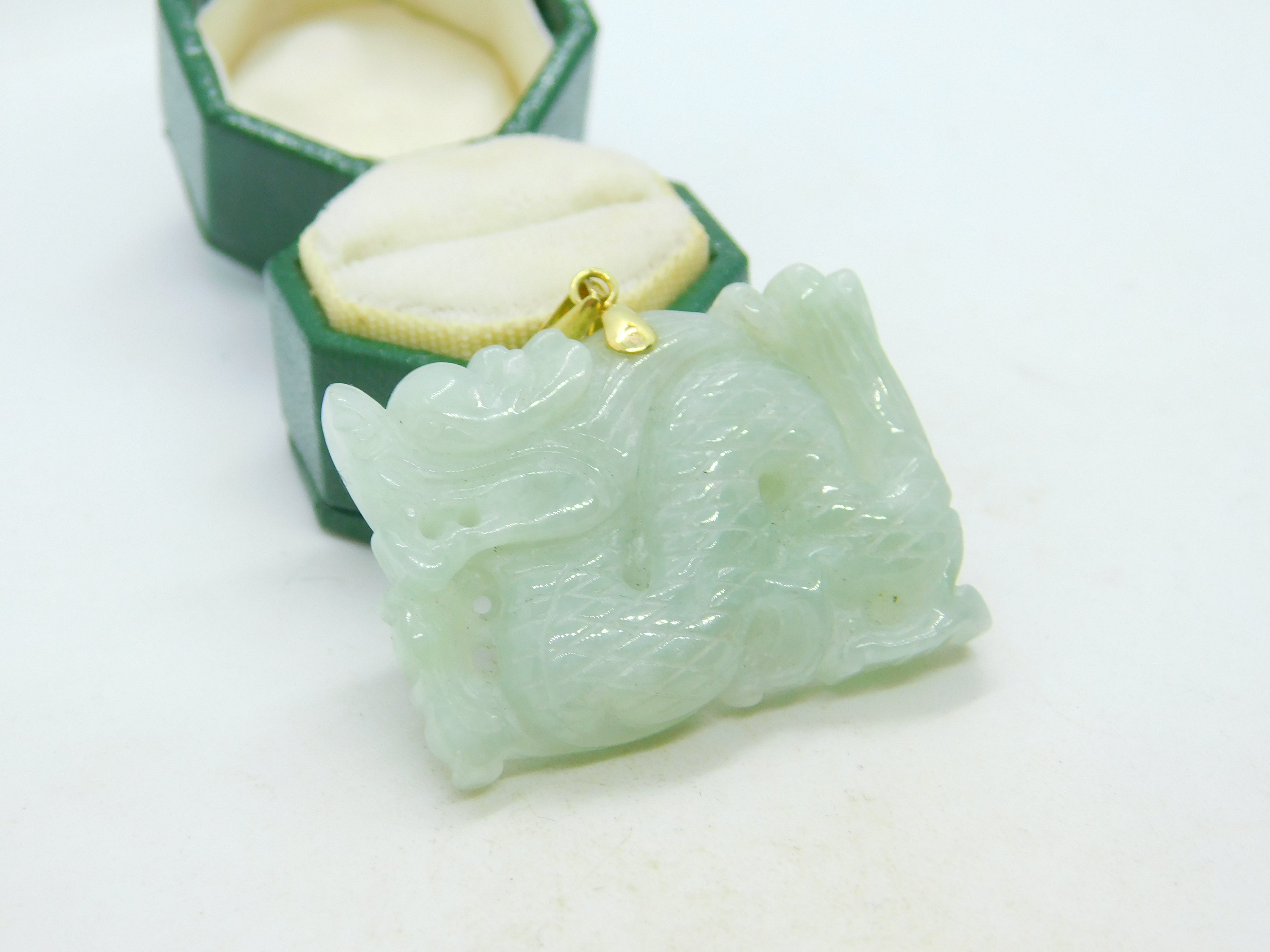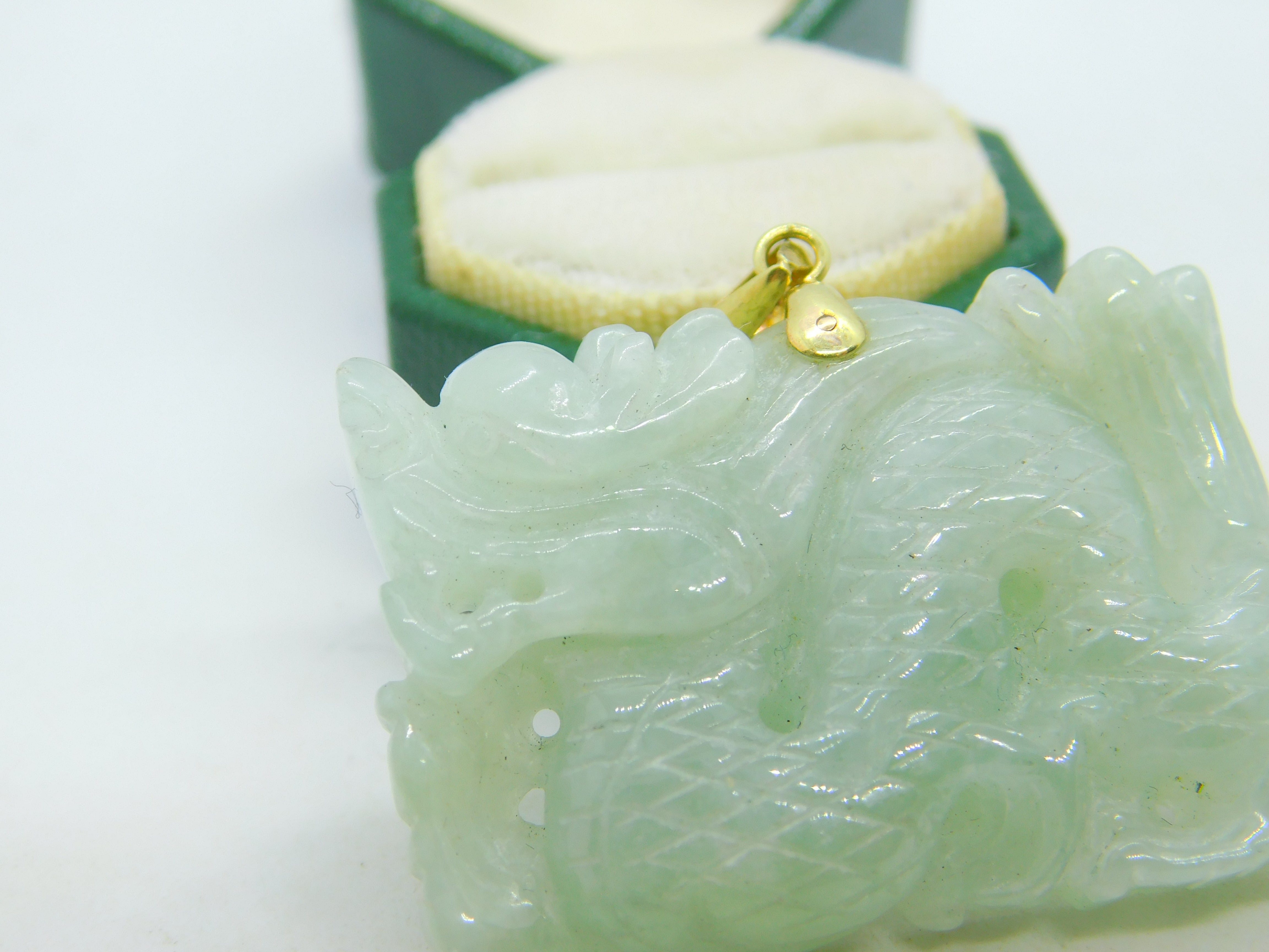 14ct Yellow Gold & Carved Apple-Green Jade Dragon Pendant Vintage c1970