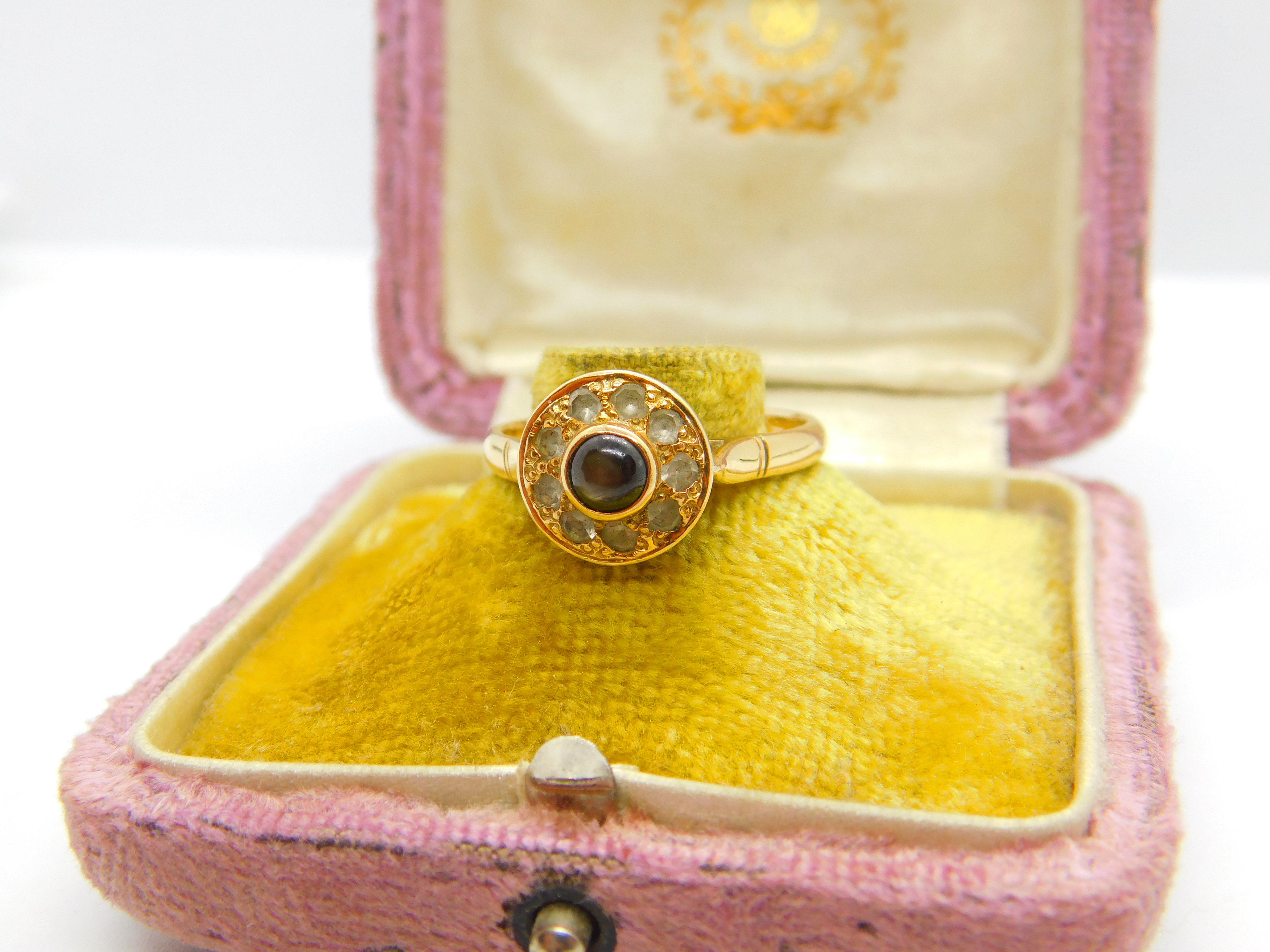 14ct Yellow Gold, Diamond Paste & Cat's Eye Band Ring Vintage c1960