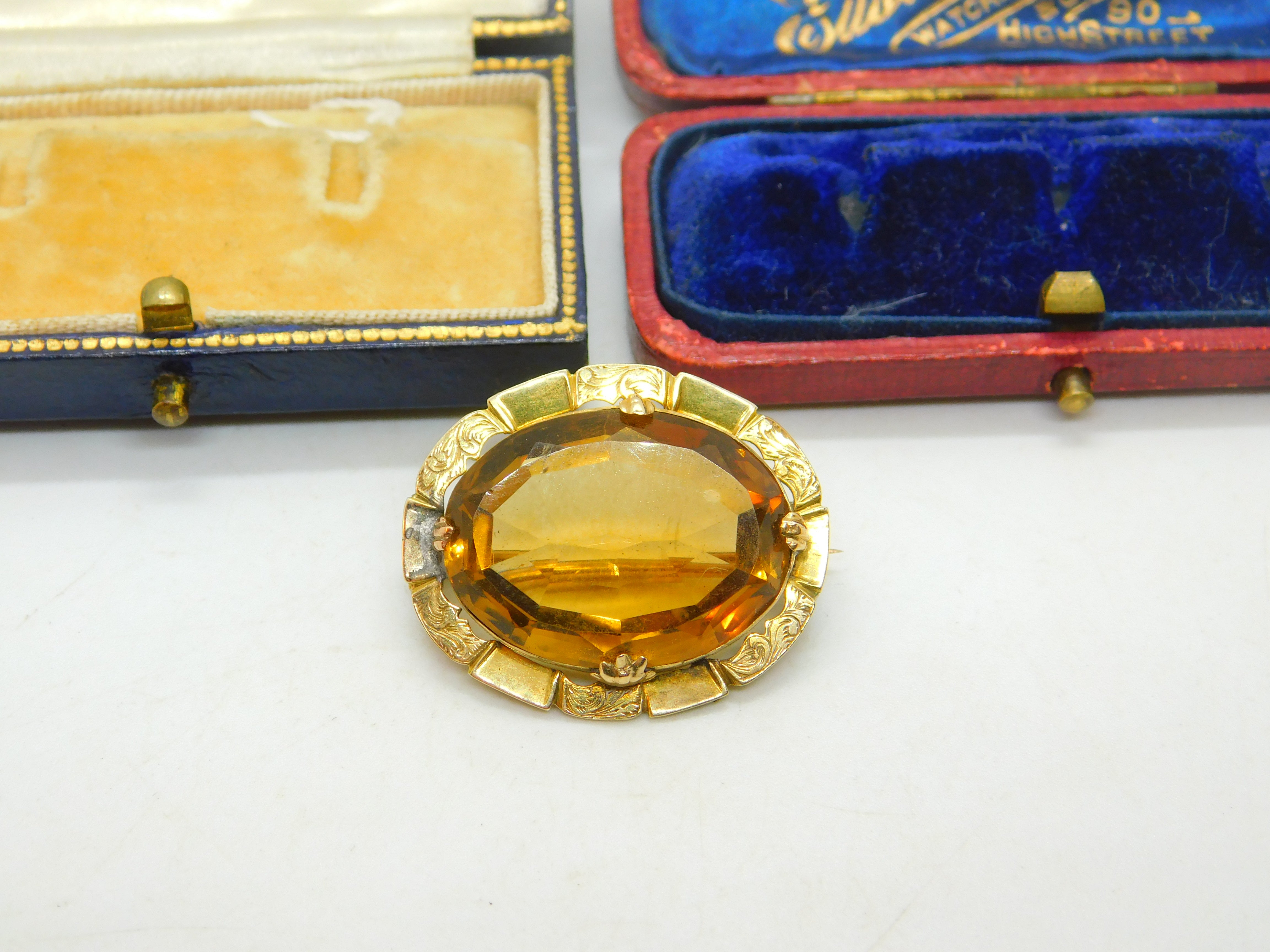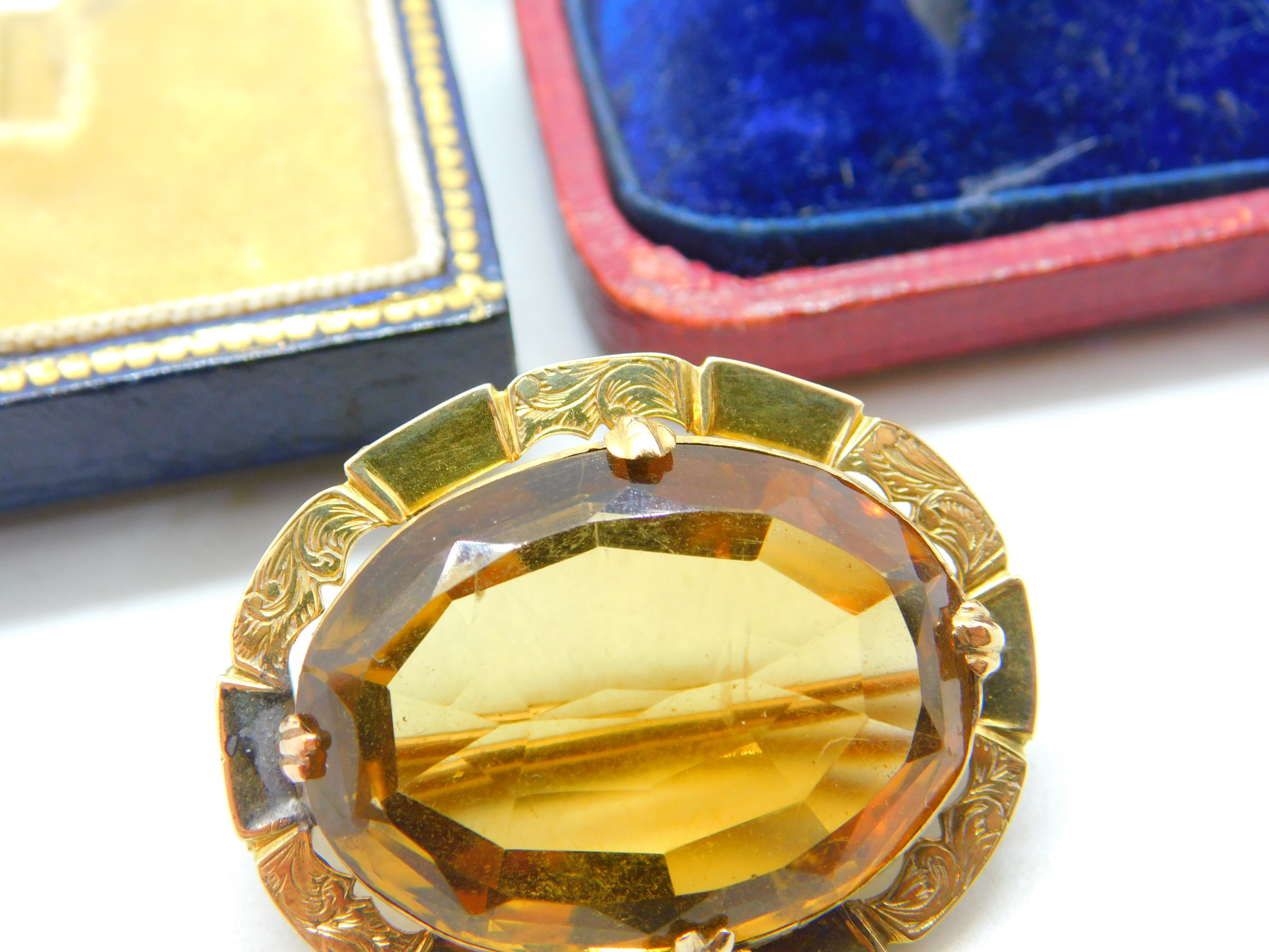 14ct Yellow Gold & Faceted Citrine Brooch Antique c1880 Victorian